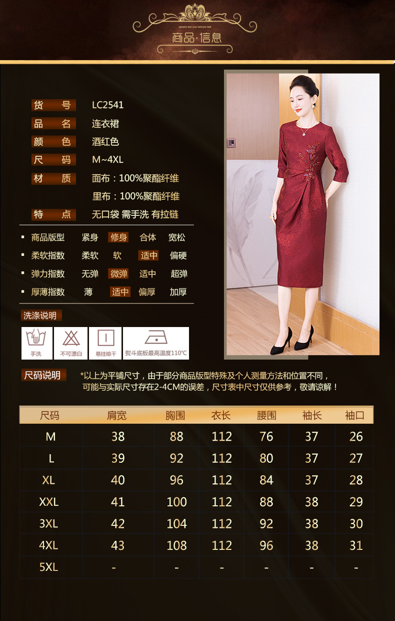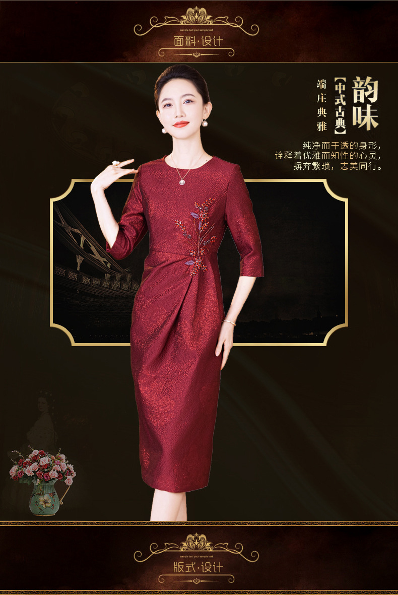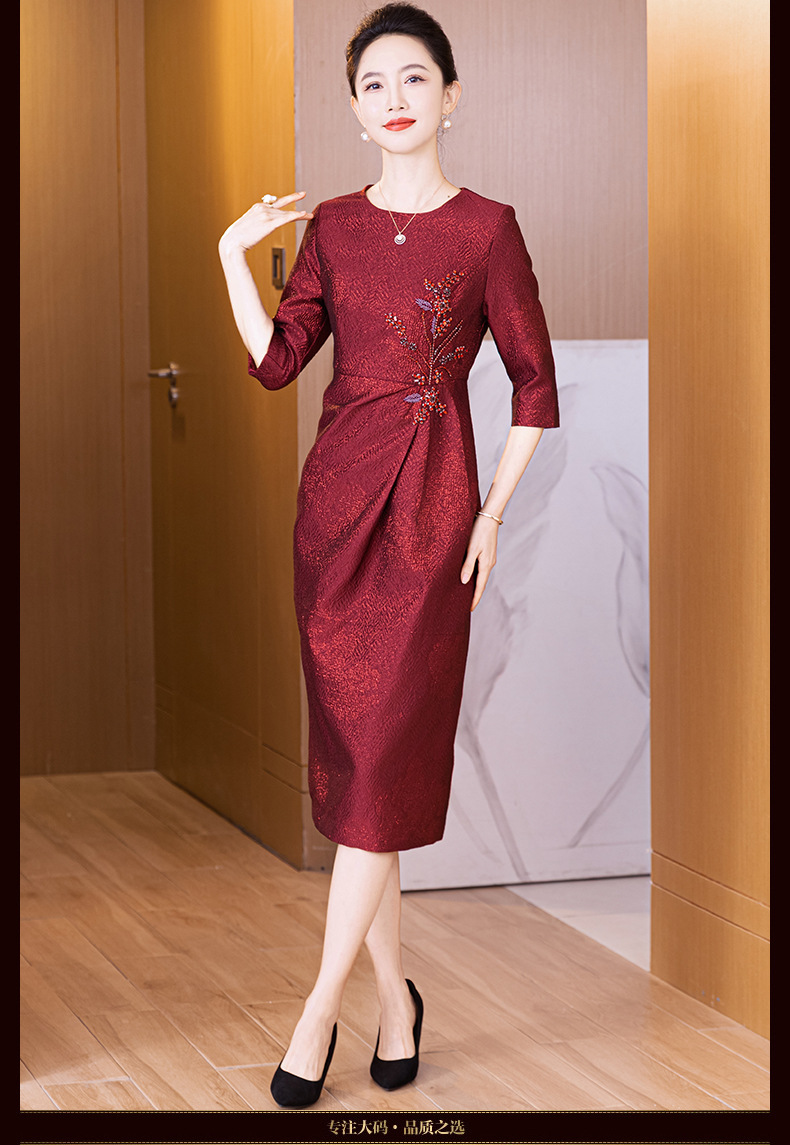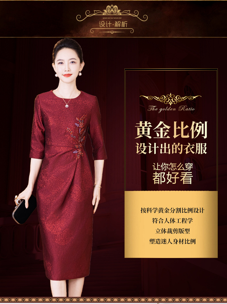 LC 2541妈妈礼服轻奢提花料包臀裙优雅气质轻奢风