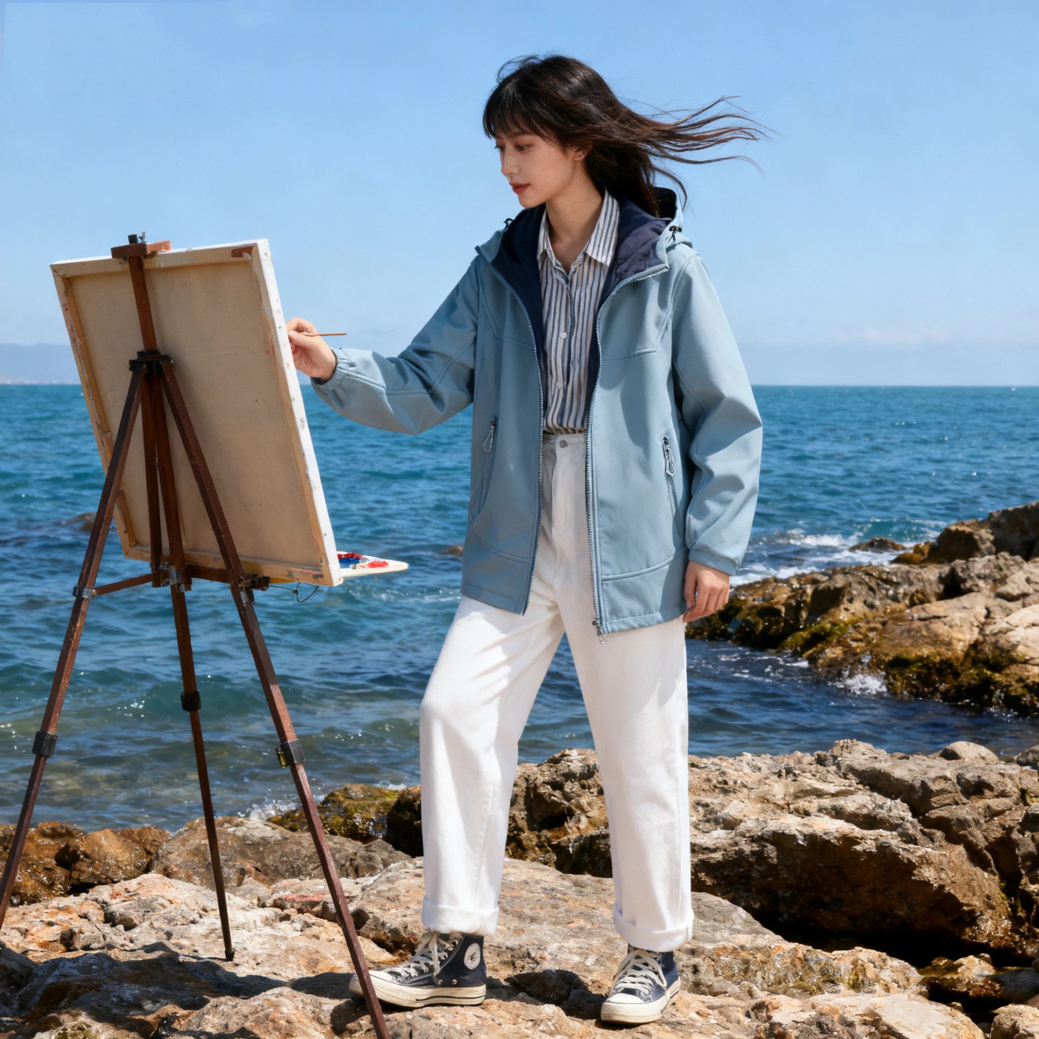 不是普通的蓝!带灰调的以太蓝像被晨雾笼罩的海面,光线越暗越显质感,阴天穿反而更有故事感