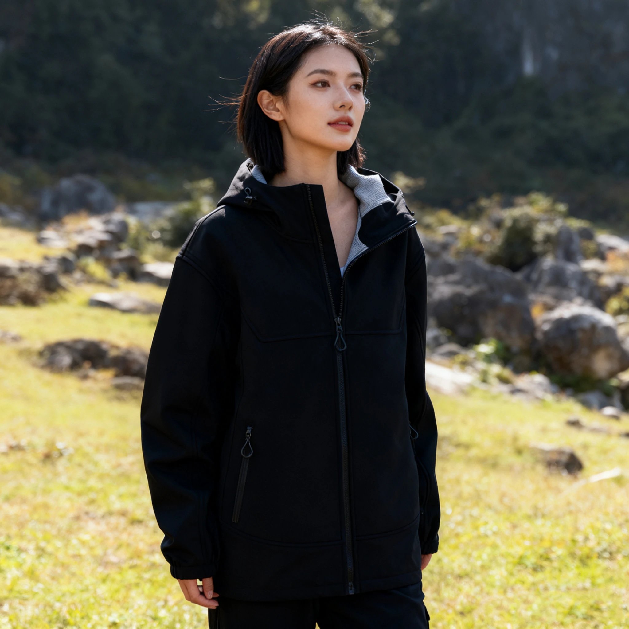 无论是日常通勤还是户外冒险,基础黑软壳防寒外套都能展现你的帅气与洒脱