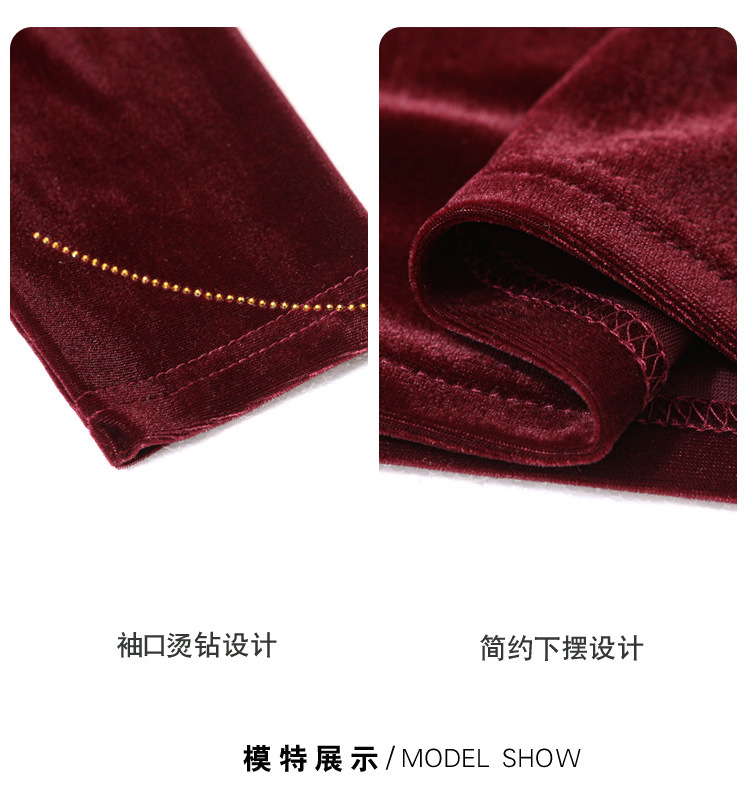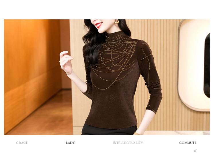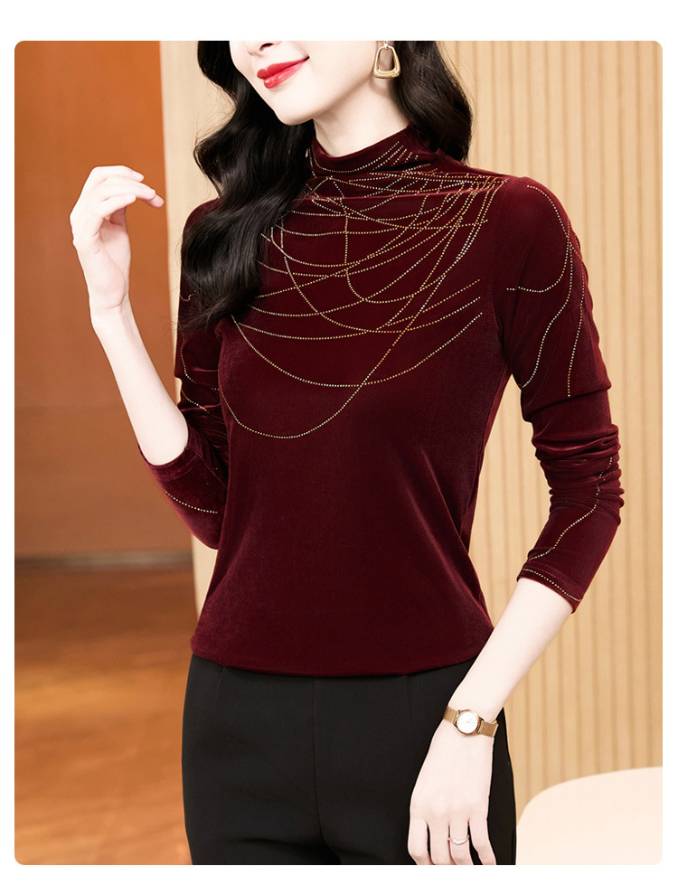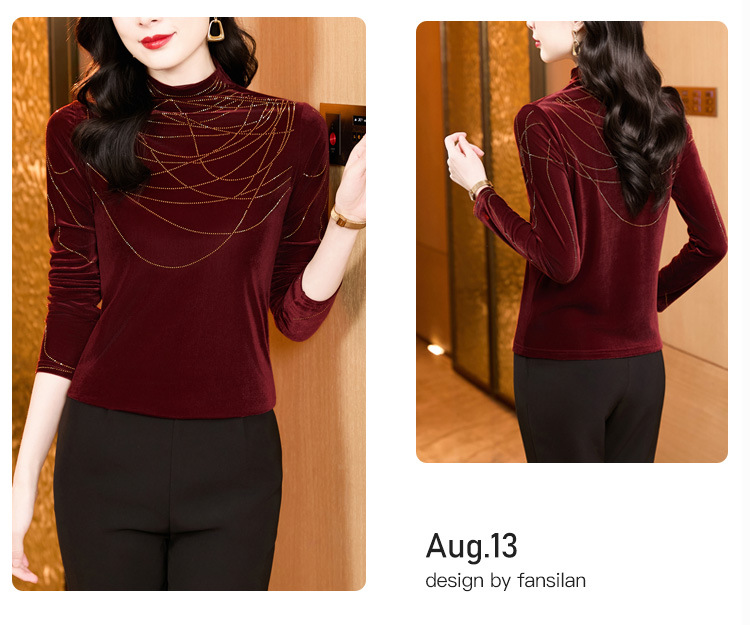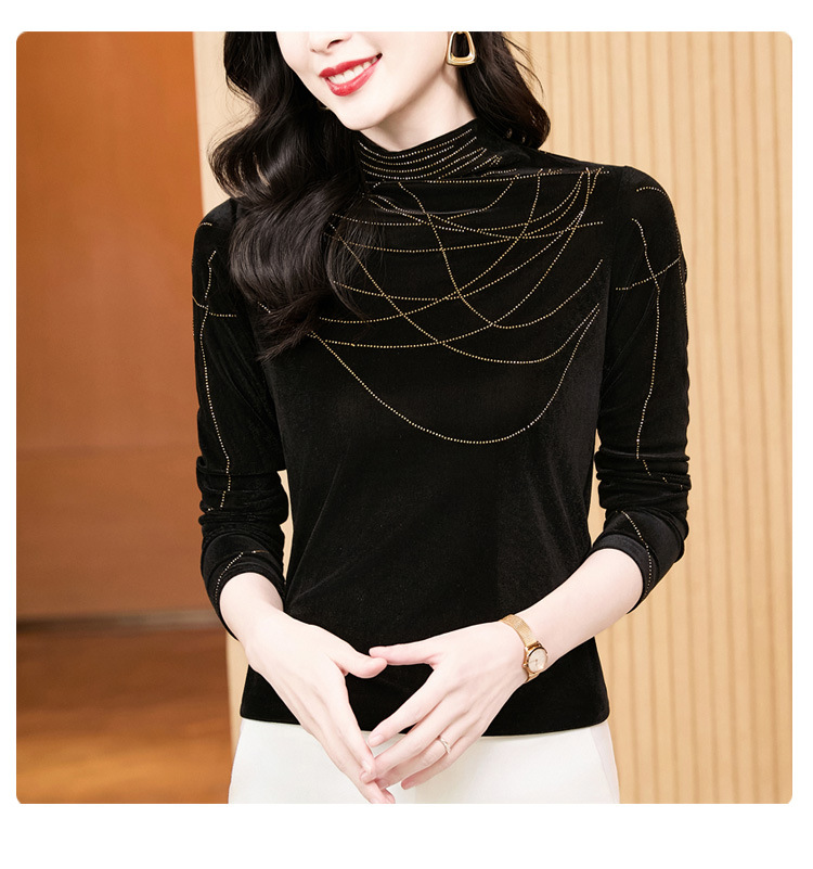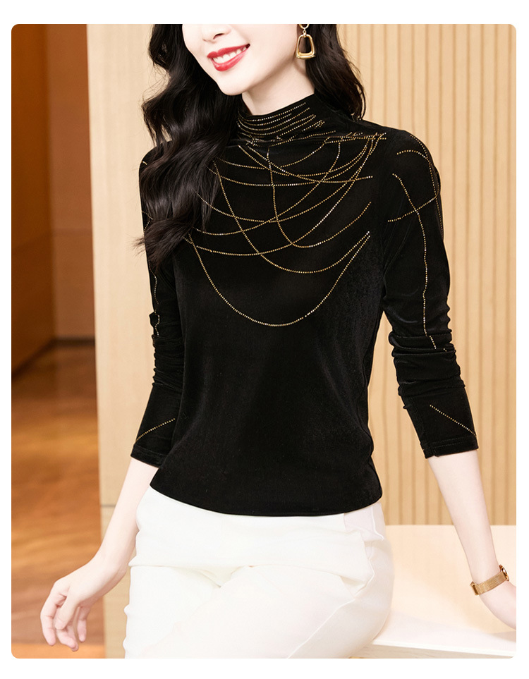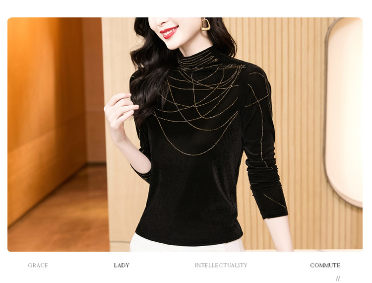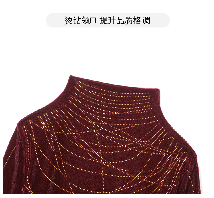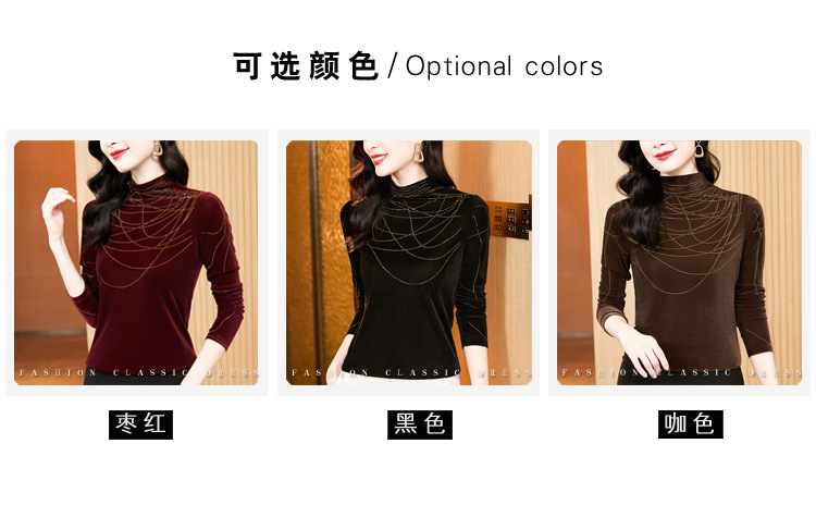 KQLE37M2971 2026春季新款洋气百搭高领纯色烫钻丝绒长袖打底衫修身显瘦T恤女
