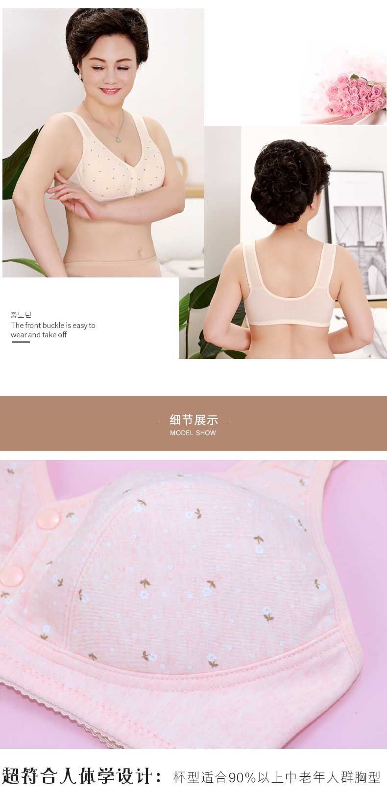 YY-170春季舒适简约软棉无钢圈前扣文胸印花无钢圈背心式前扣内衣