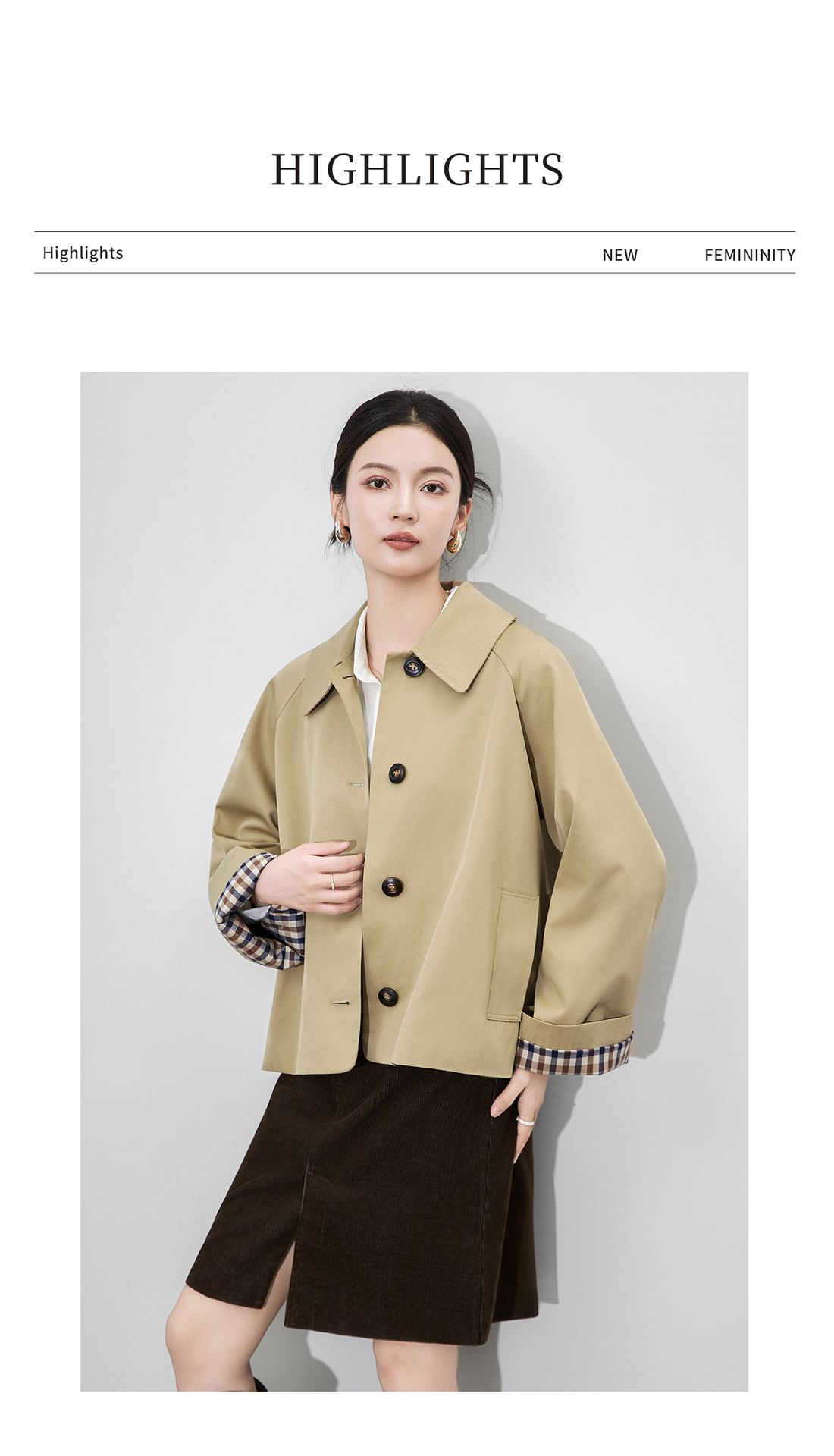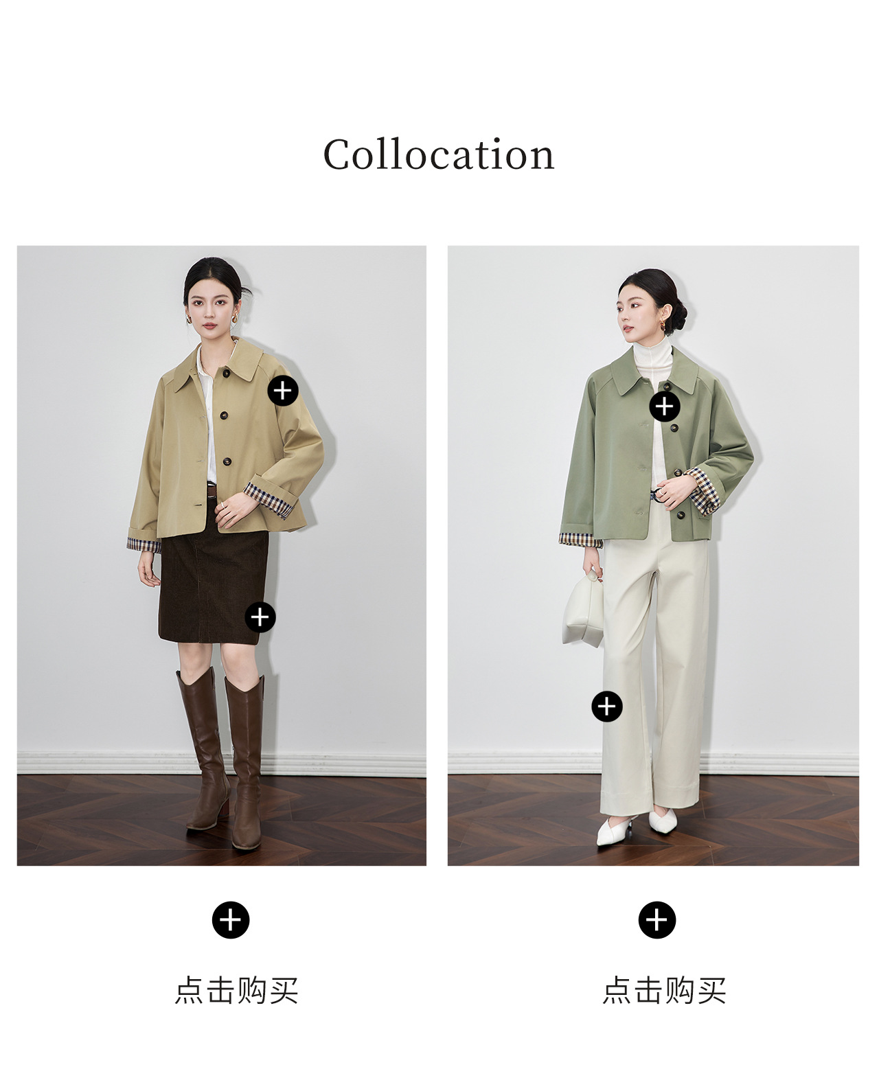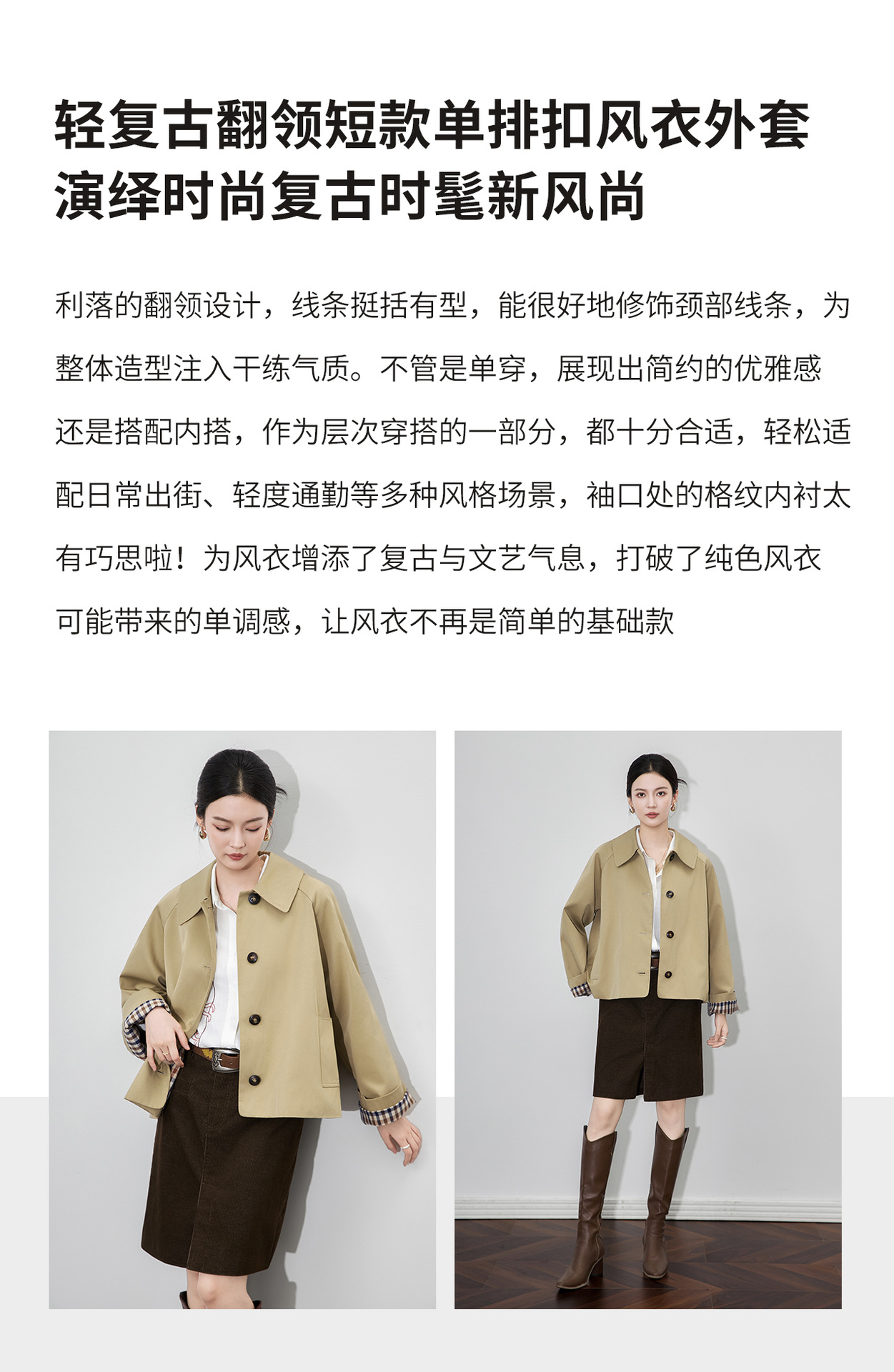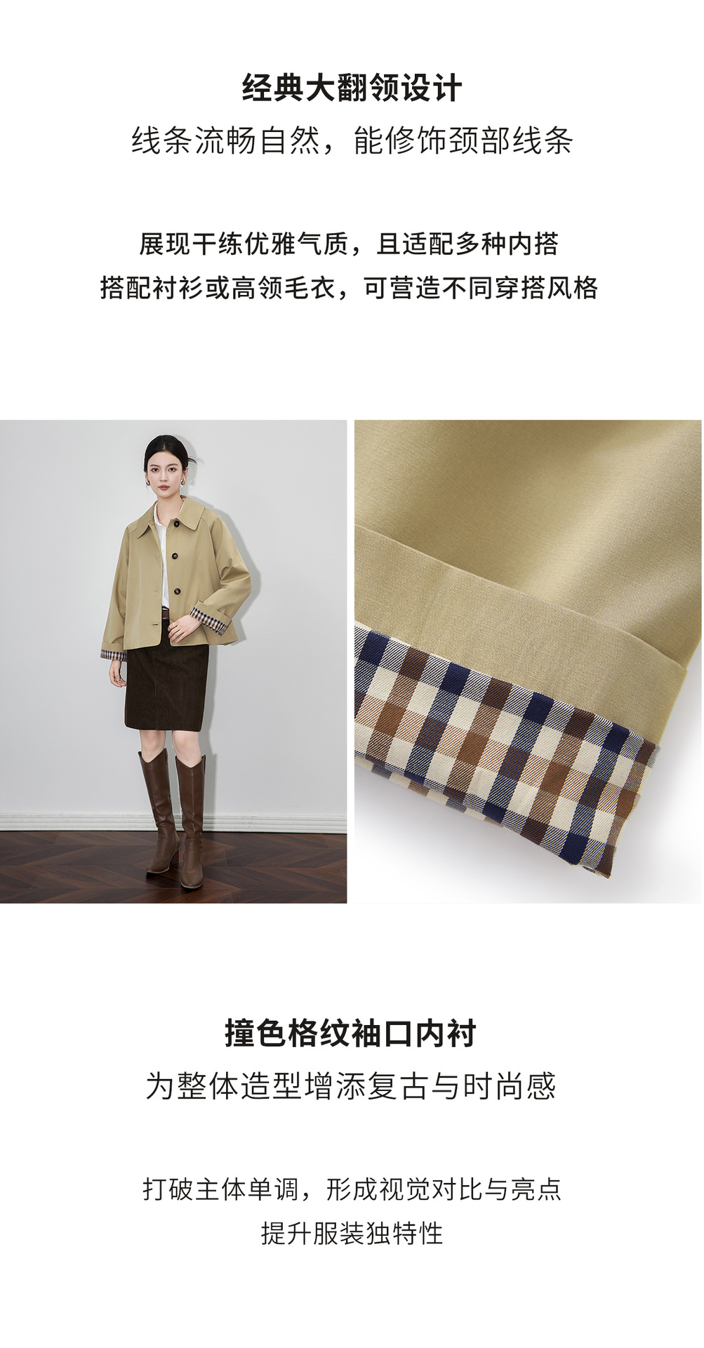 「高货wl」全新升级【铂金会员367/天猫499/差价132】(20527)洛诗琳法式复古格纹拼接外套2025秋季宽松短款风衣外套