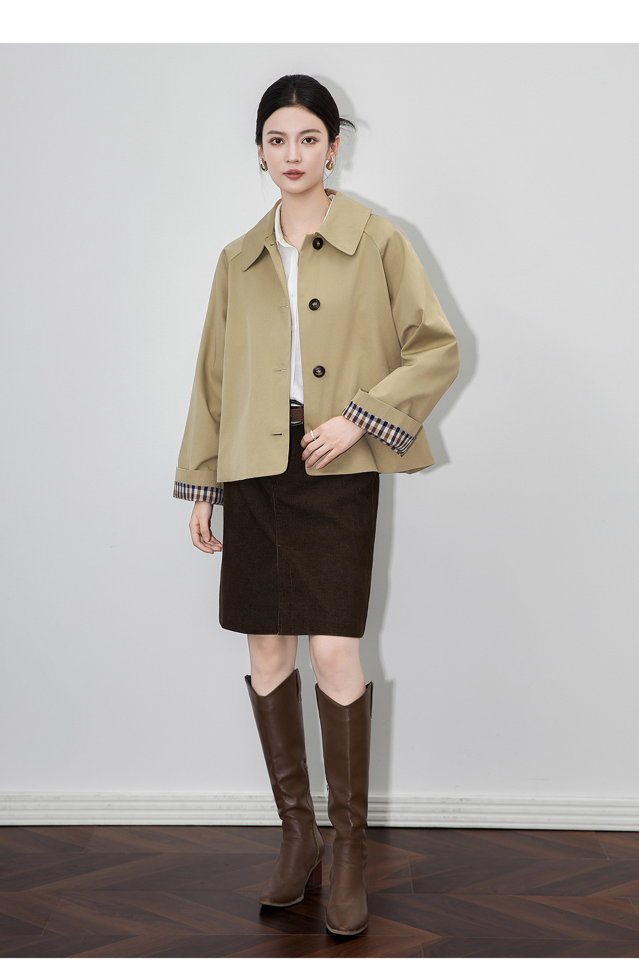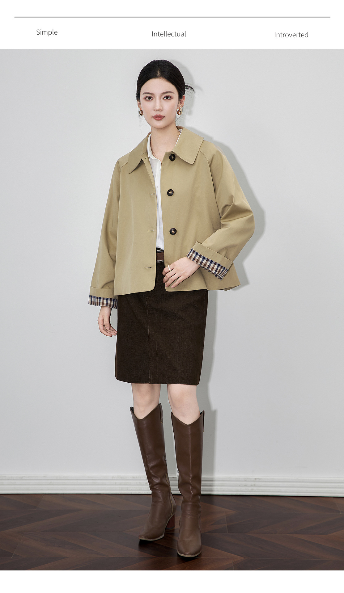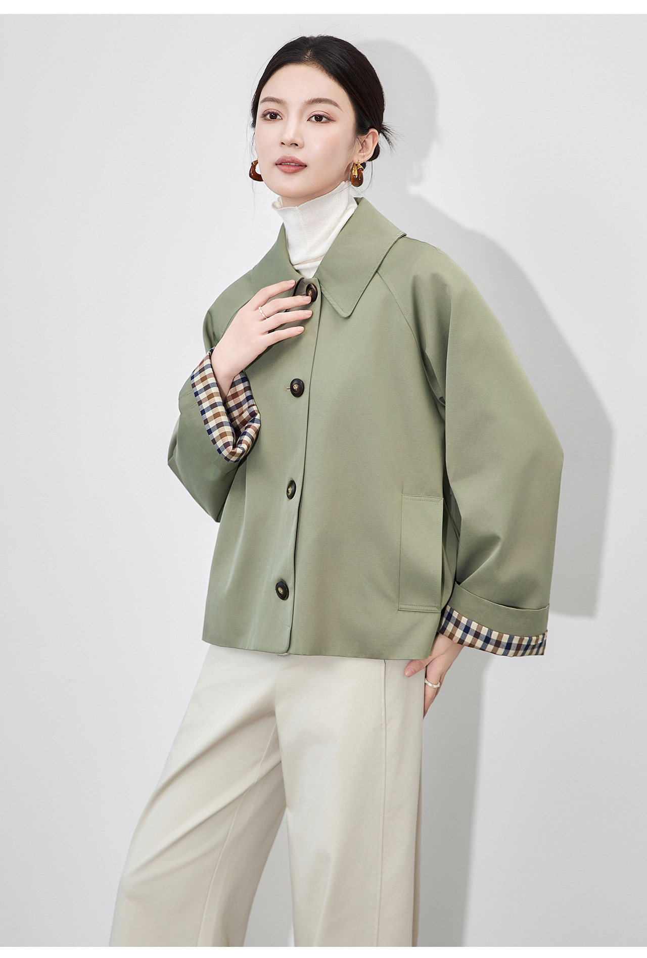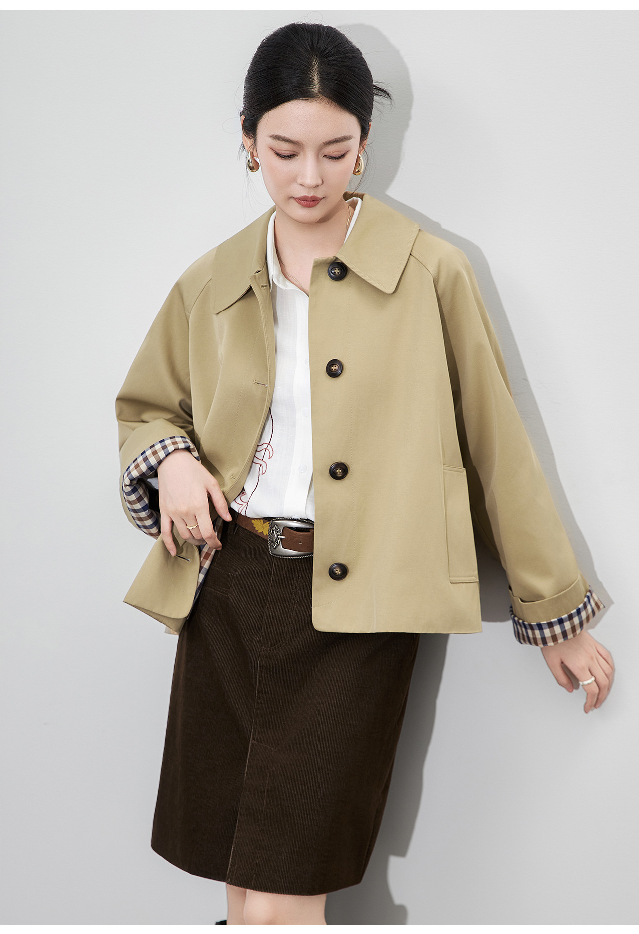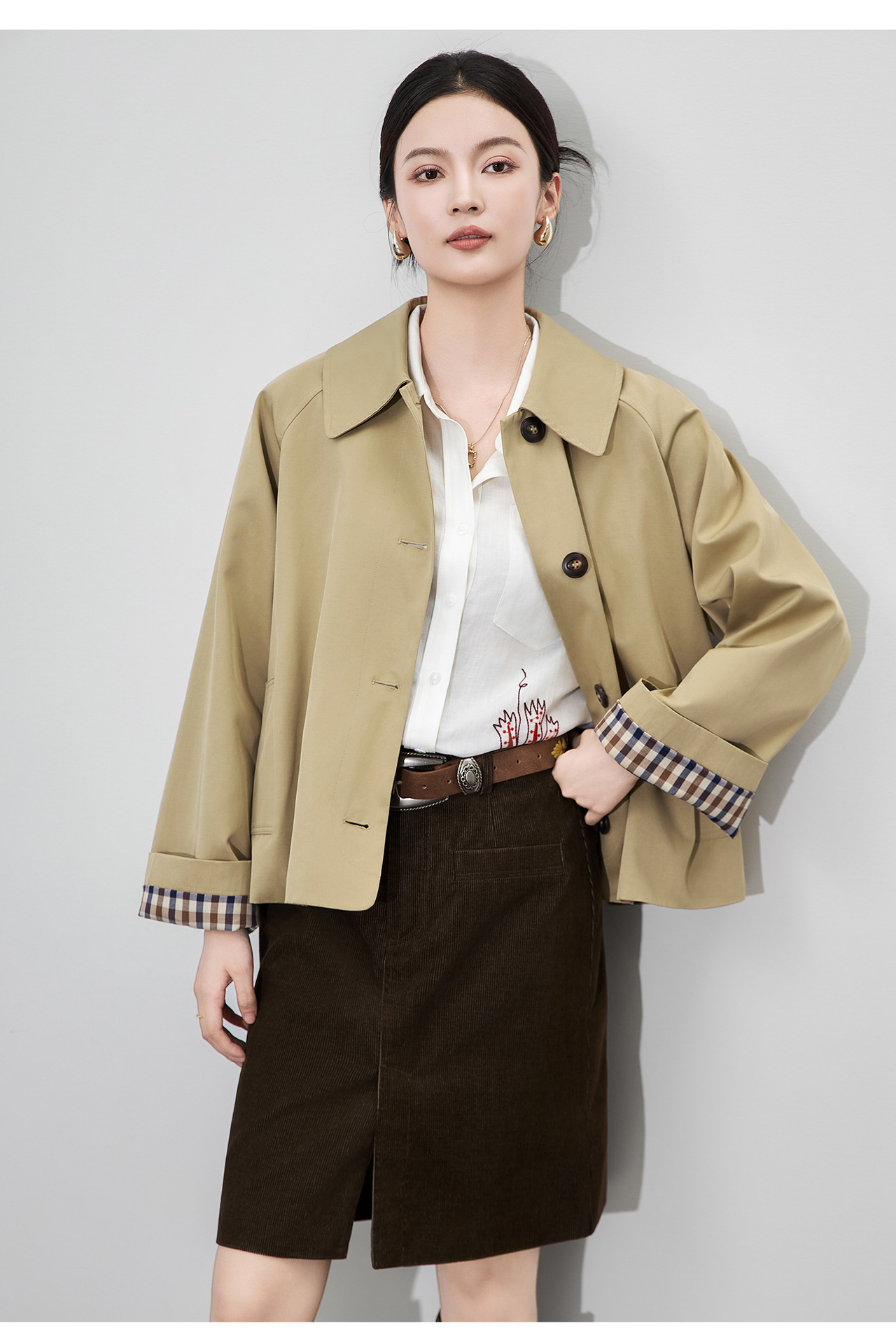 「高货wl」全新升级【铂金会员367/天猫499/差价132】(20527)洛诗琳法式复古格纹拼接外套2025秋季宽松短款风衣外套