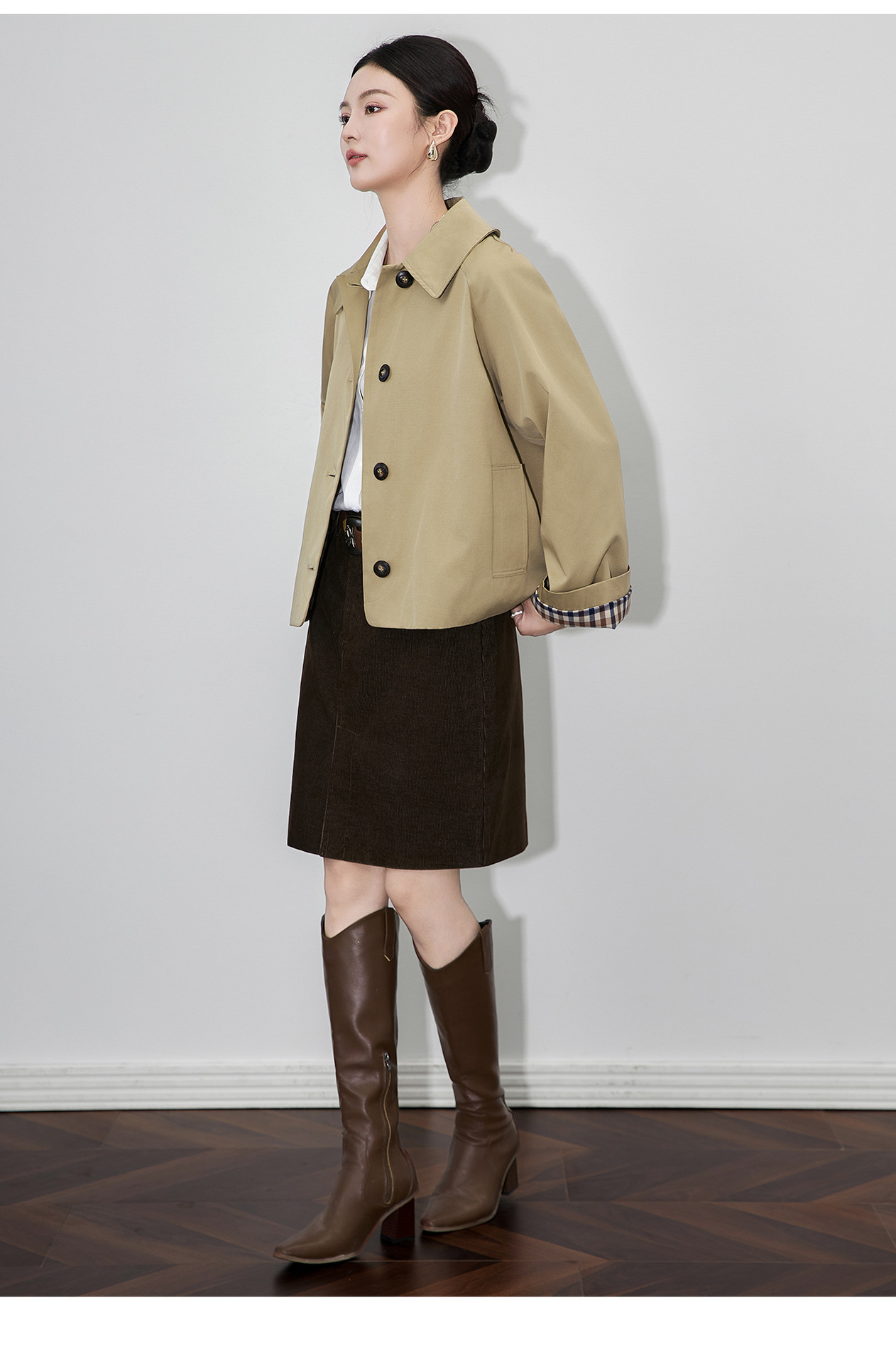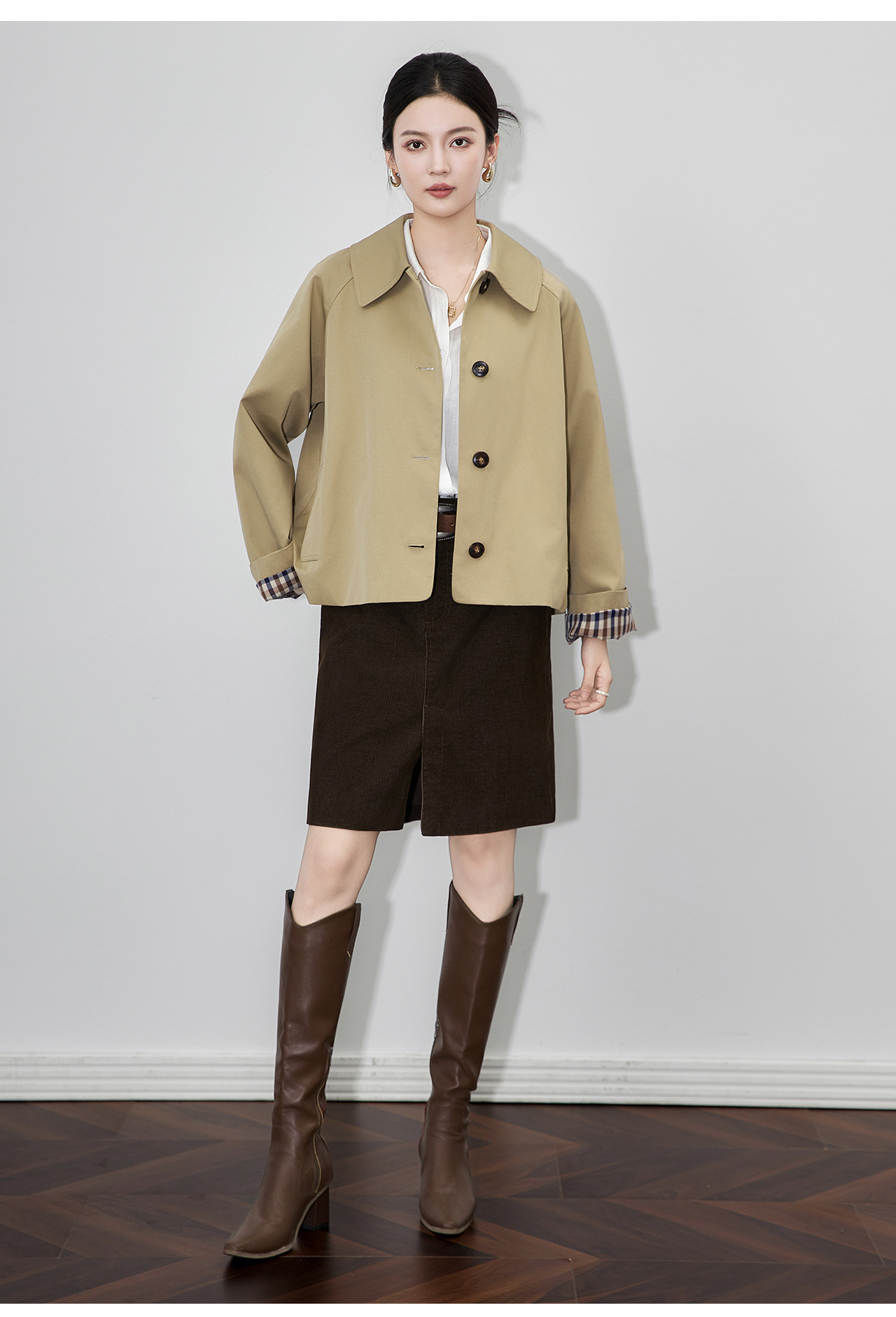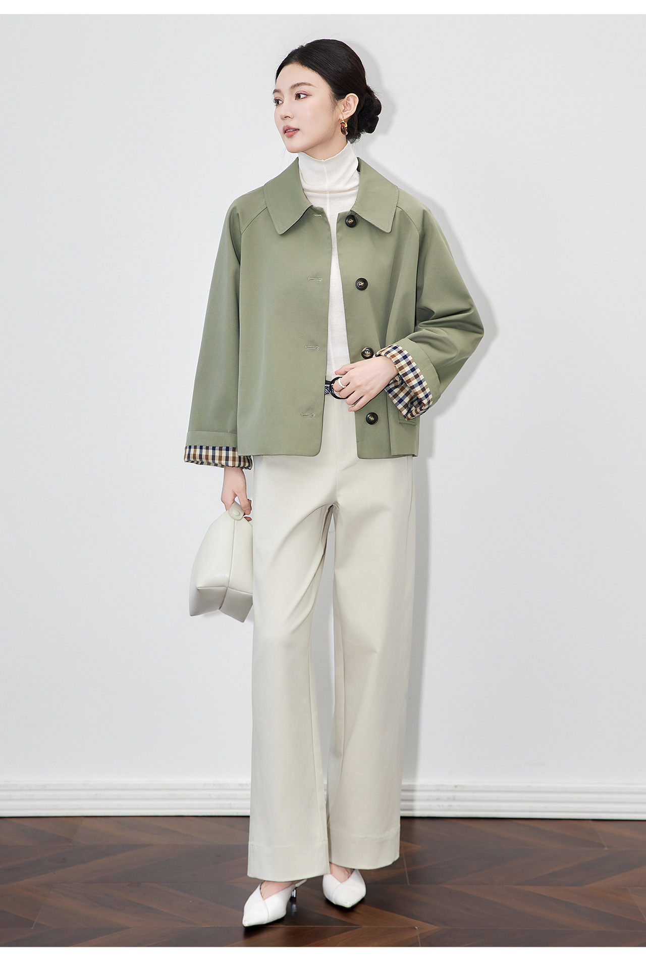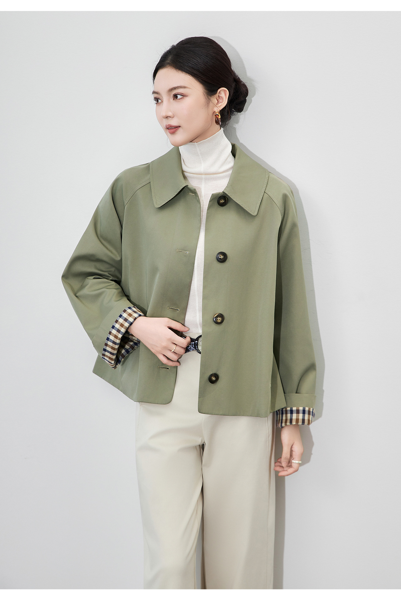 「高货wl」全新升级【铂金会员367/天猫499/差价132】(20527)洛诗琳法式复古格纹拼接外套2025秋季宽松短款风衣外套