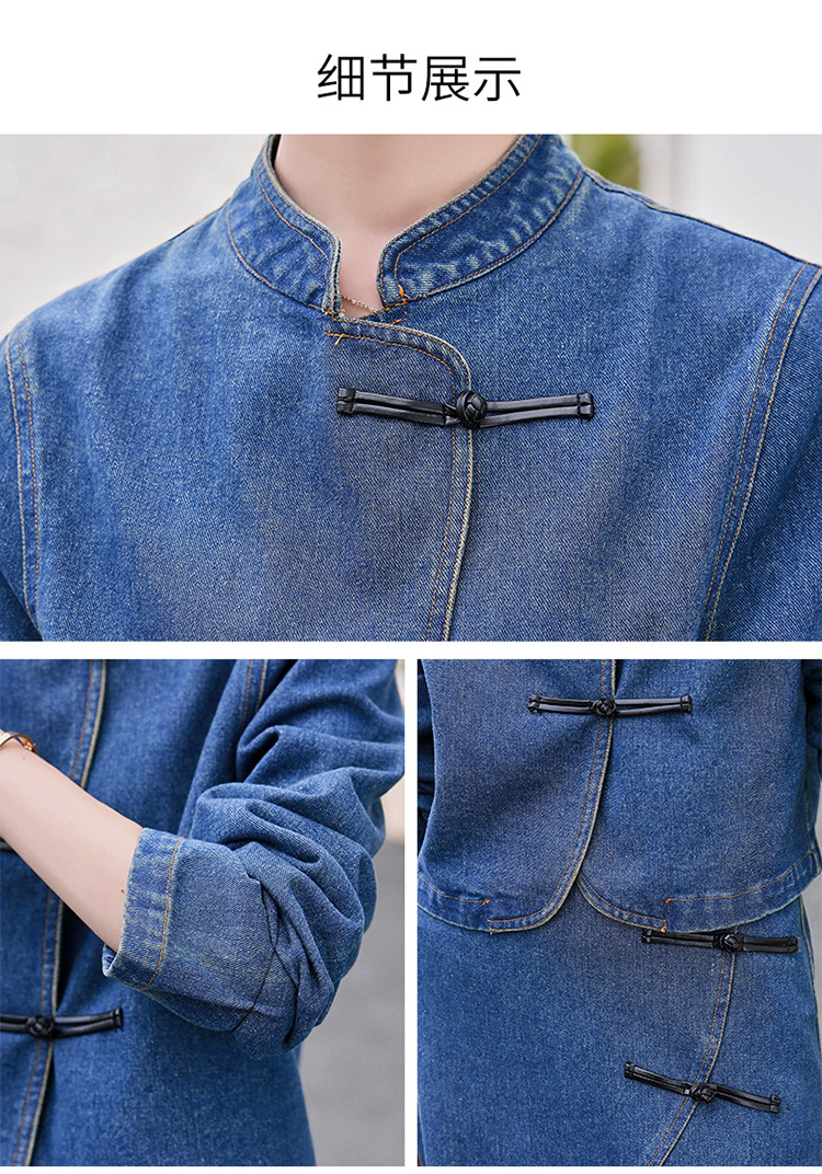 WZNHWH23779 2023年秋季新款气质复古潮流立领盘扣长款两件套牛仔套装裙 商品图4