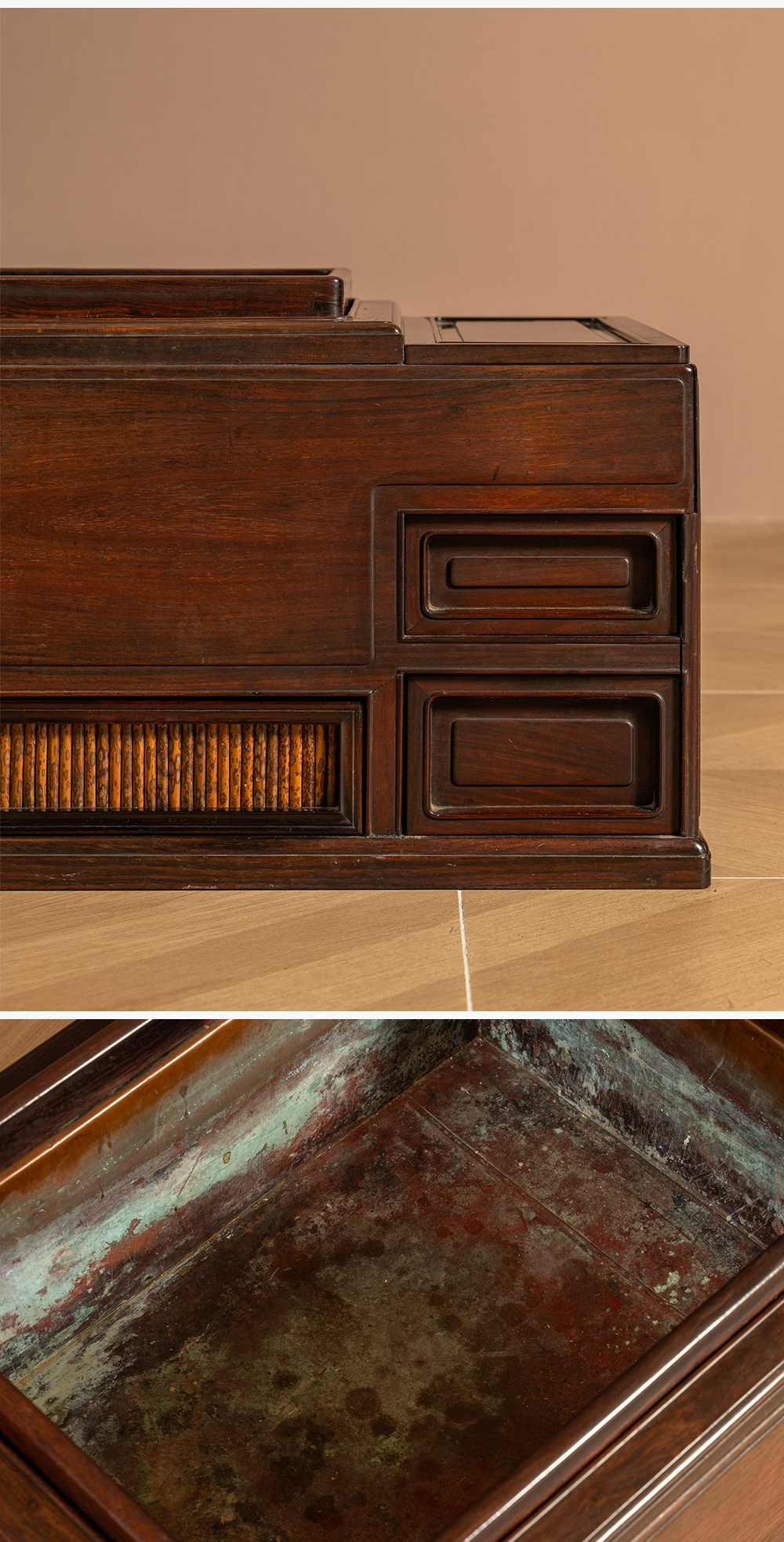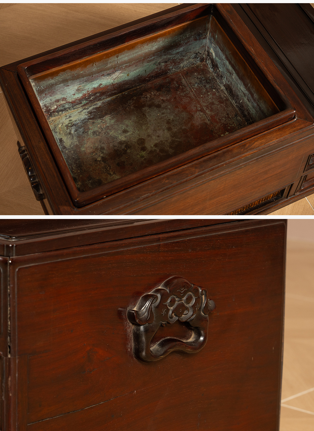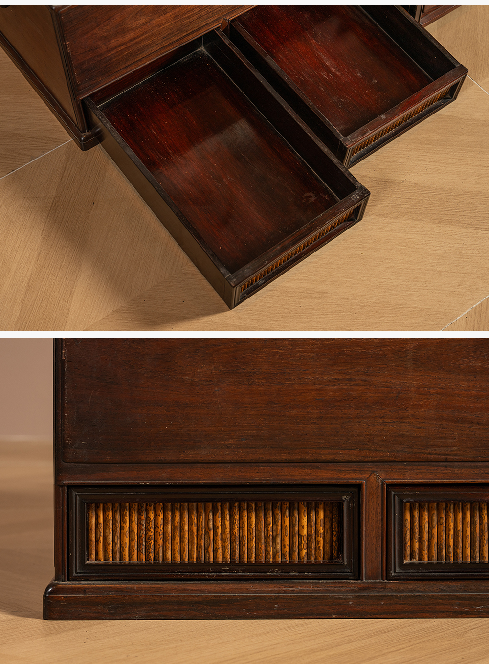清 红木嵌瘿木百衲镶六角锦地画桌
