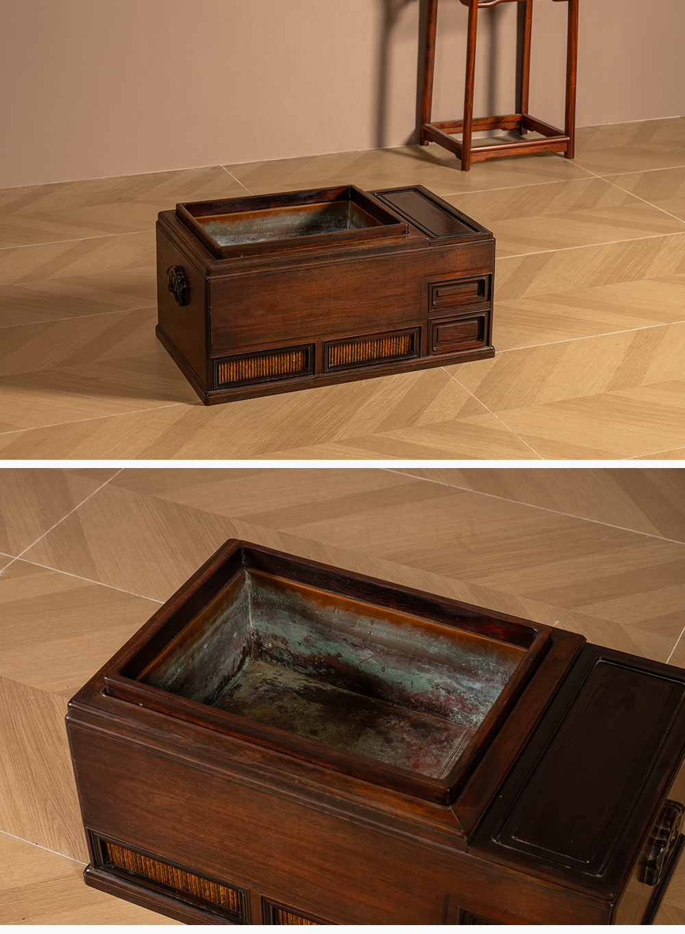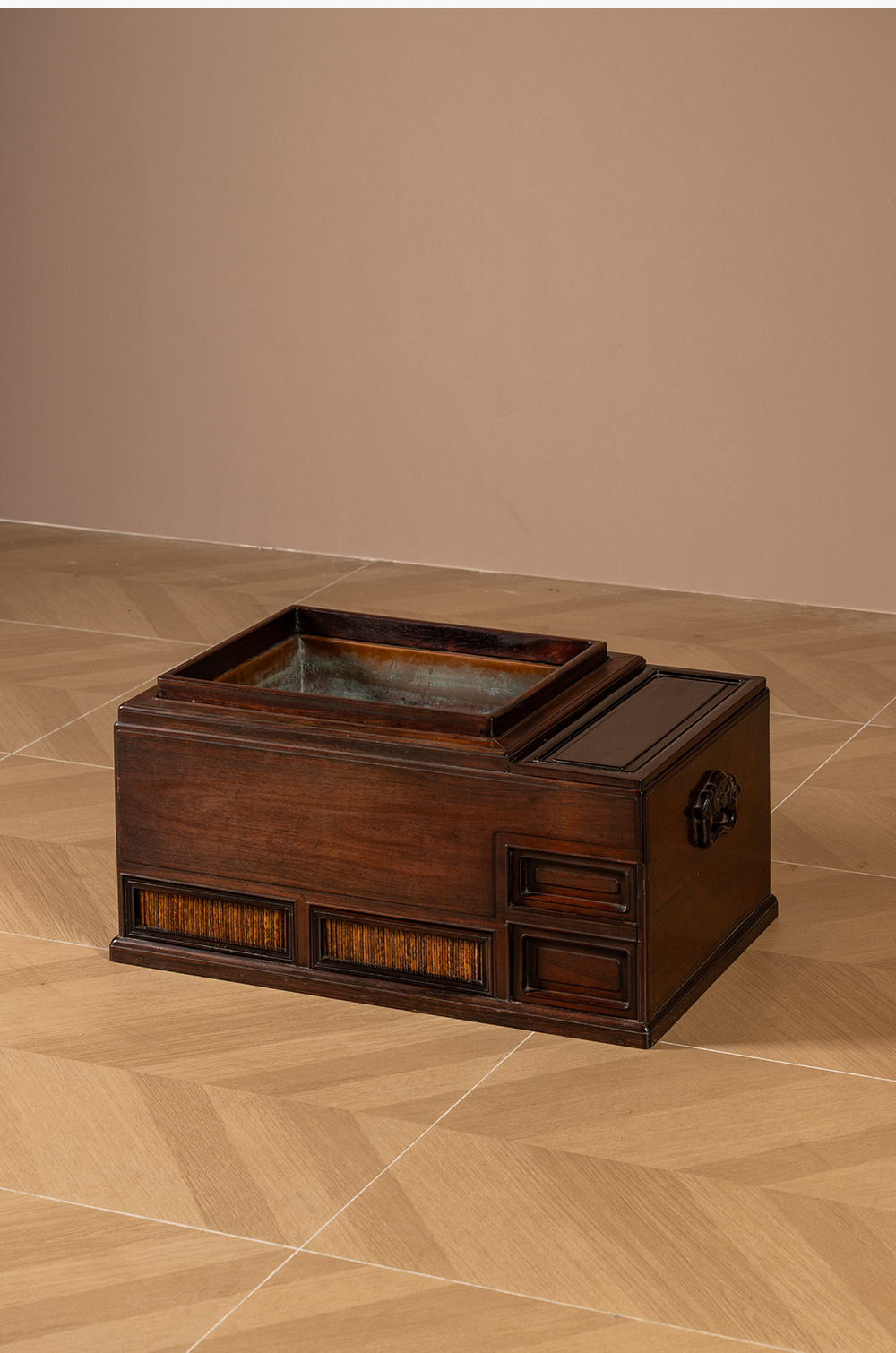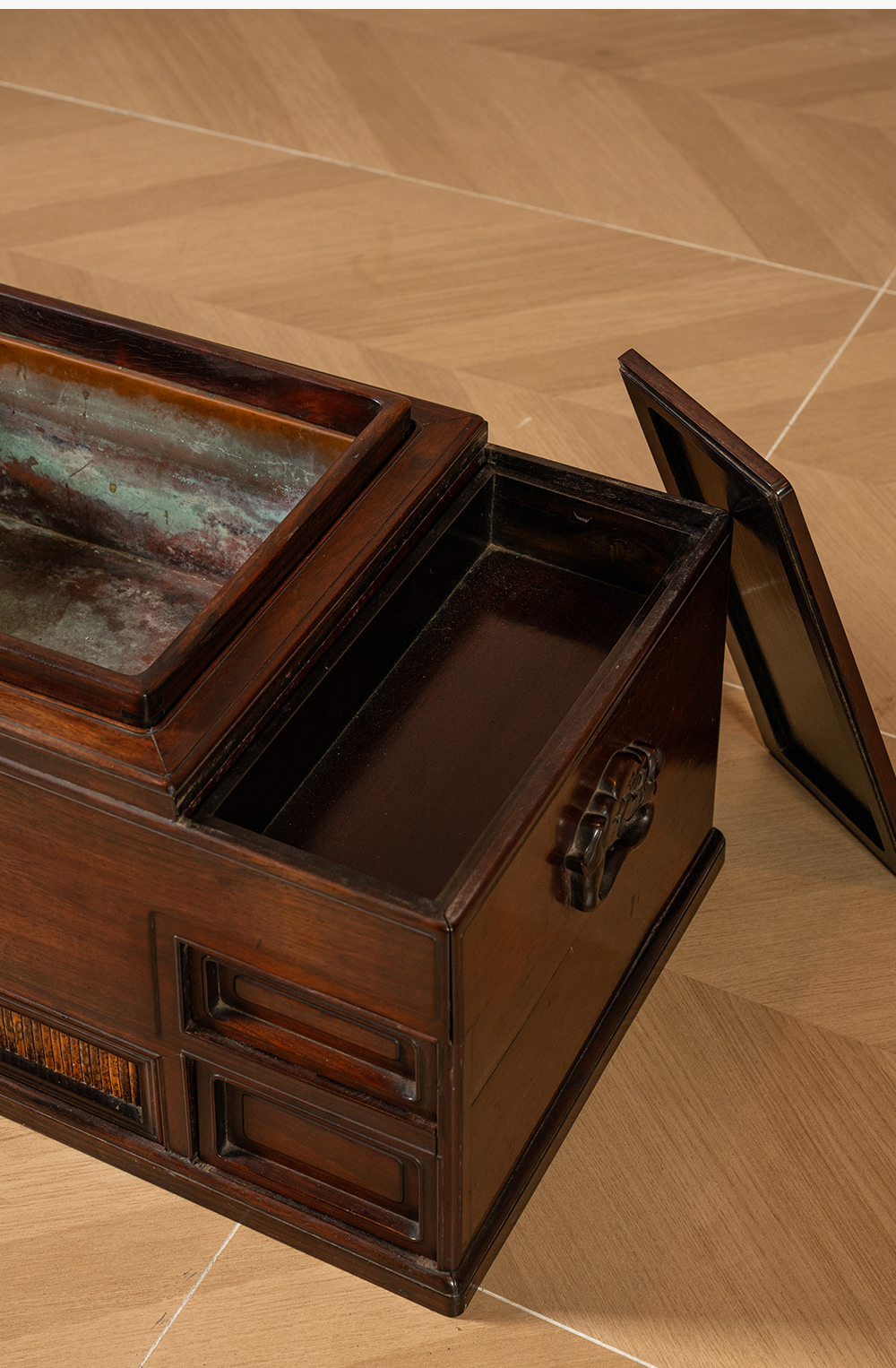 清 红木嵌瘿木百衲镶六角锦地画桌