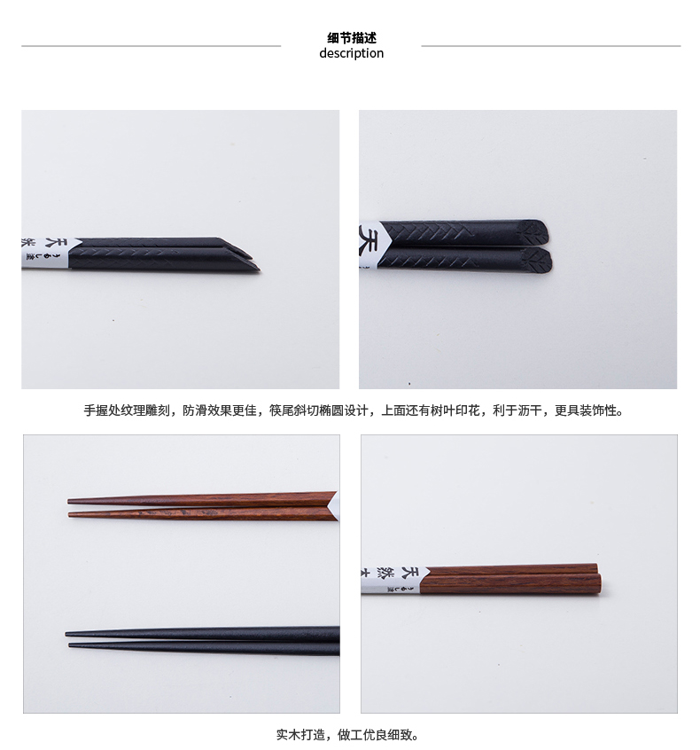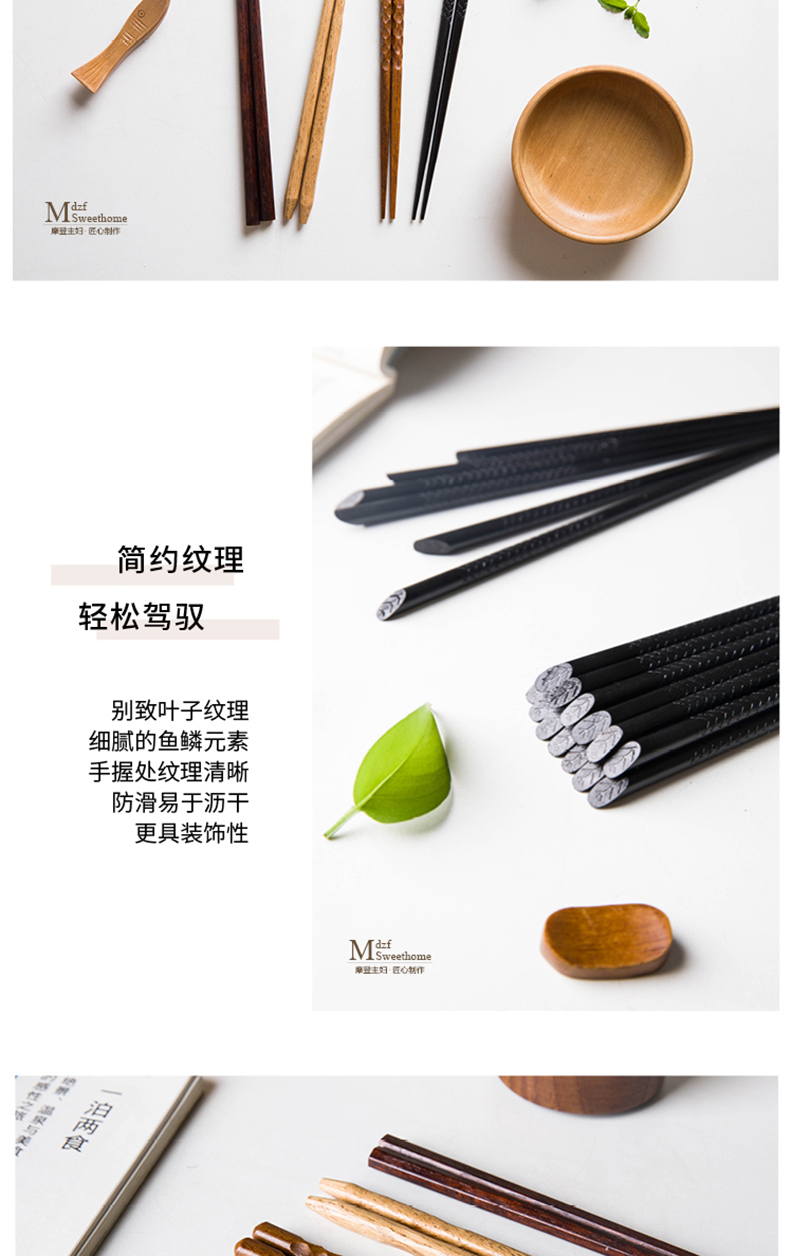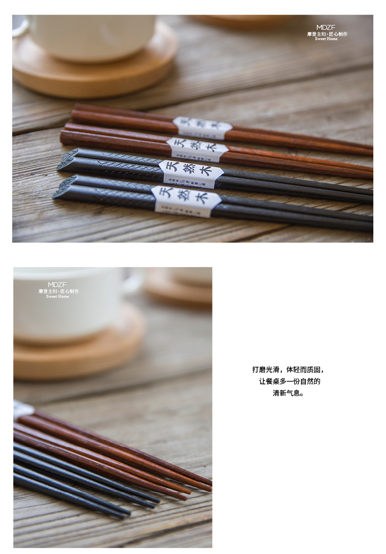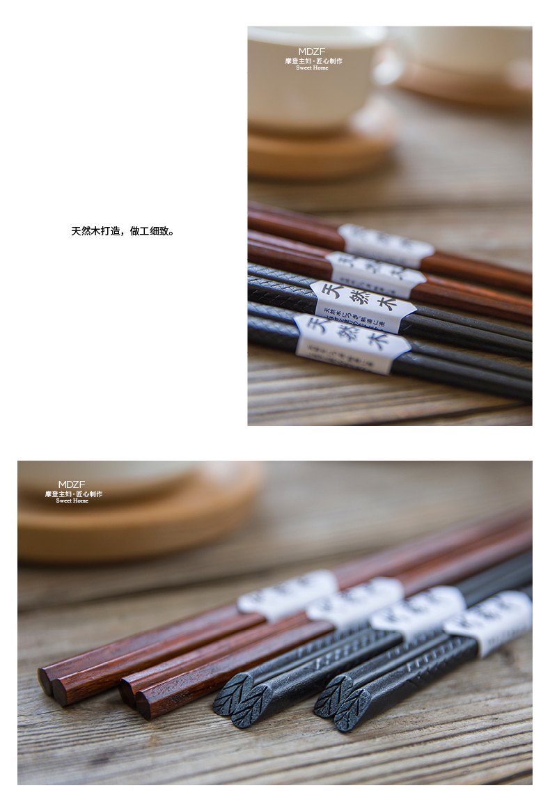 摩登主妇日式一人一筷木筷子防滑实木公筷家用耐高温分餐尖头筷子