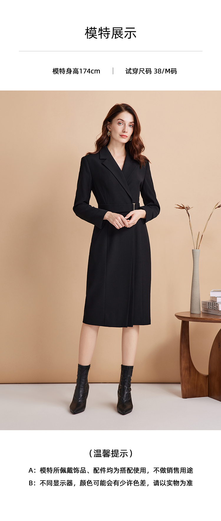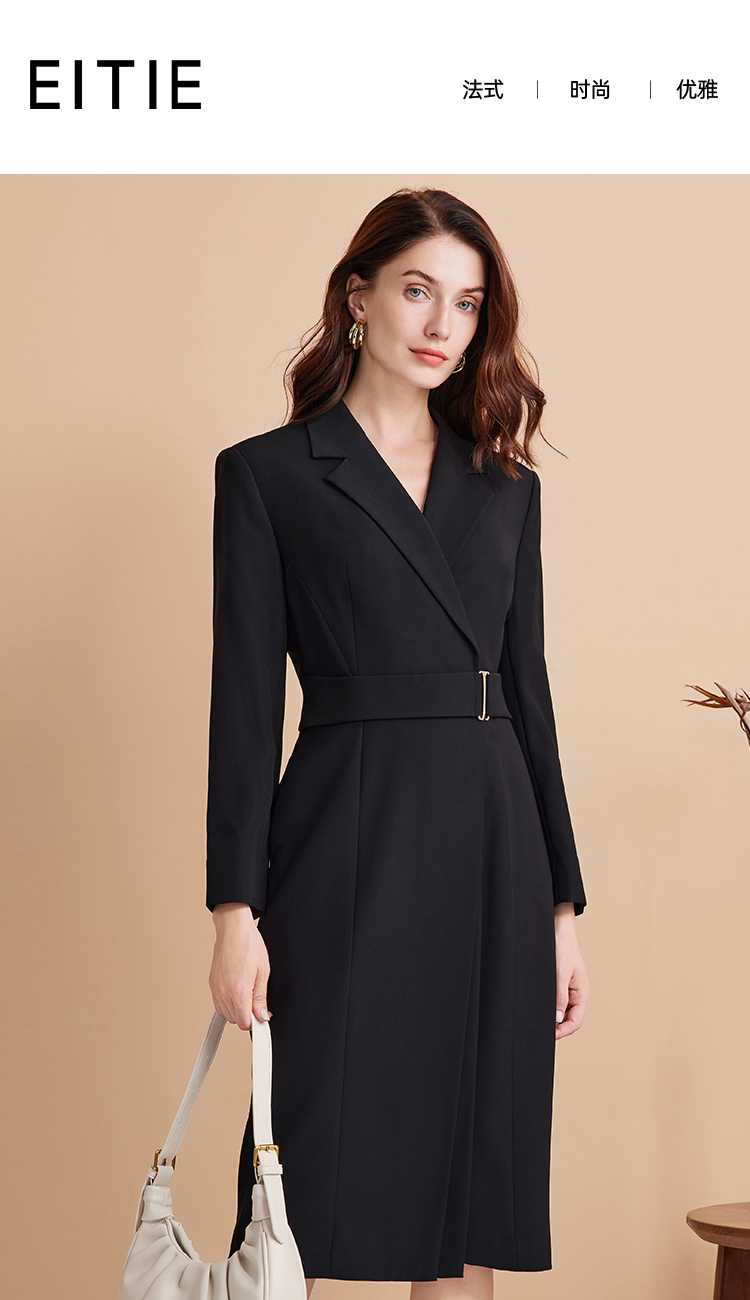 EITIE爱特爱秋季新款气质通勤显瘦百搭翻领西装连衣裙7507218