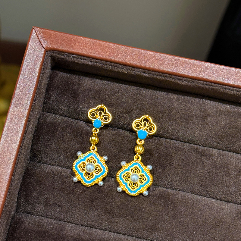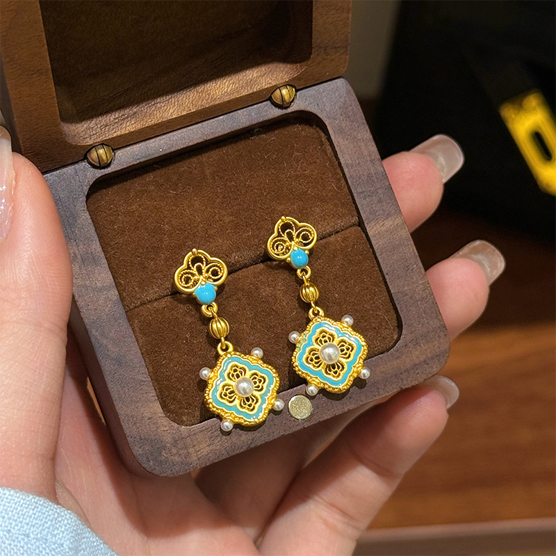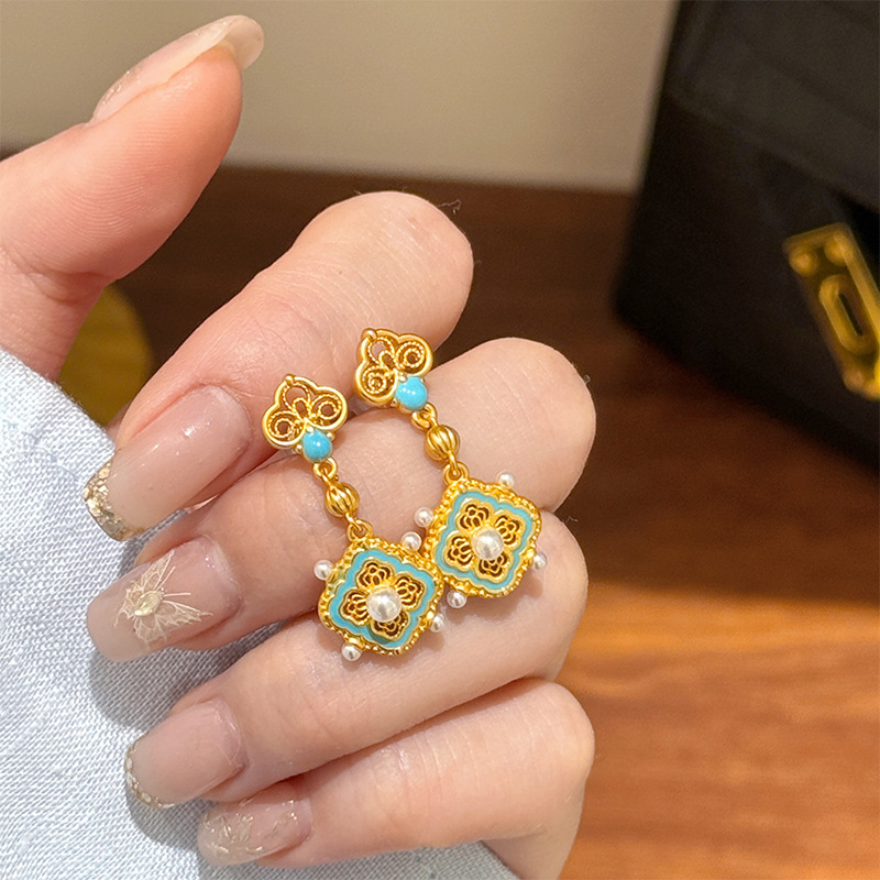【预售3天】新中式复古精致气质百搭祥云滴油镶珍珠耳环DMS-01192