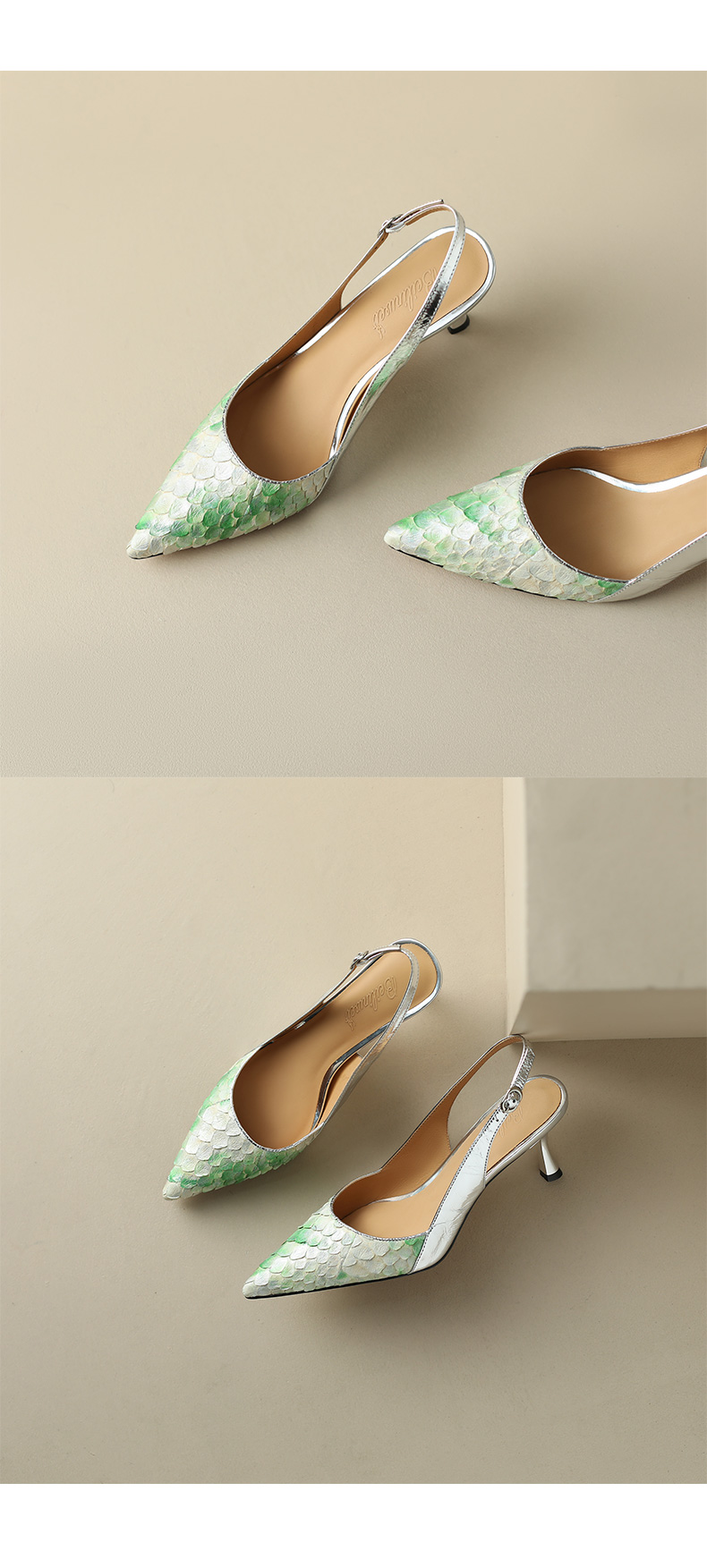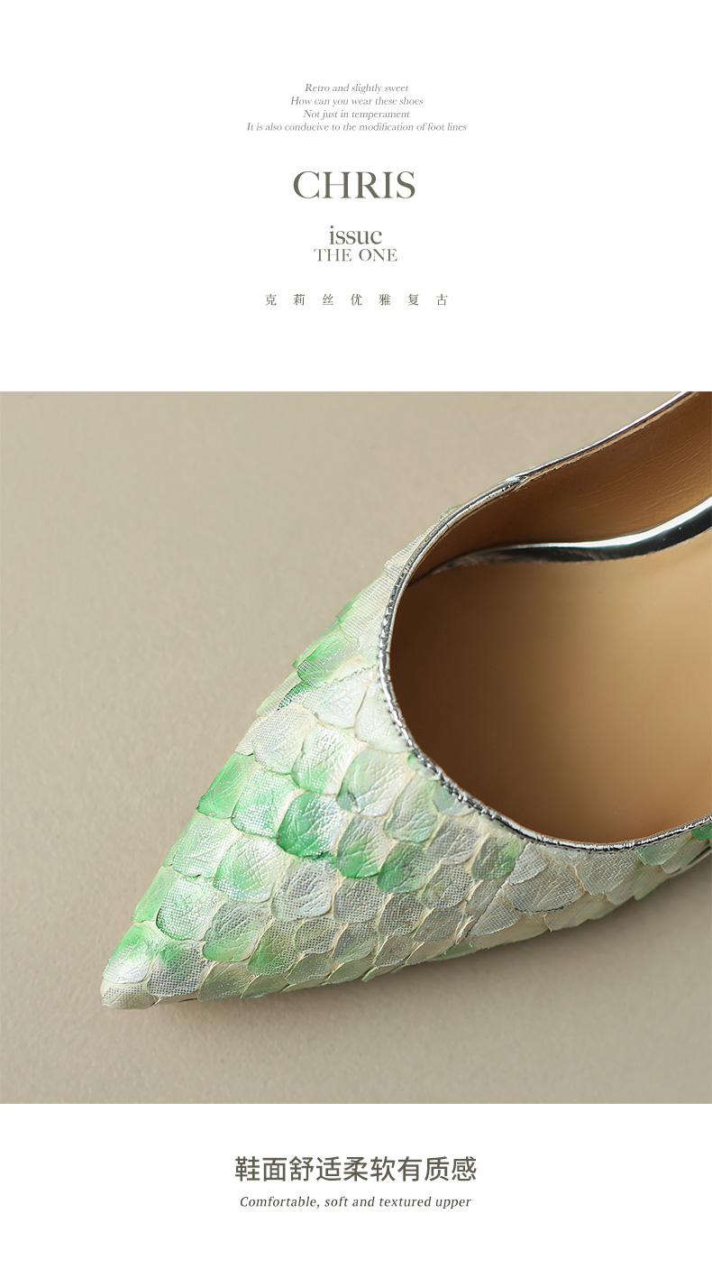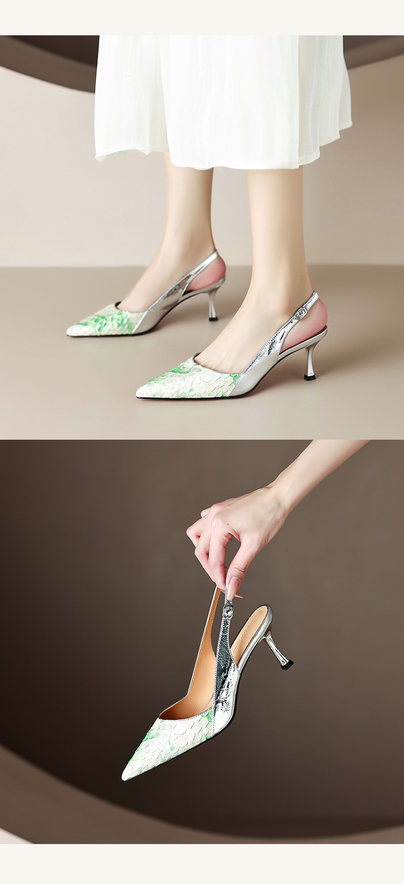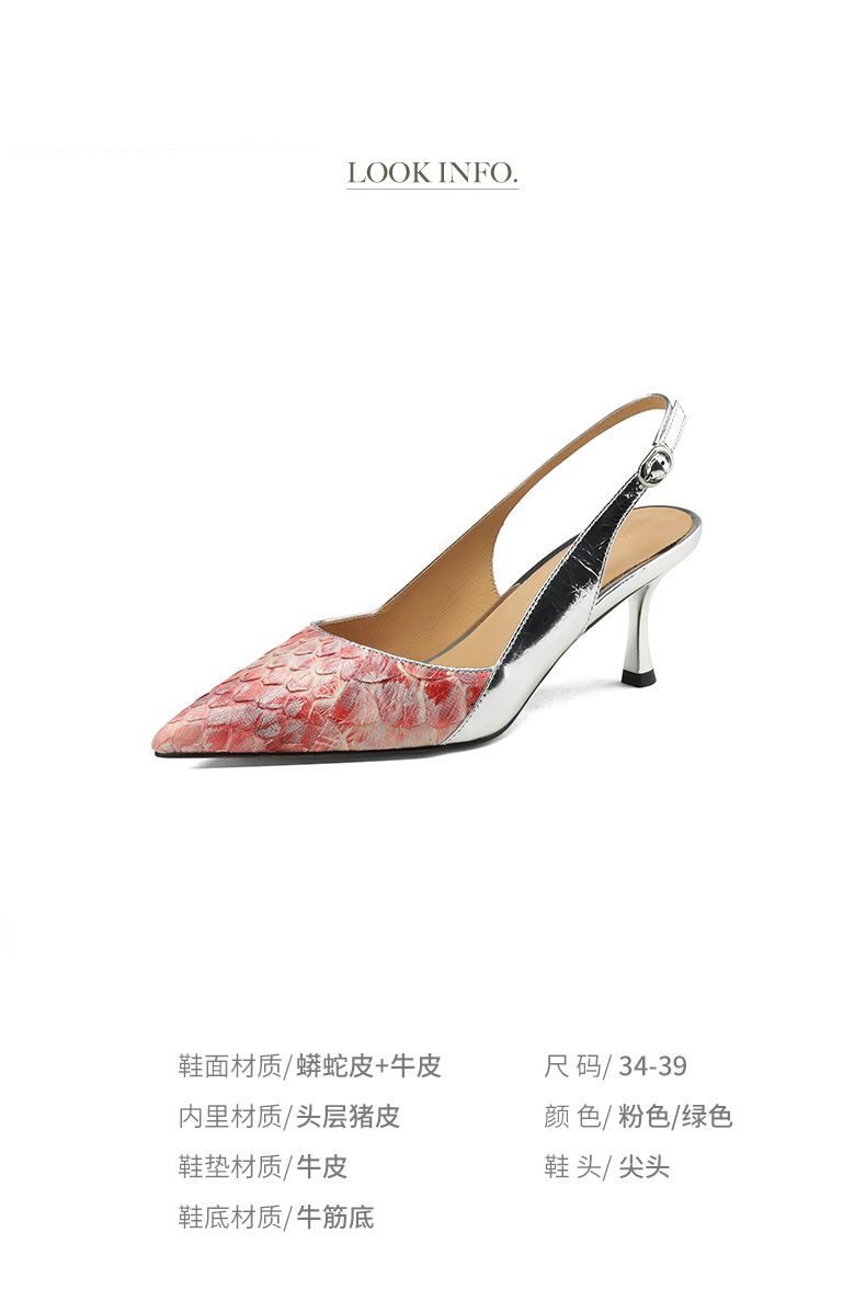 清新简约,个性蟒蛇皮+牛皮高跟凉鞋ZF3394