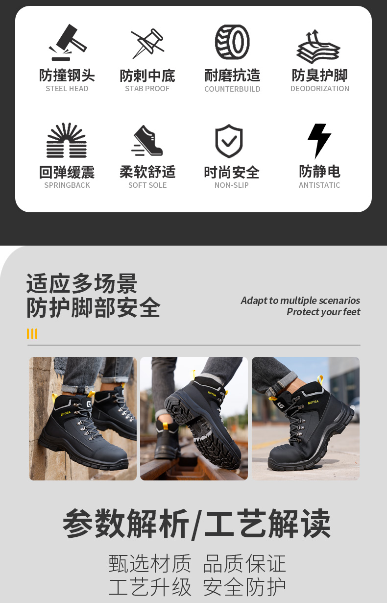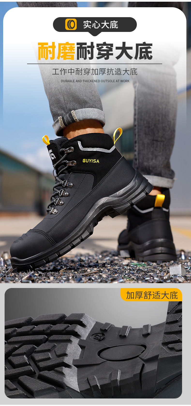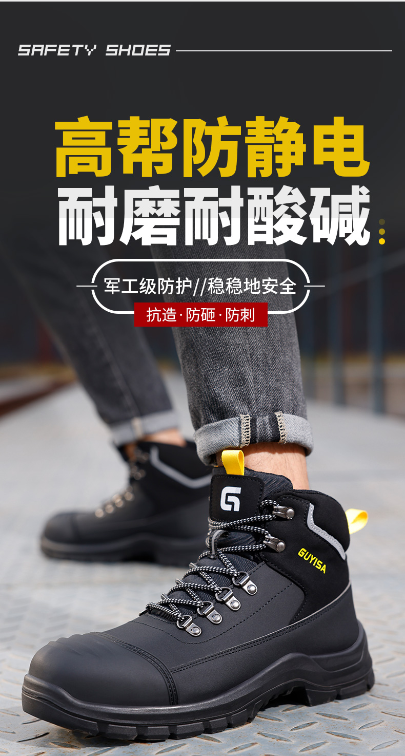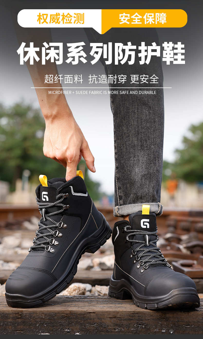 劳保鞋男防砸防刺防静电四季款实心底超纤皮钢包头安全鞋工作鞋