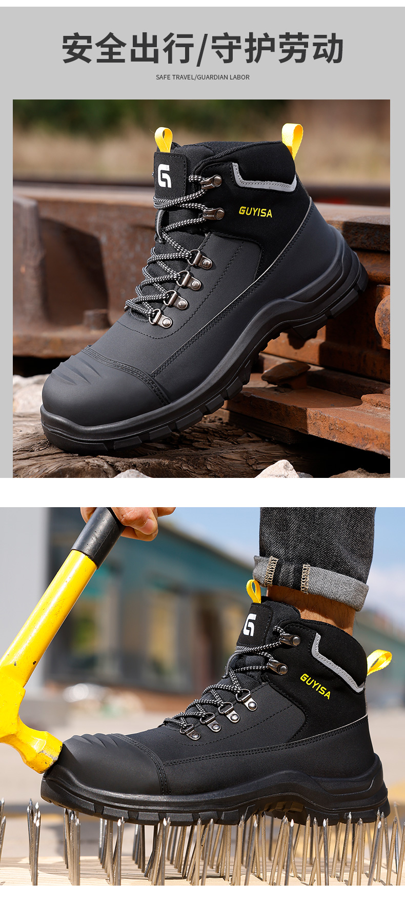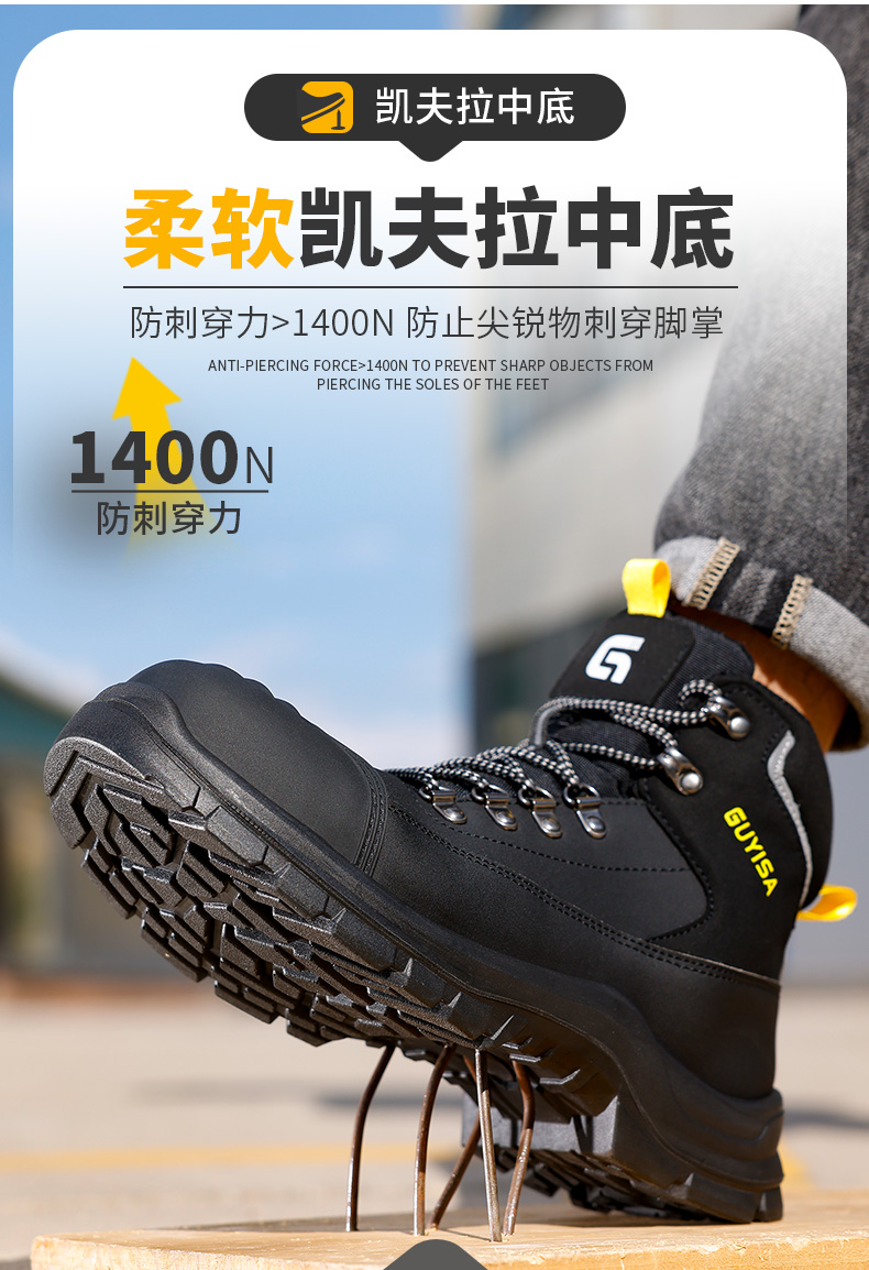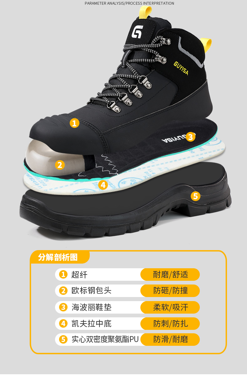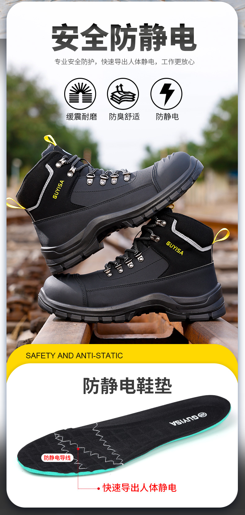 劳保鞋男防砸防刺防静电四季款实心底超纤皮钢包头安全鞋工作鞋