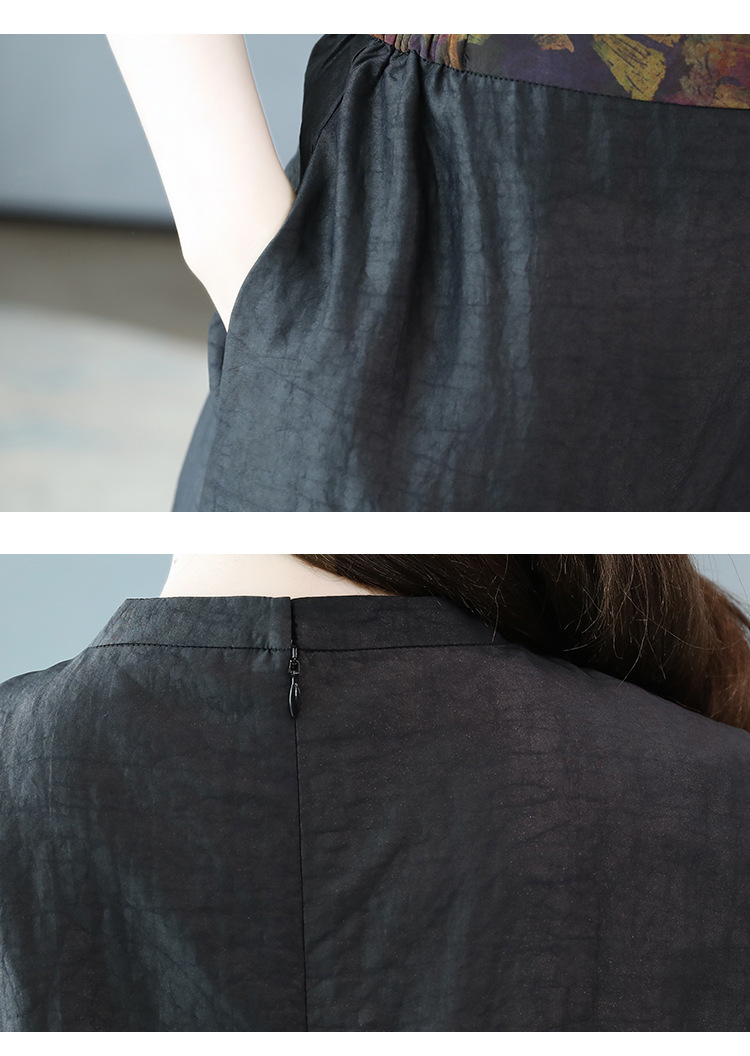 WZNH-HRYZ7067通勤圆领高腰韩版短袖文艺范连衣裙