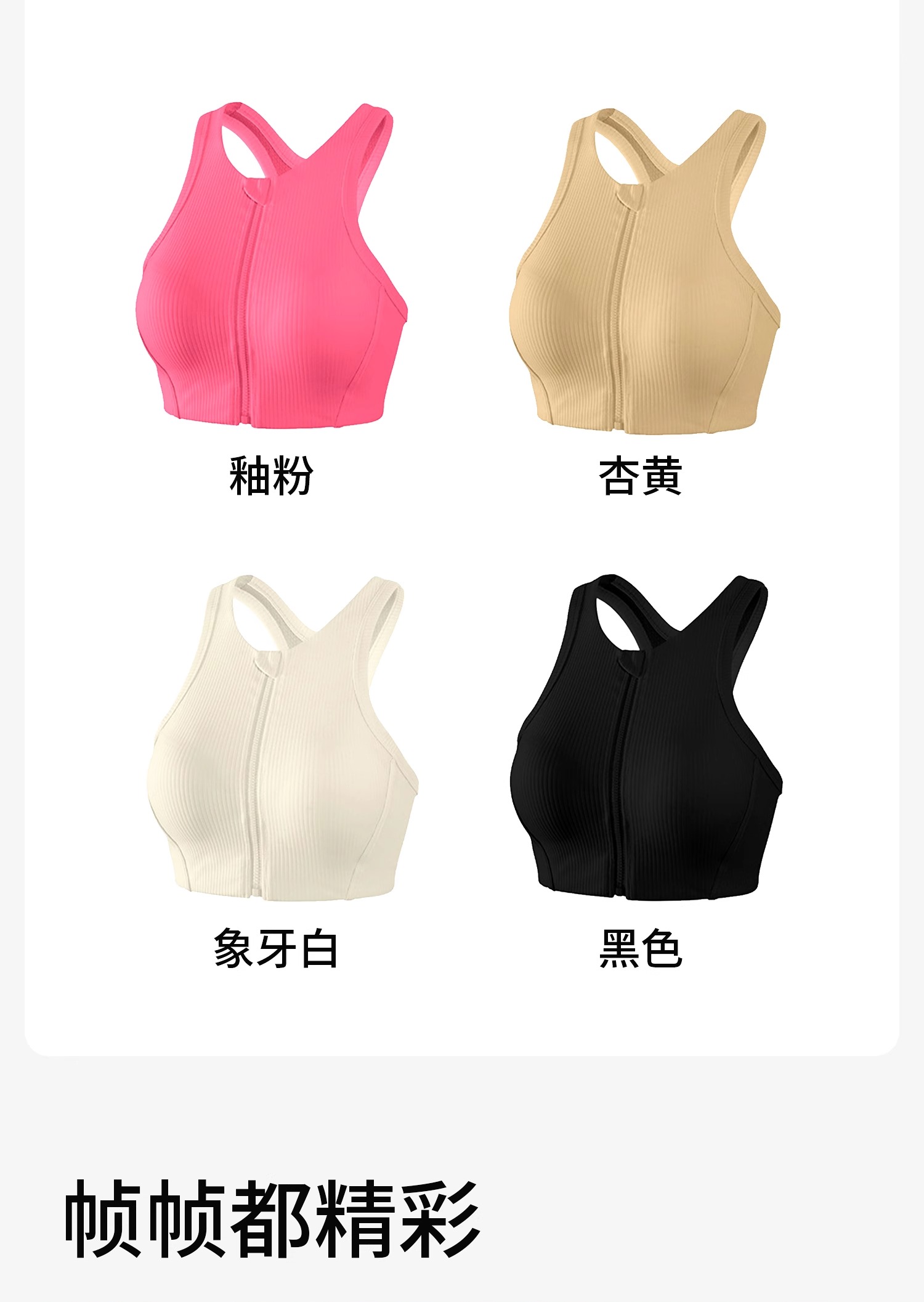 跃牌【倚窗听雨】系列 2025新款前拉链一体式瑜伽文胸女防震高强度健身背心WX82