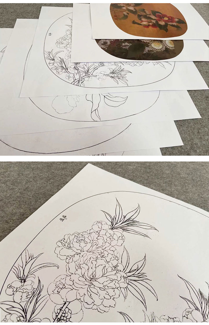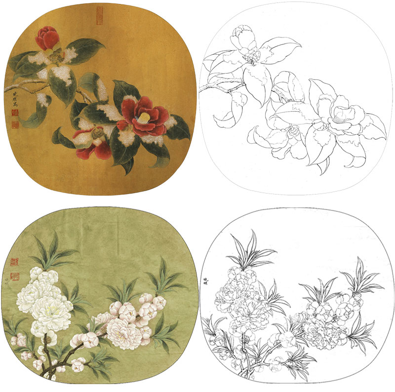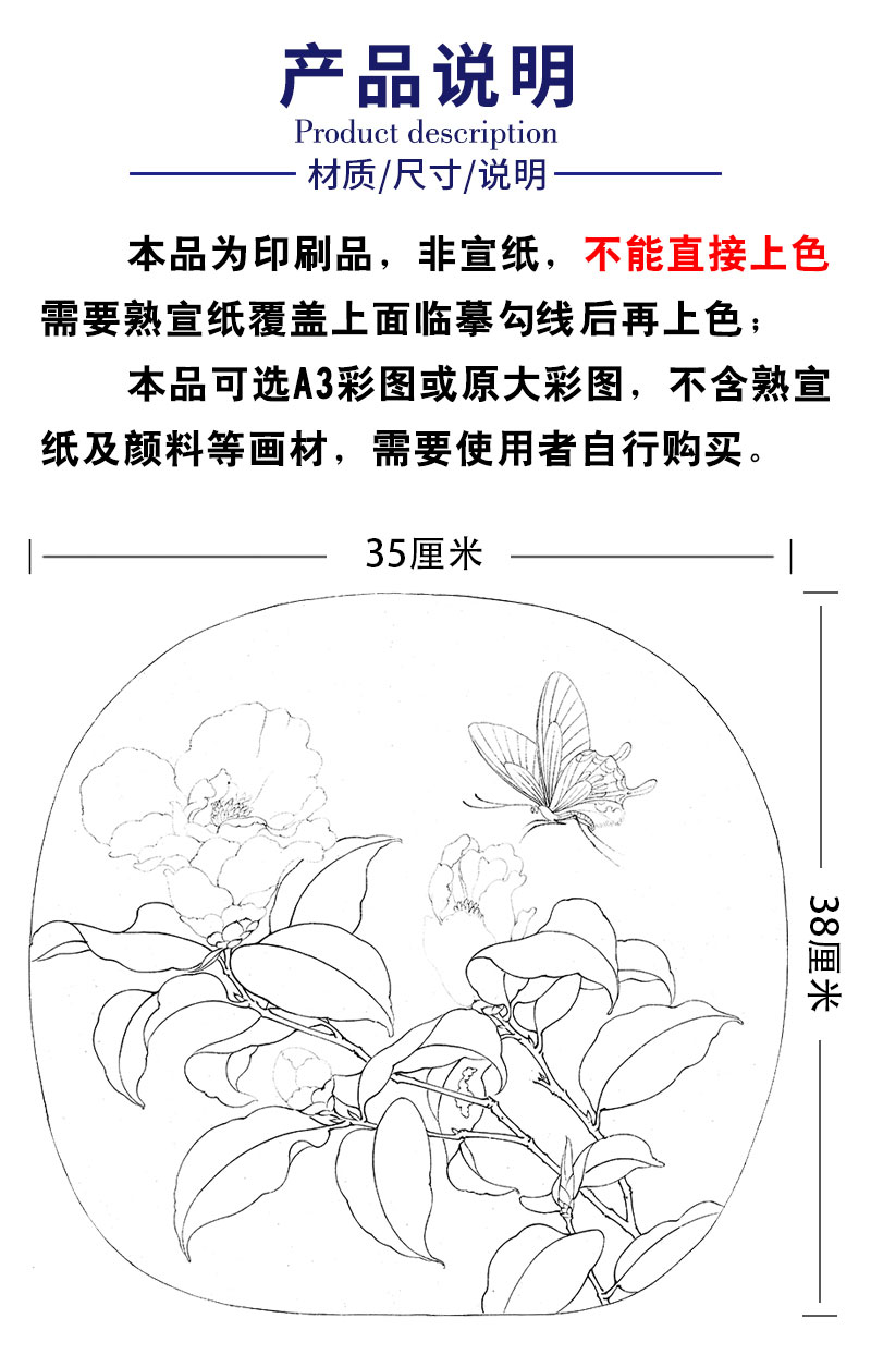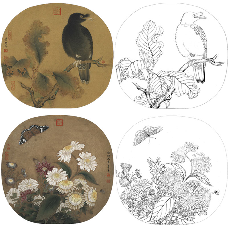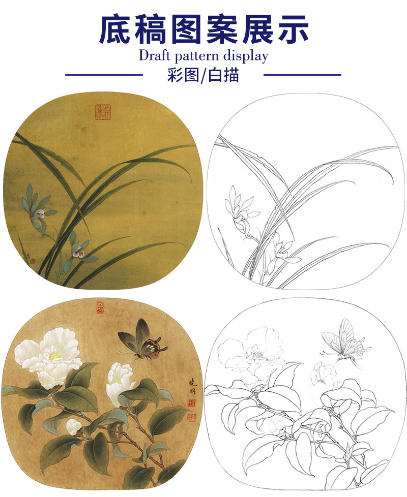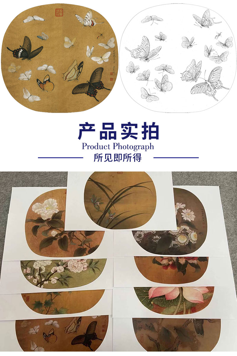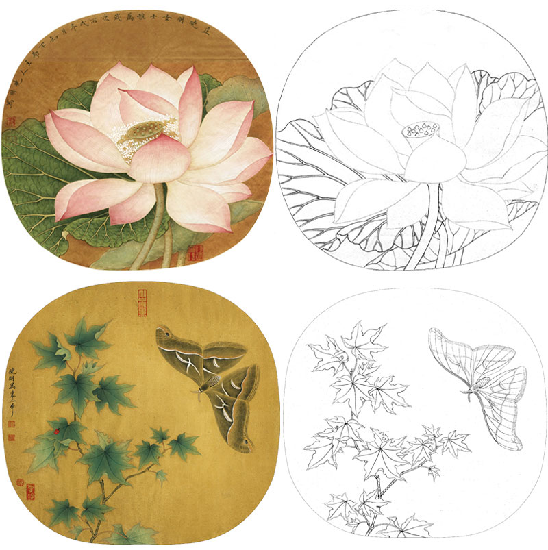 李晓明工笔花鸟画白描底稿蝴蝶荷花小品一套九幅册页初学者尺寸35×38厘米TW07