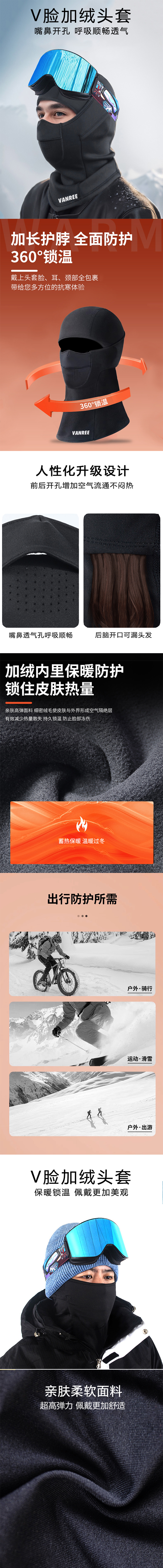 【加长护脖 360度锁温】自由兵冬天户外滑雪骑行穿越加绒头套ds(zb)