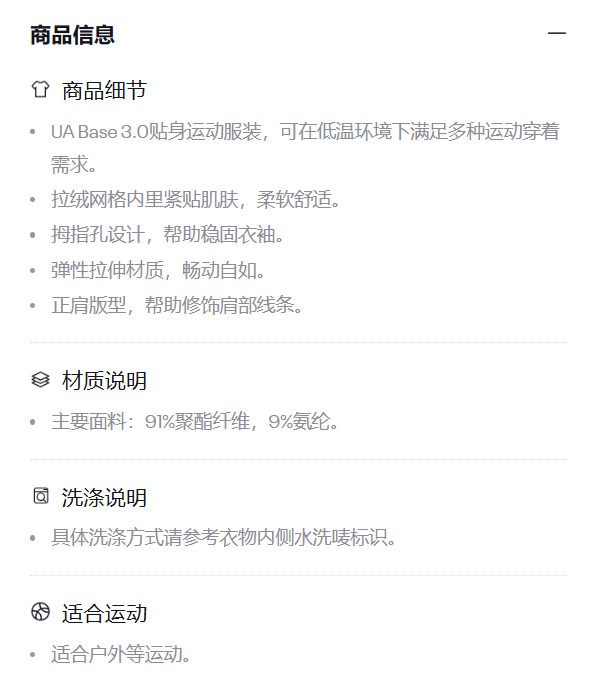 【Coldgear打底系列】安德玛男子UA Base 3.0圆领长袖紧身衣6005297-001