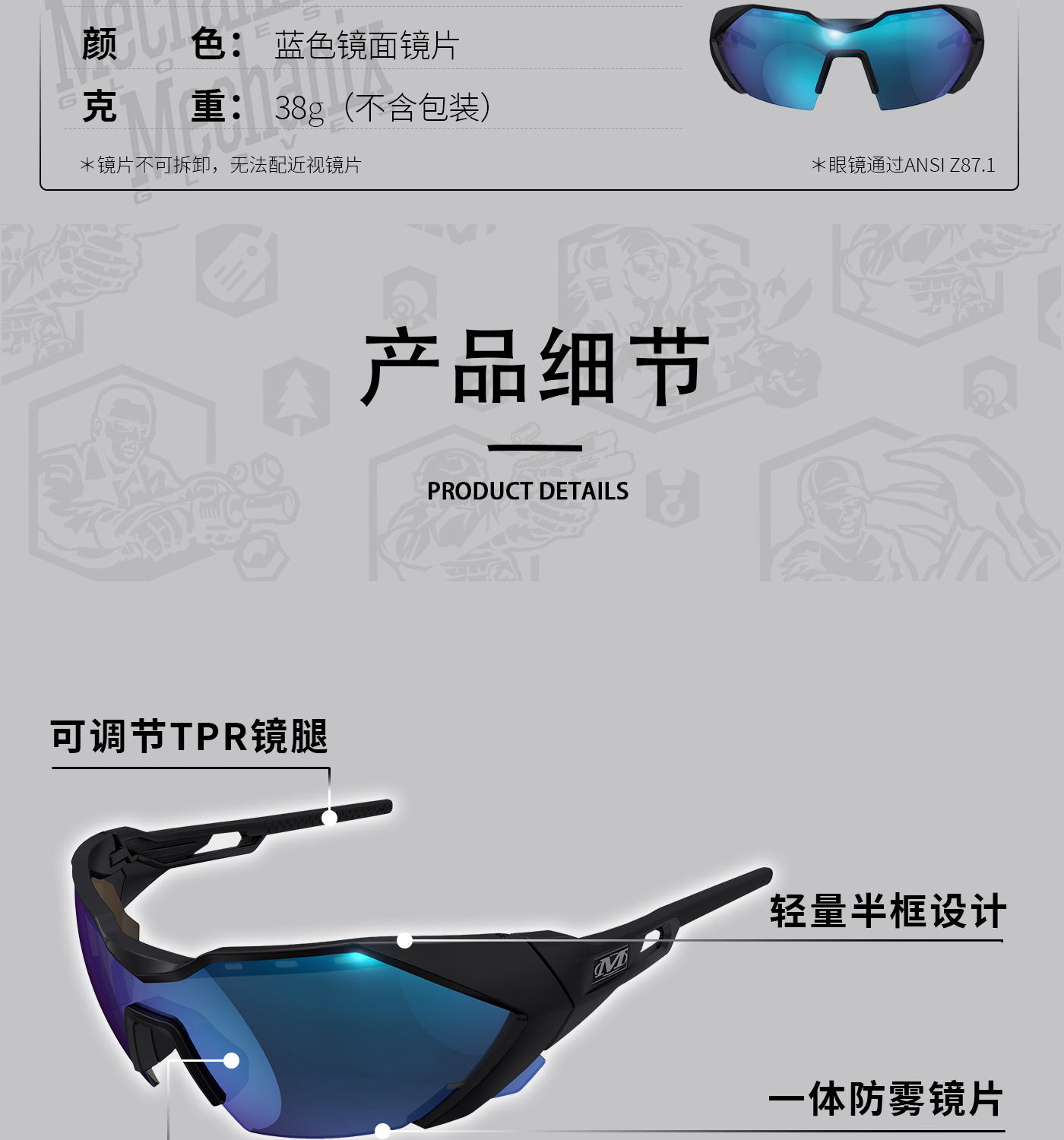 【整副眼镜重量仅38g 防雾镜片】美国mechanix超级技师防冲击防雾户外骑行战术防护护目眼墨镜VES(js)ds