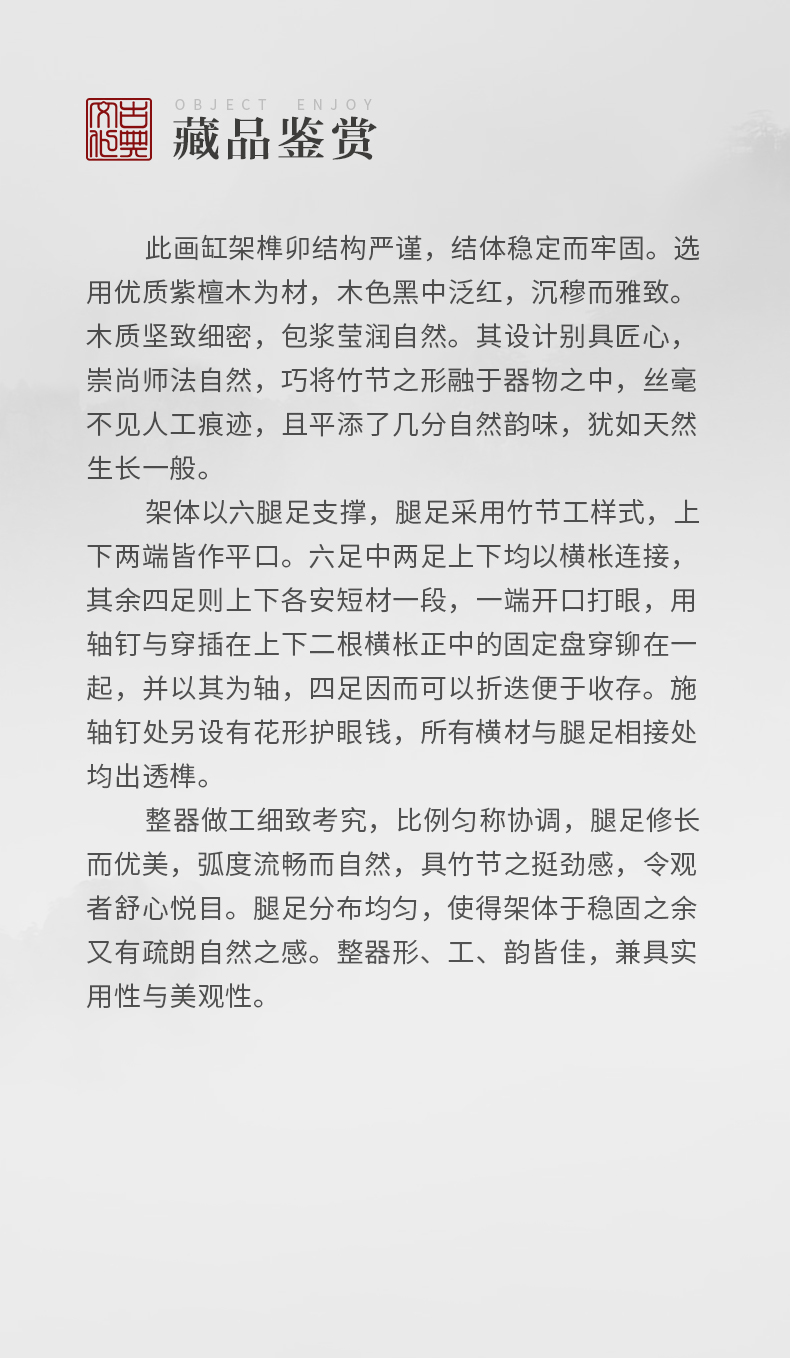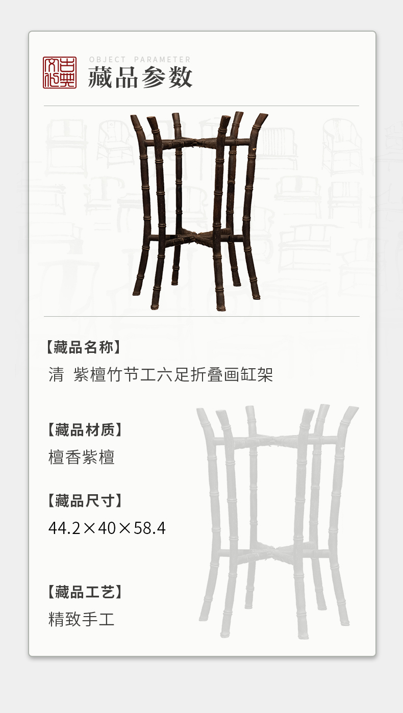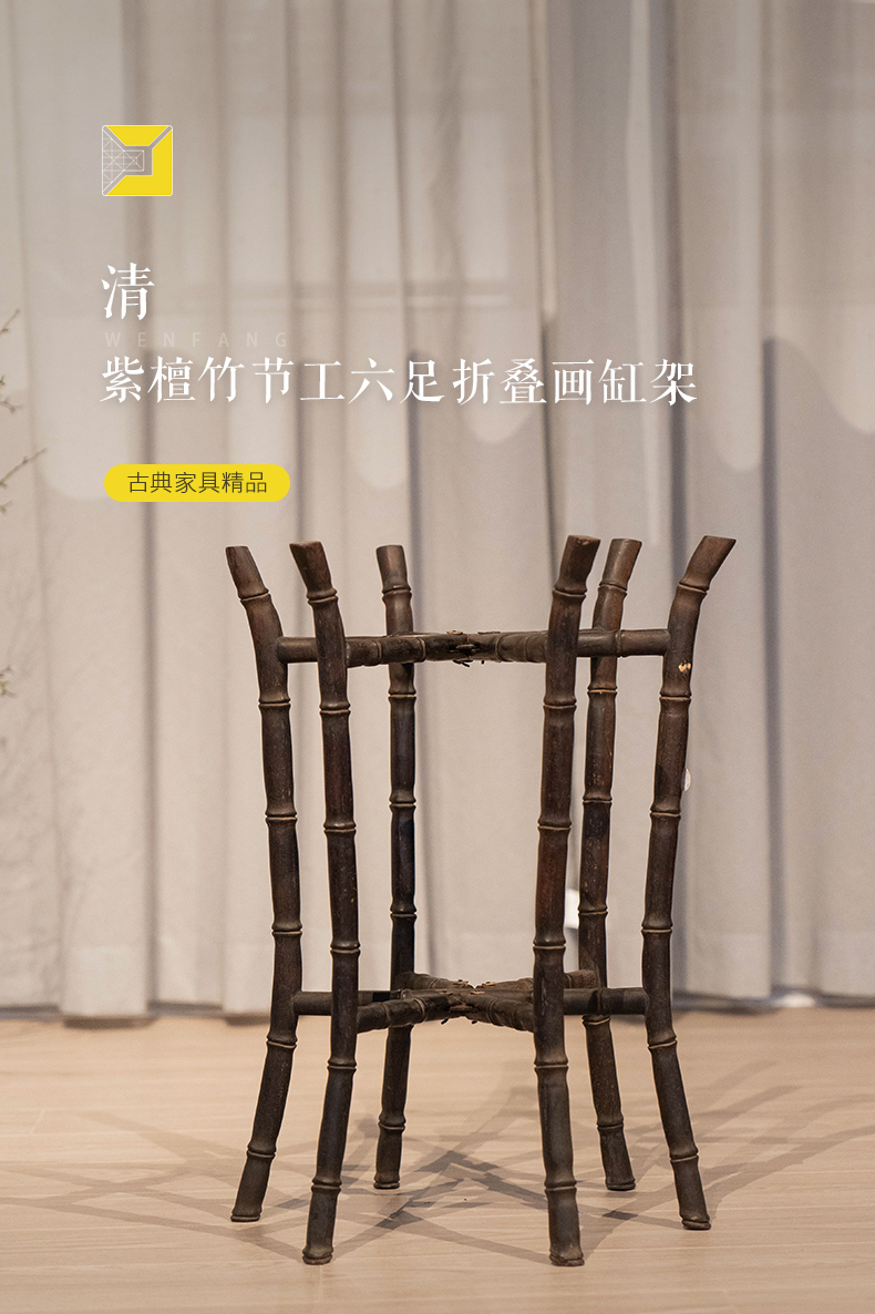 清 紫檀竹节工六足折叠画缸架
