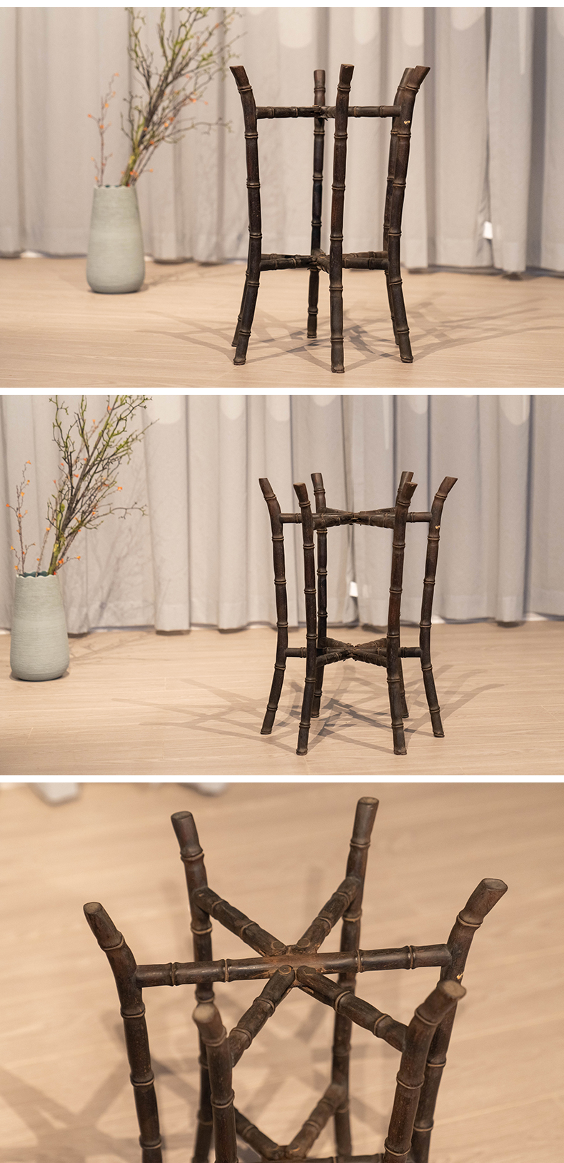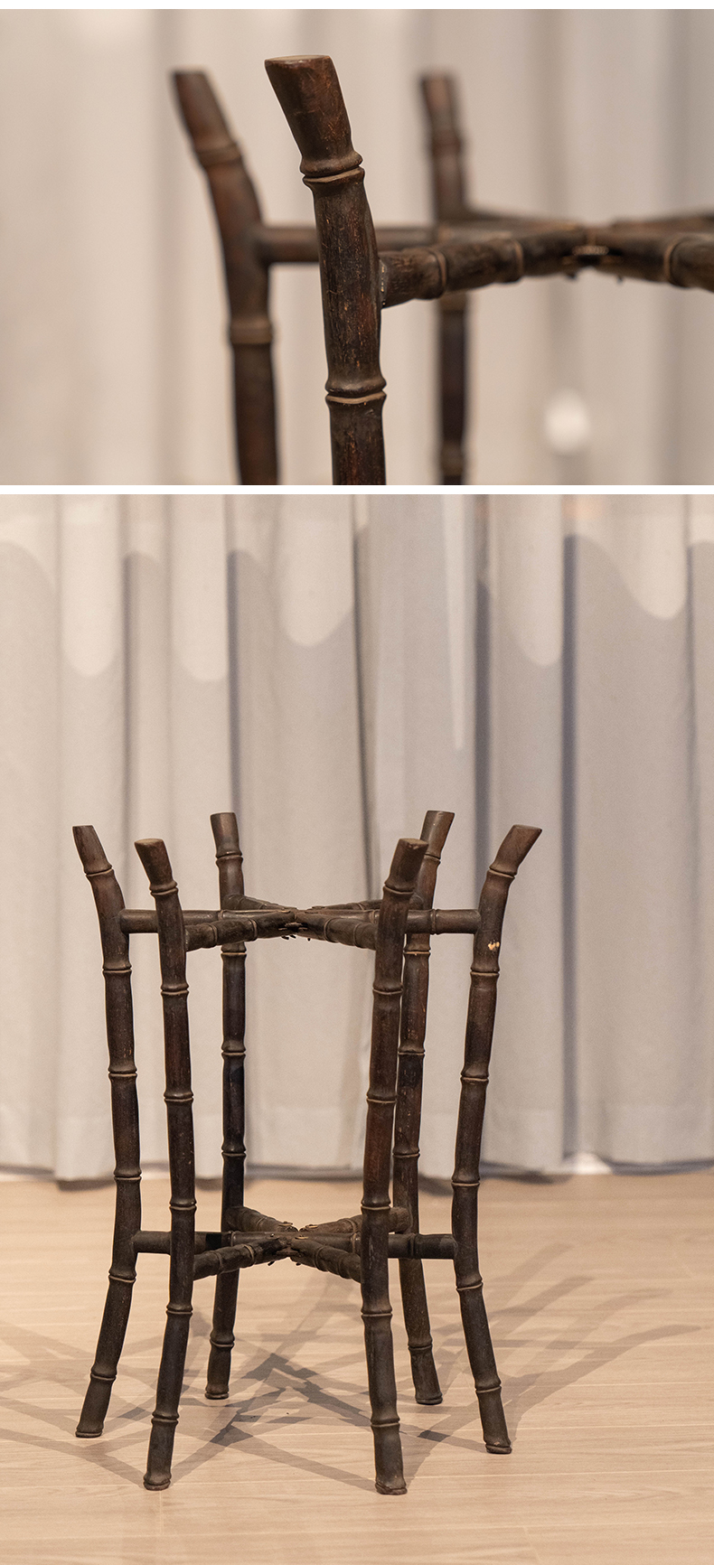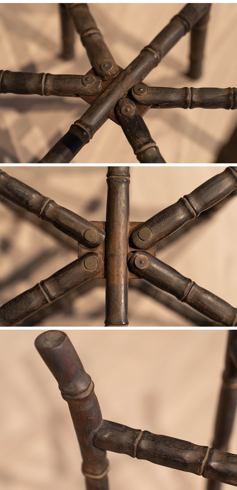 清 紫檀竹节工六足折叠画缸架