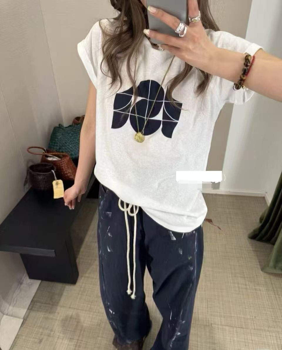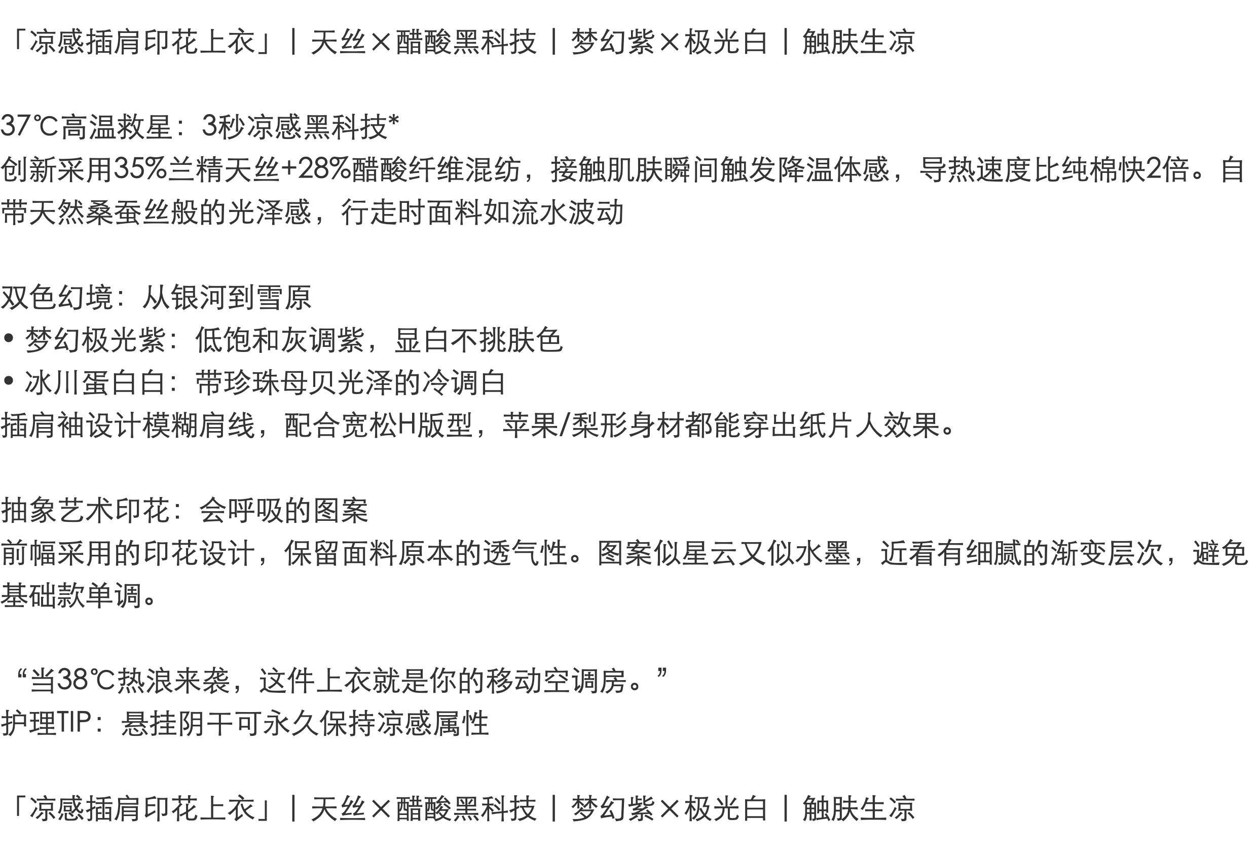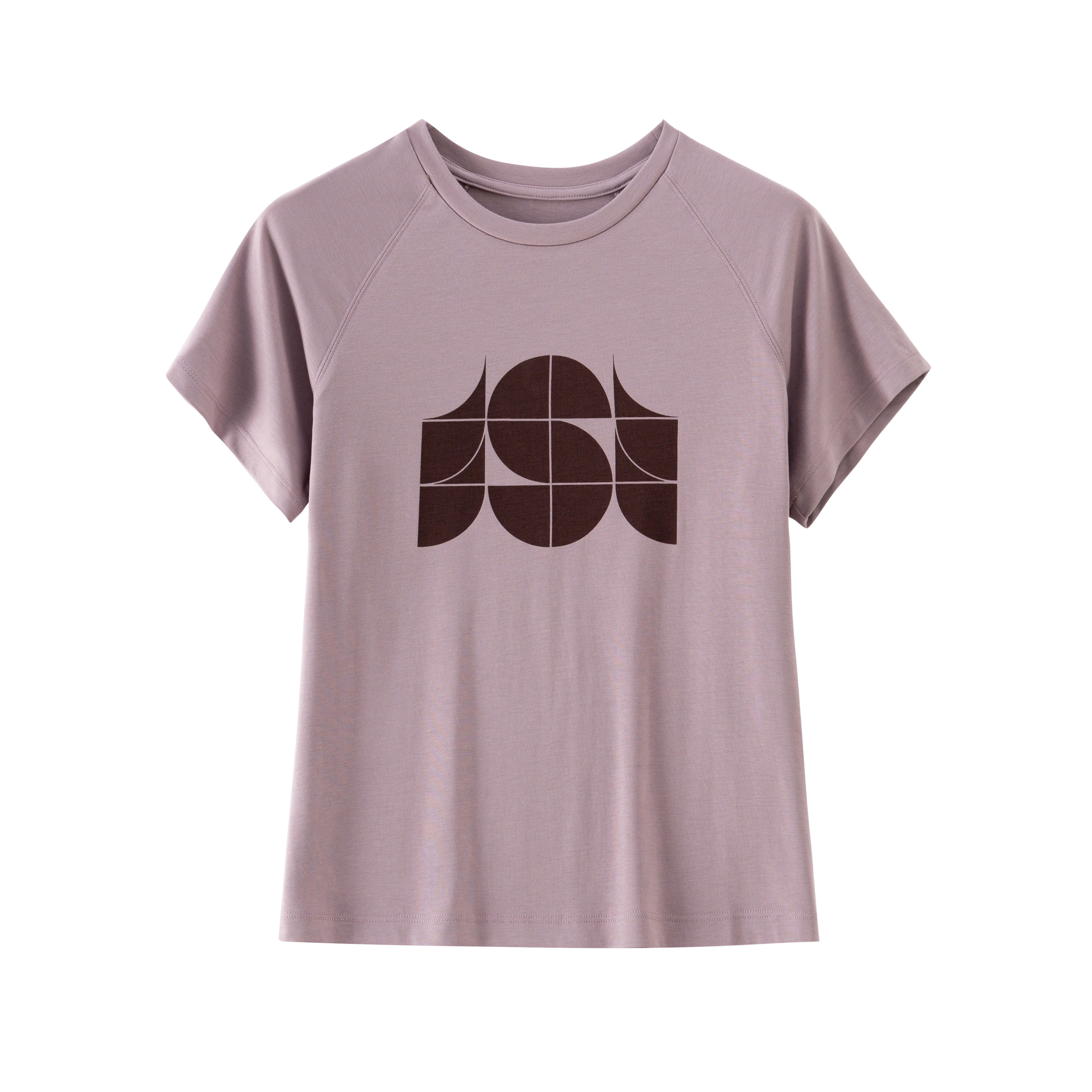 「K」洛诗琳34646凉感插肩印花T恤2025夏季新款醋酸混纺T恤10355