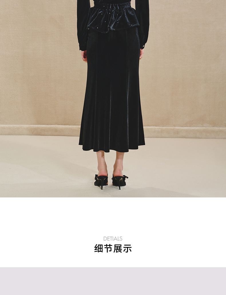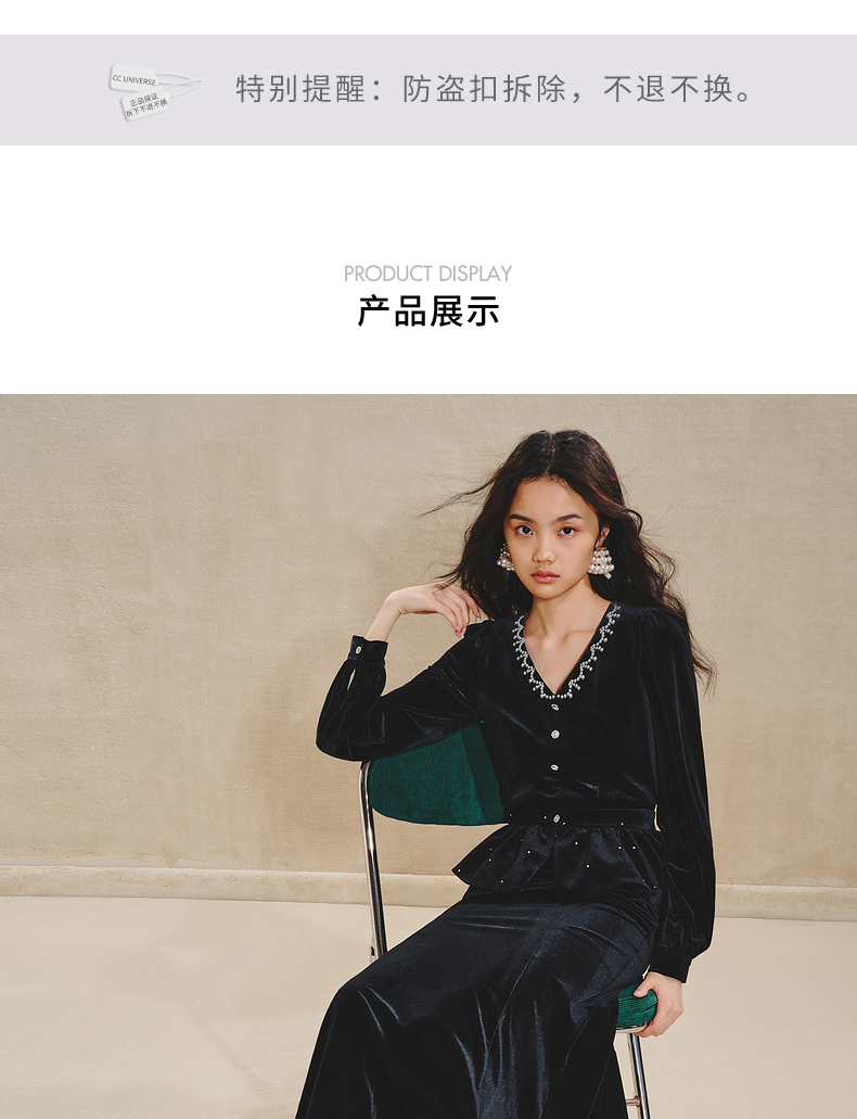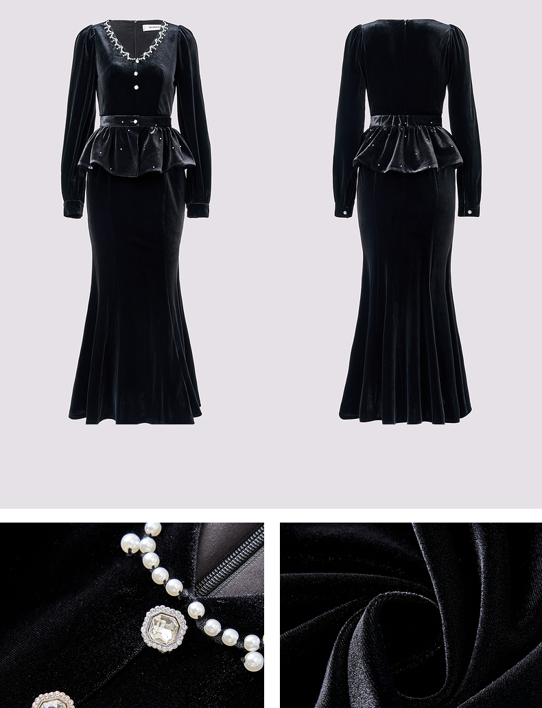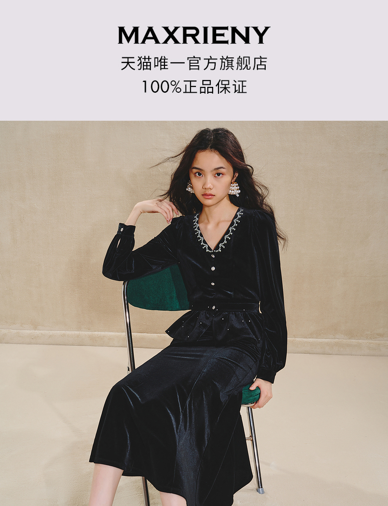 MAXRIENY浪漫复古v领丝绒连衣裙24冬款法式长裙小黑裙party小礼裙(货号:MS85DR516)