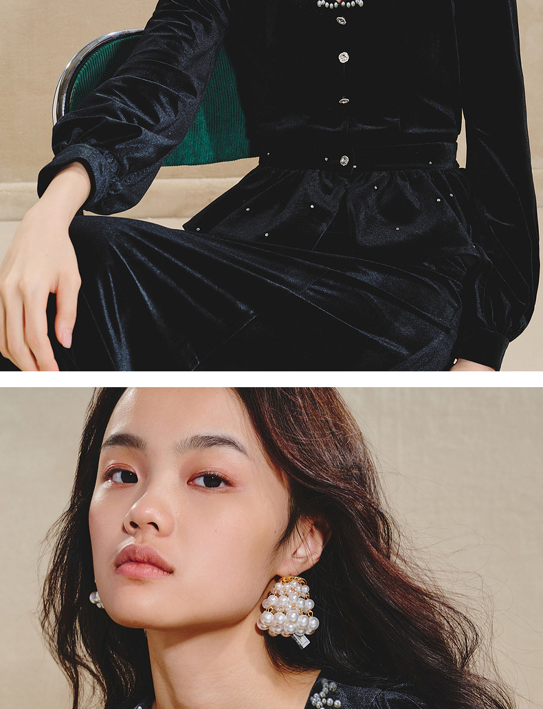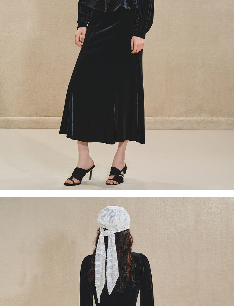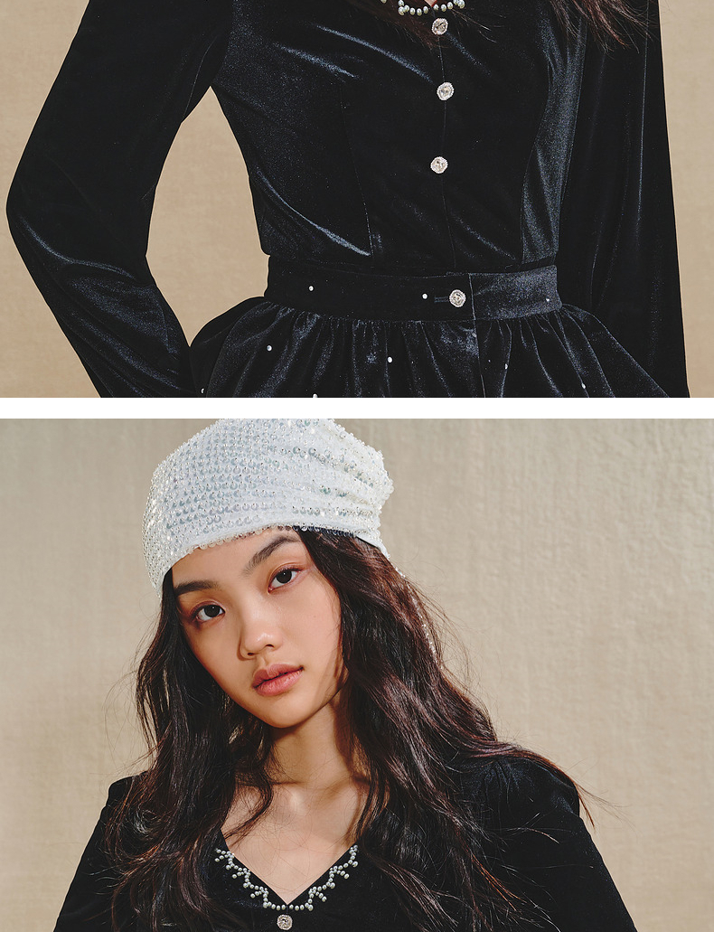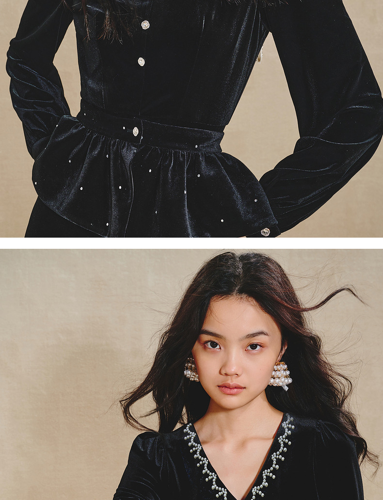 MAXRIENY浪漫复古v领丝绒连衣裙24冬款法式长裙小黑裙party小礼裙(货号:MS85DR516)