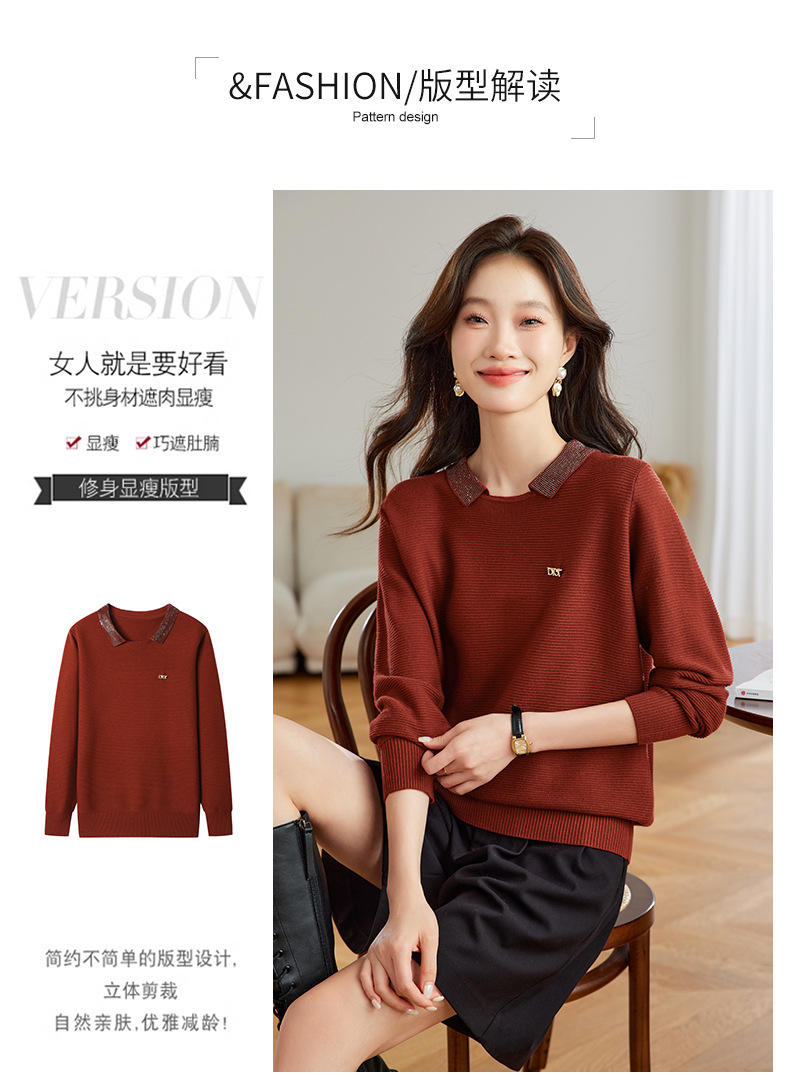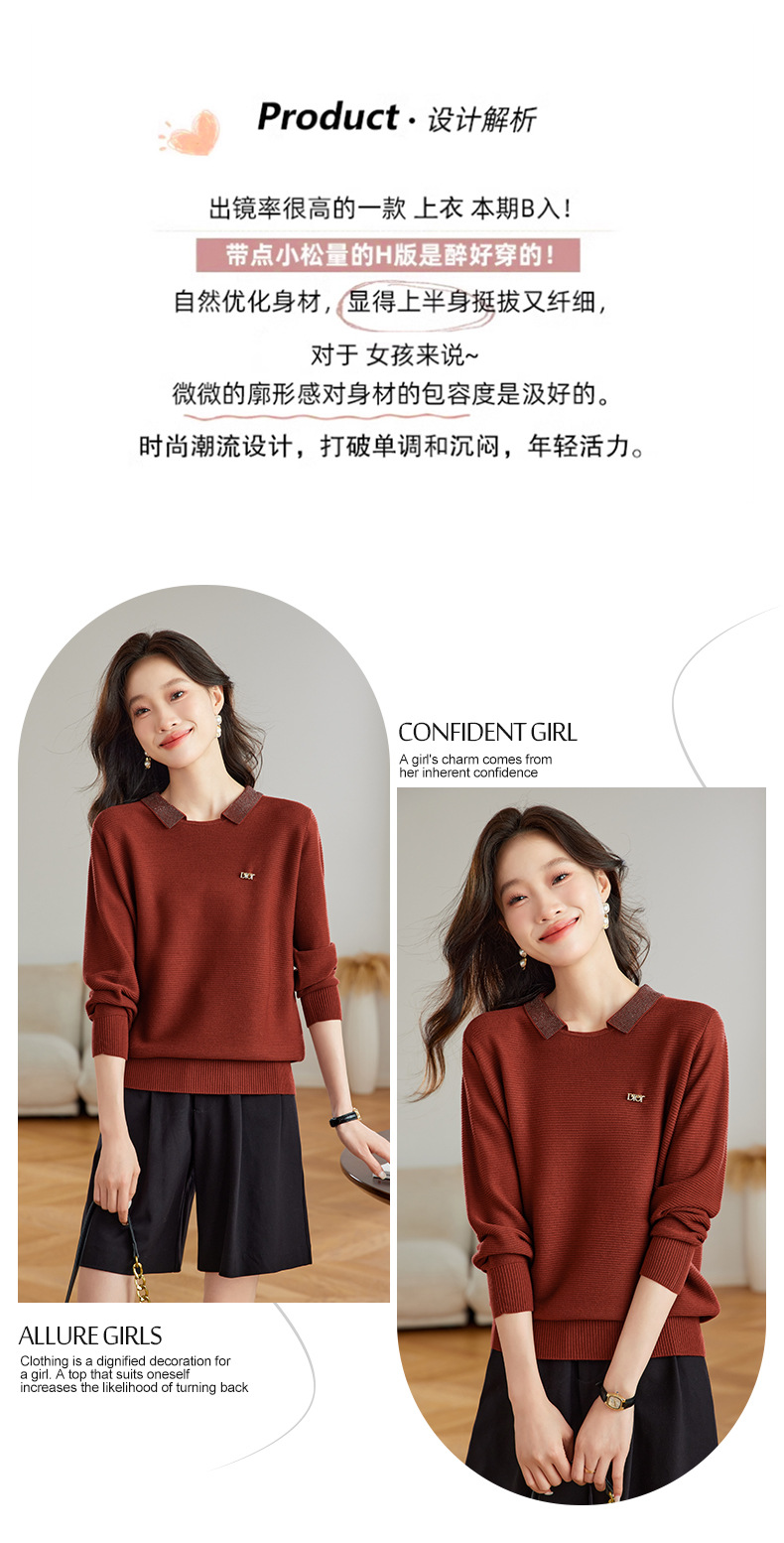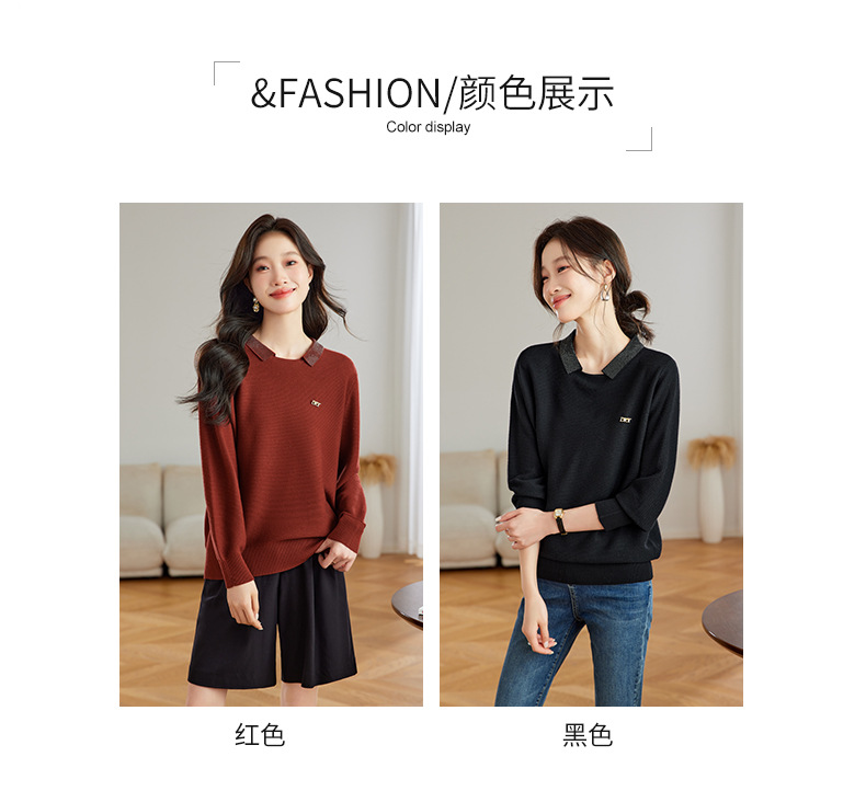 CC-JDS-890 polo翻领薄羊毛针织衫女春秋2024初秋爆款宽松毛衣女打底内搭上衣