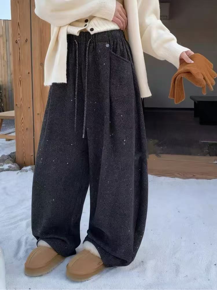 🔥🔥【2025爆款休闲裤】银河星空细闪~7581内里加绒休闲弯刀休闲裤-喜出