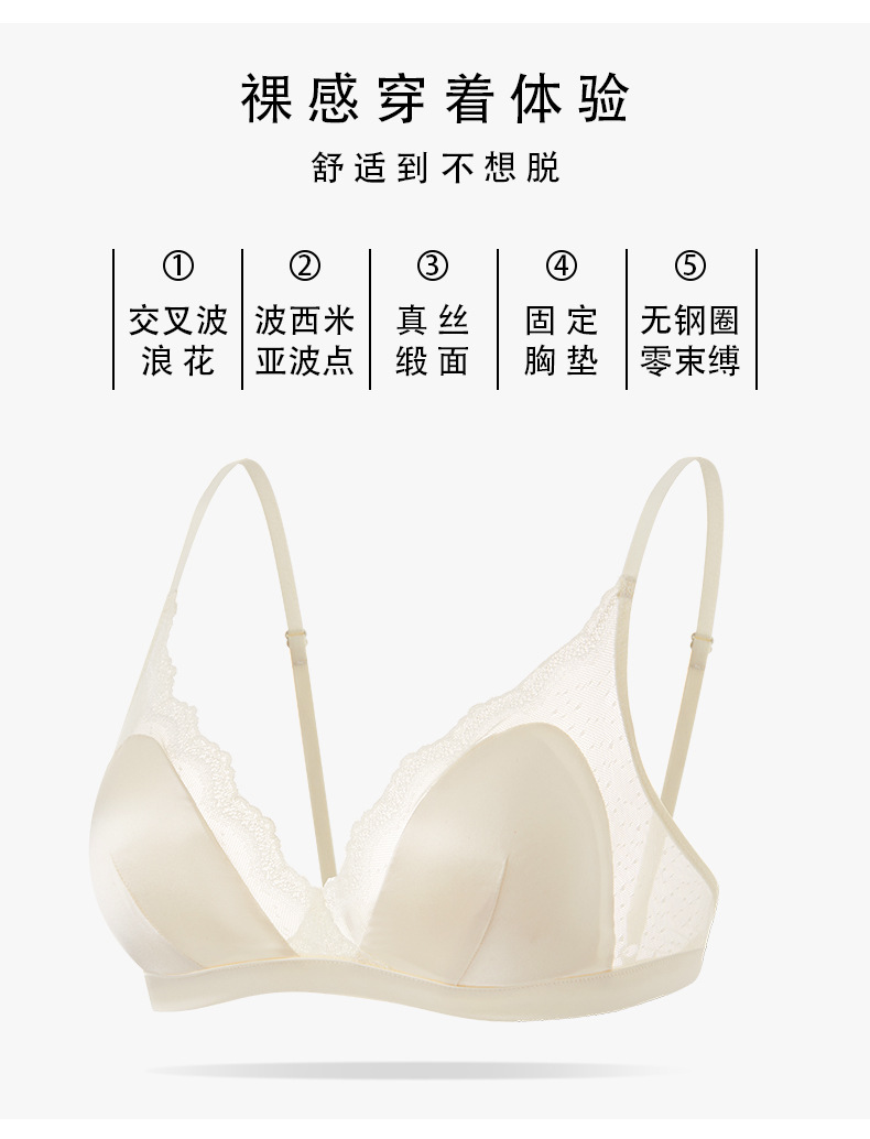 丁摩真丝缎面女士内衣 桑蚕丝超薄无钢圈法式三角杯文胸AL2S251