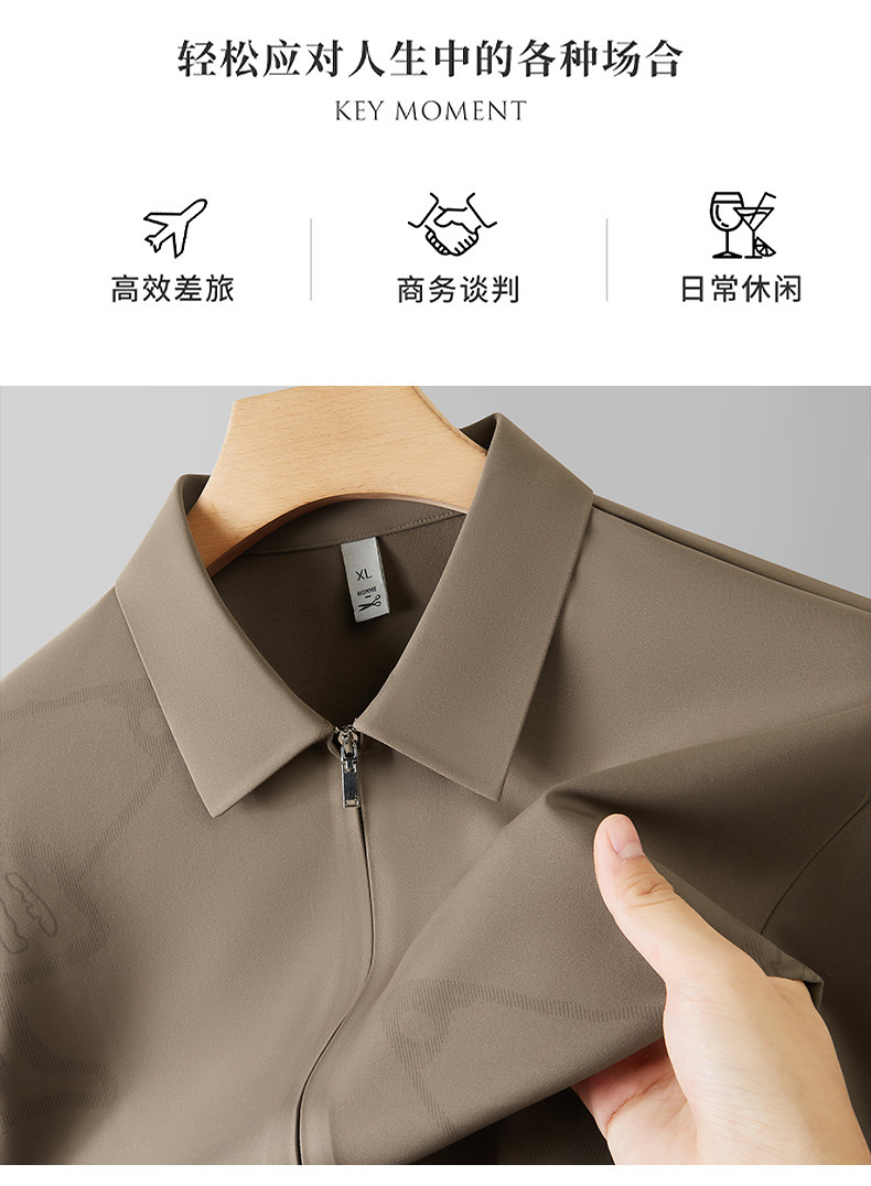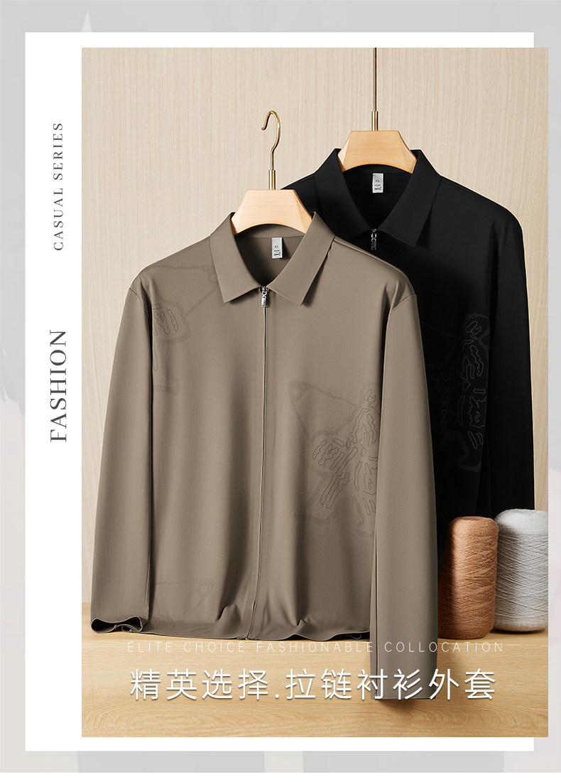【DDP】大依优型大码男装春季拉链款长袖衬衫商务休闲免烫长袖翻领T恤