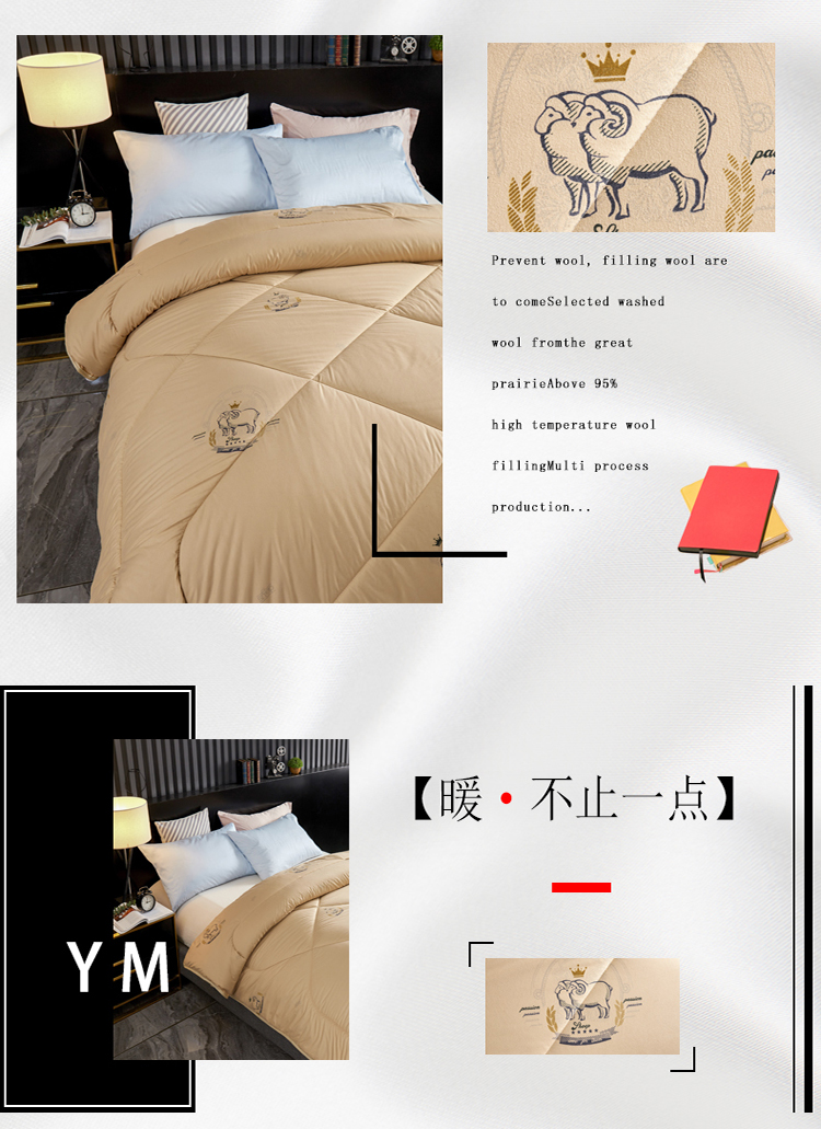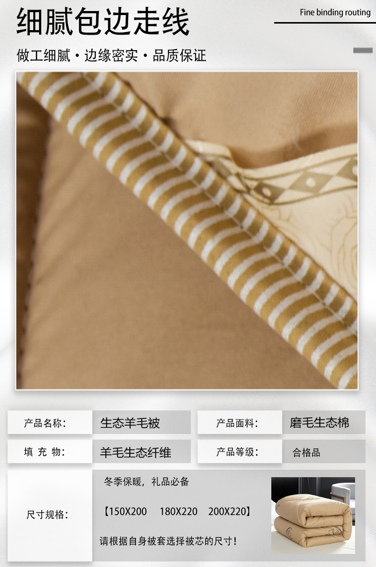 惠慈家居 生态羊毛被 磨毛生态棉面料 200-230cm柔软舒适透气羊毛生态纤维被子HC--1YM2043