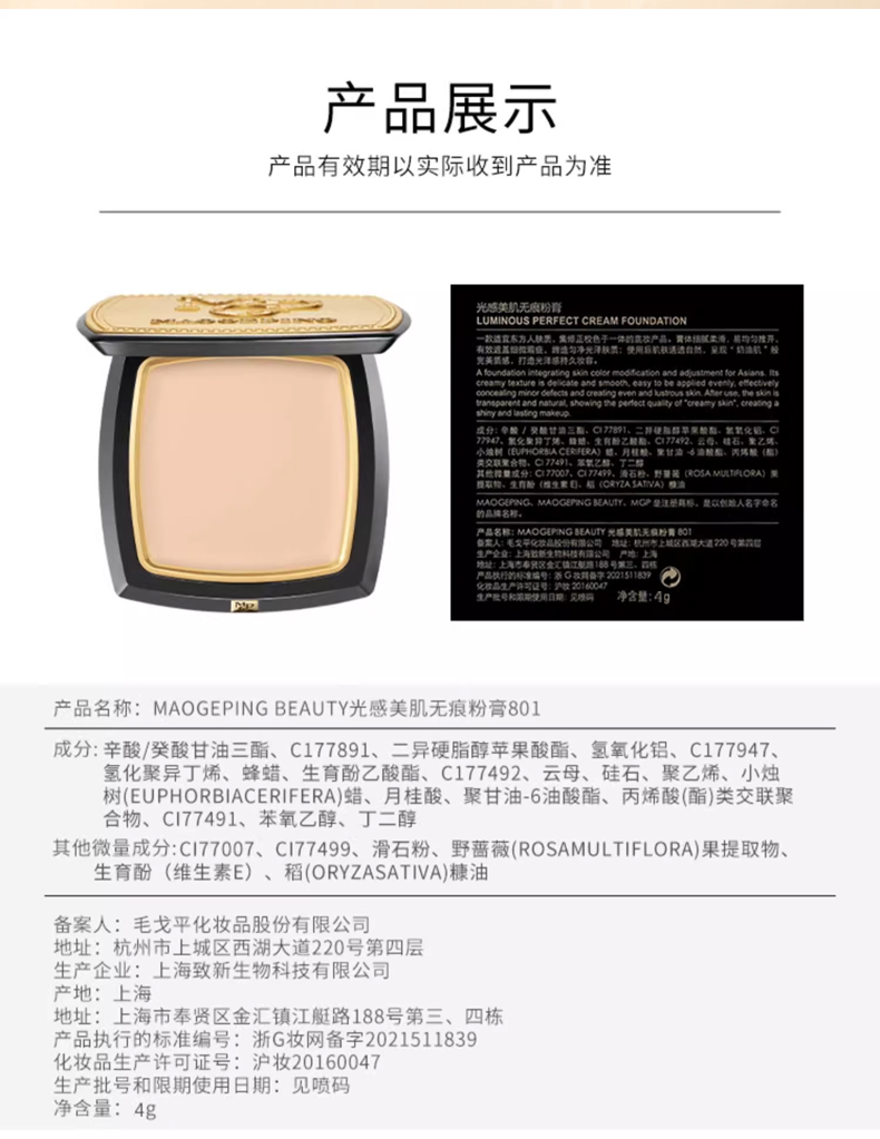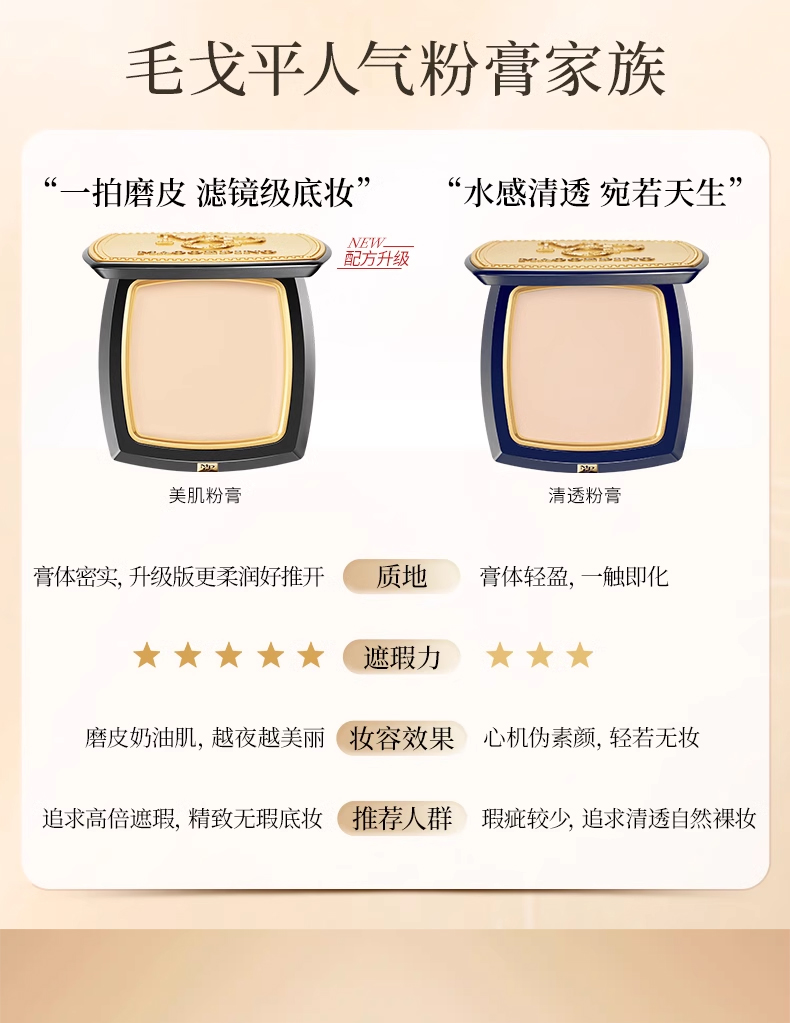 新款 磨皮柔光滤镜!MAOGEPING毛戈平 光感美肌清透无痕粉膏持久不易脱妆 大师级彩妆 送粉扑