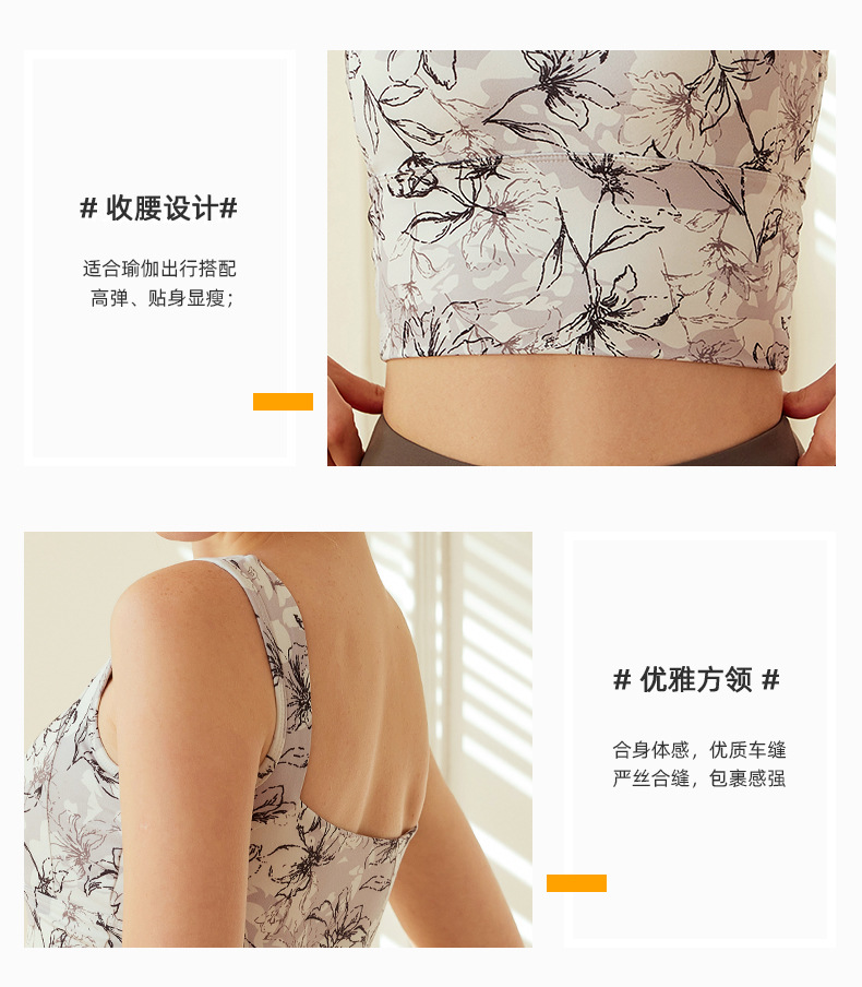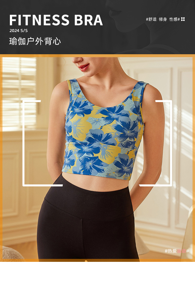跃牌【洛水之神系列】桃花朵朵瑜伽服2025新款高级感瑜伽健身运动上衣背心固定杯6607