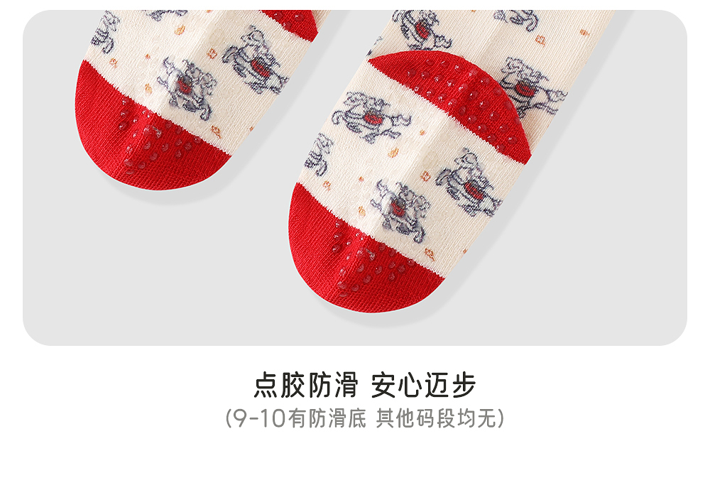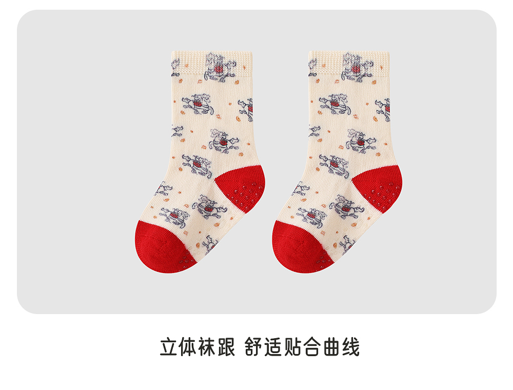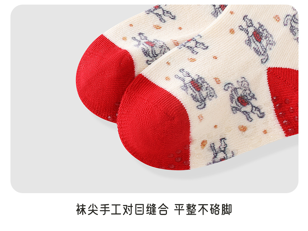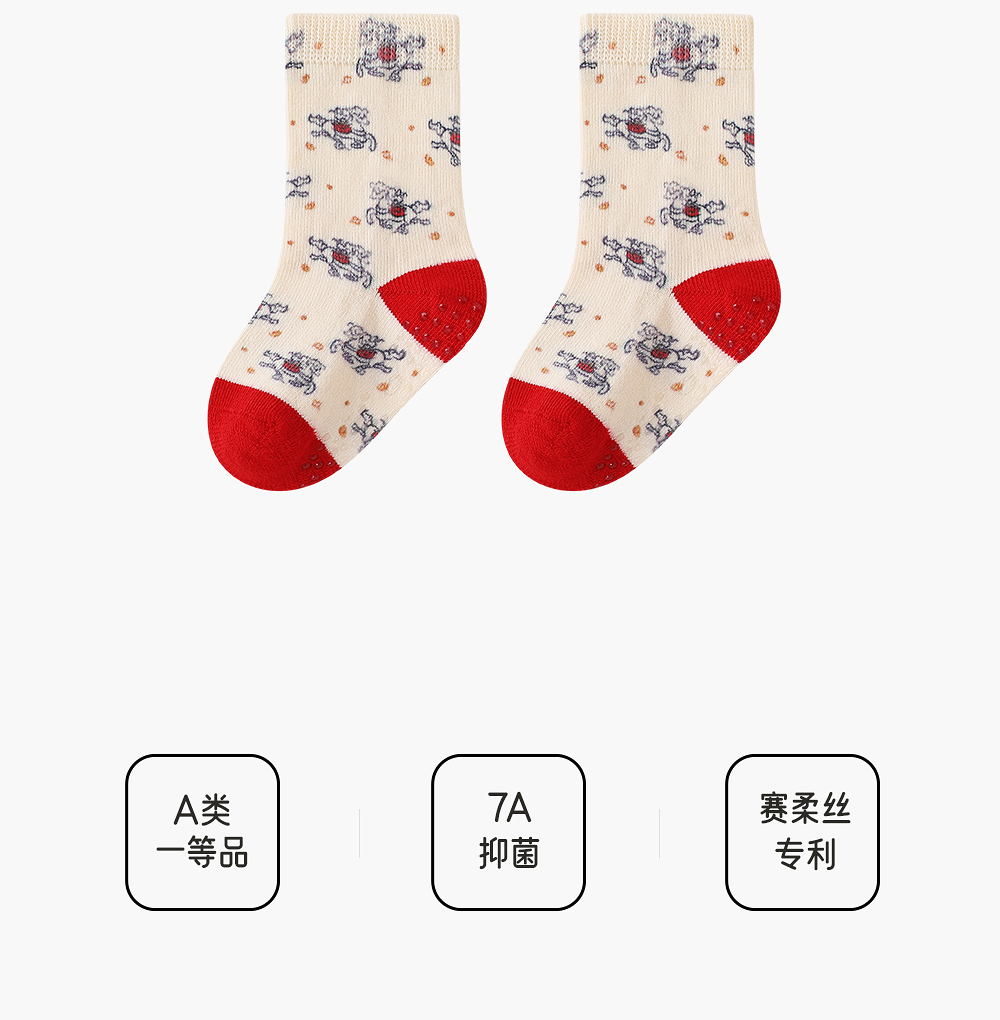 【商场同款】英氏婴儿袜子赛柔丝7A抗菌儿童袜子喜庆新年袜新款