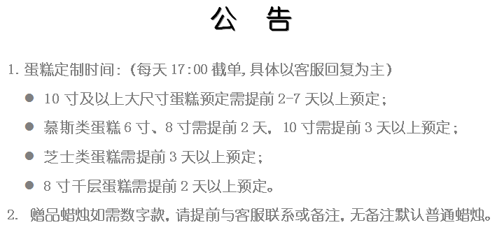 - 主营:个性蛋糕定制,完全零添加,只用天然乳脂奶油制作