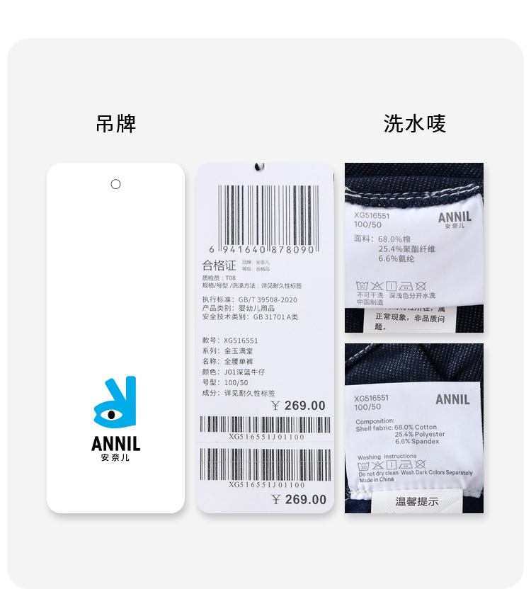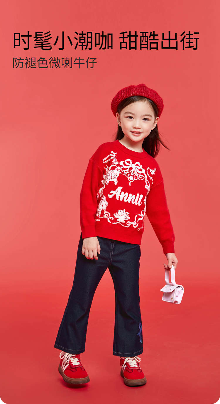 女童牛仔单裤春季新款安奈儿童装实体店同款XG516551
