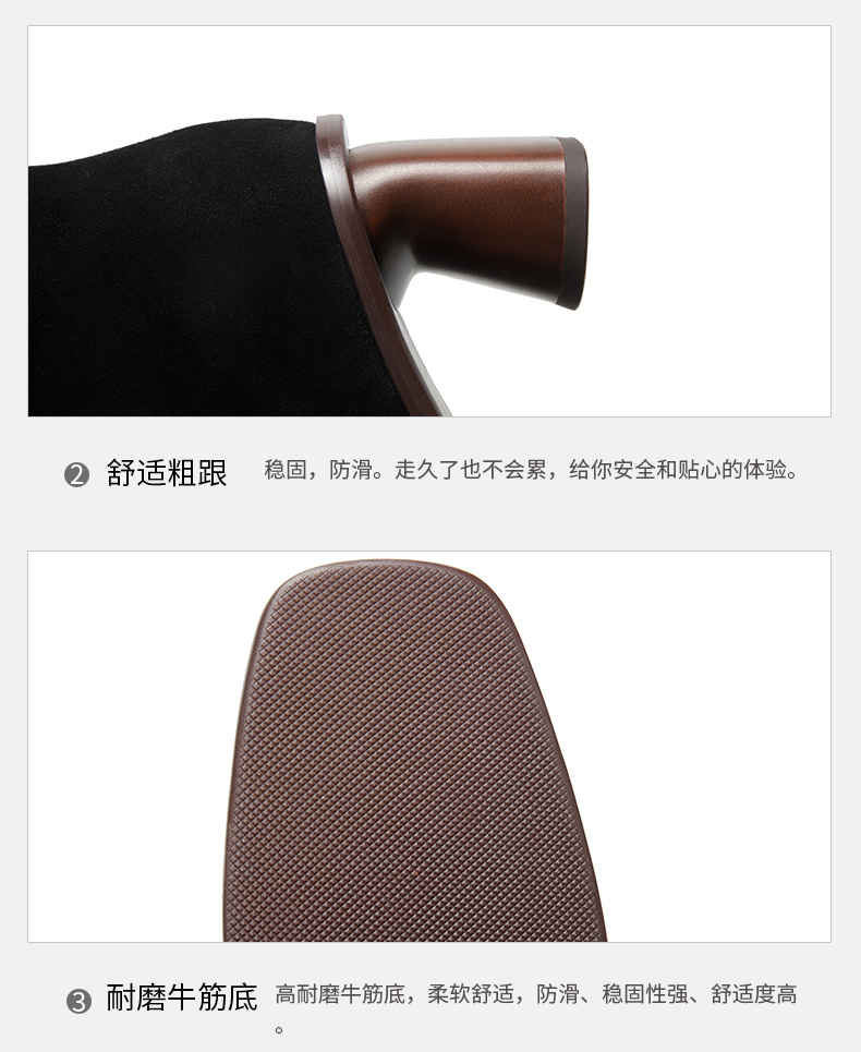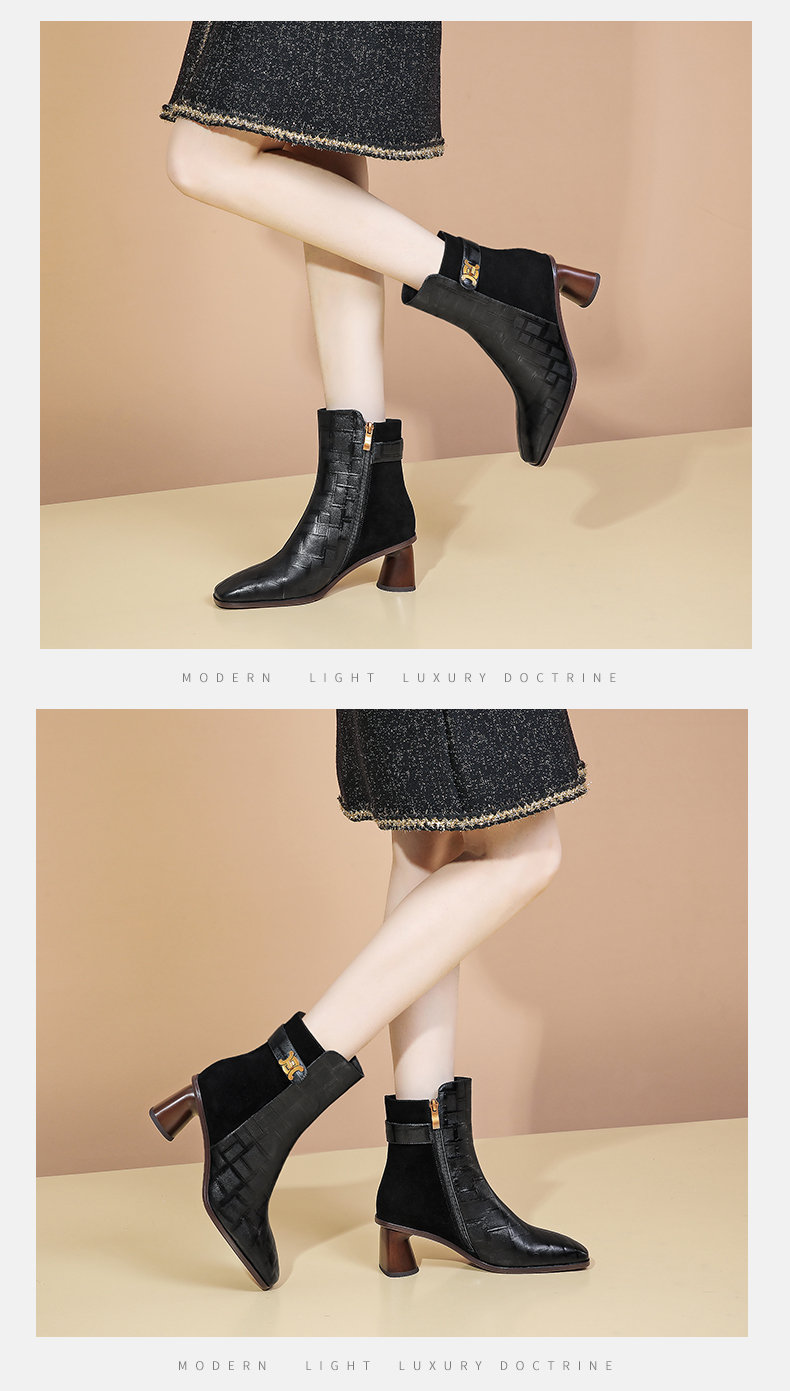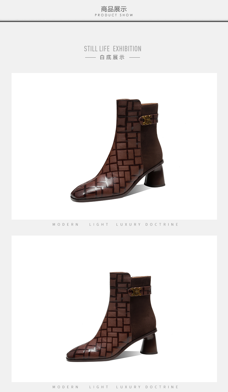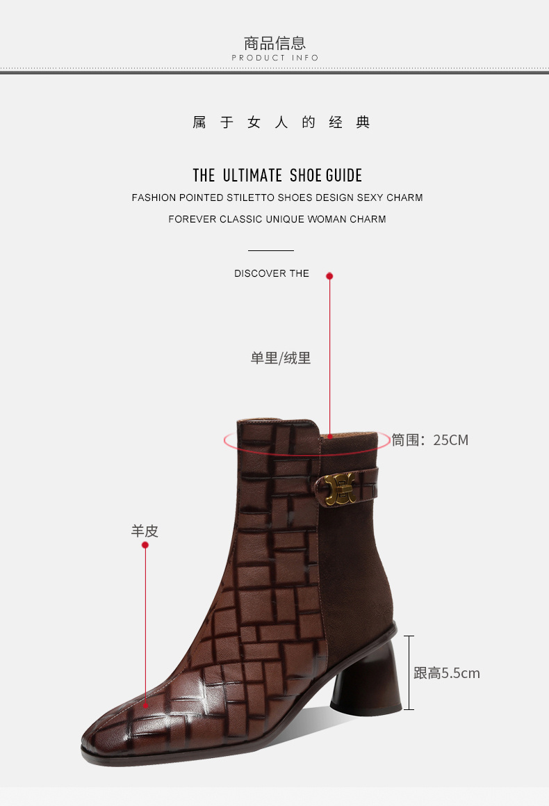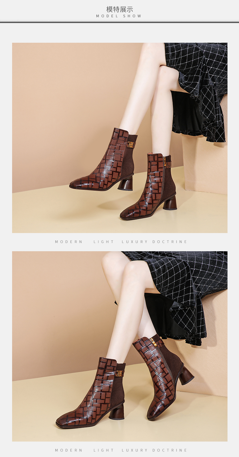 秋冬季高跟鞋,新款方头拼色显瘦靴粗跟短靴 DPJ-8653