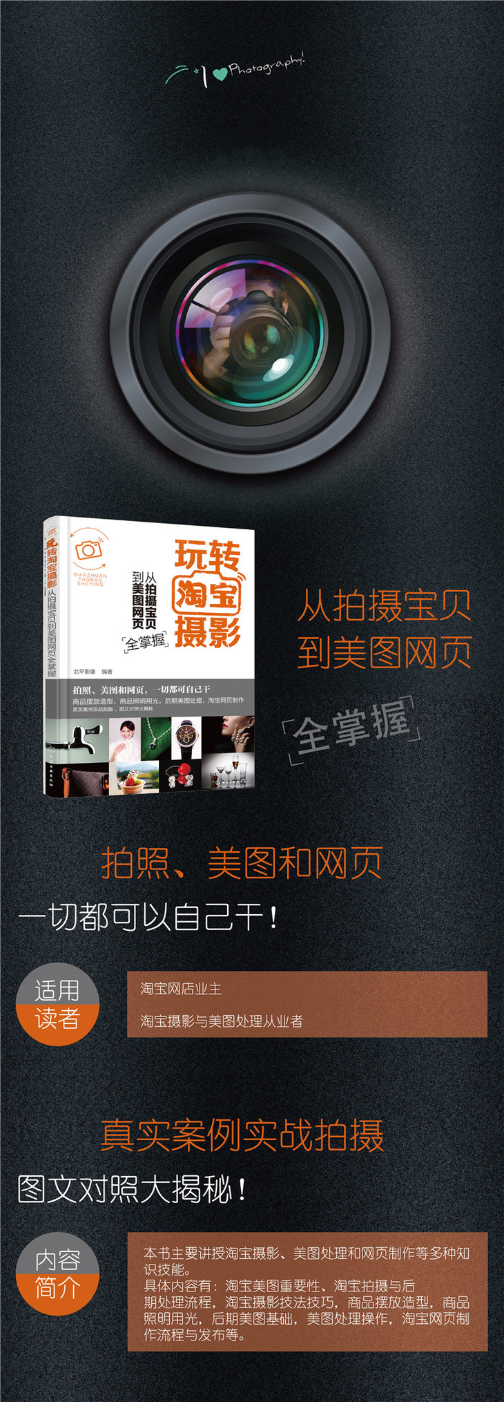 本书采用图文对照大揭秘的方式,选用数百幅漂亮的商品样照和近千条业内技巧要诀,讲解服装、鞋包、酒水、美食、糕点、化妆品、首饰、钟表、数码家电和日用品等商品的实战拍摄,真实案例、内容全面、重点明确、前后关联、图文结合,具有好学易懂和精炼实用的特点。本书是*网店业主创业经营的参考书,也是*摄影和美图处理的工具书,还是*网店网页制作发布的资料书。