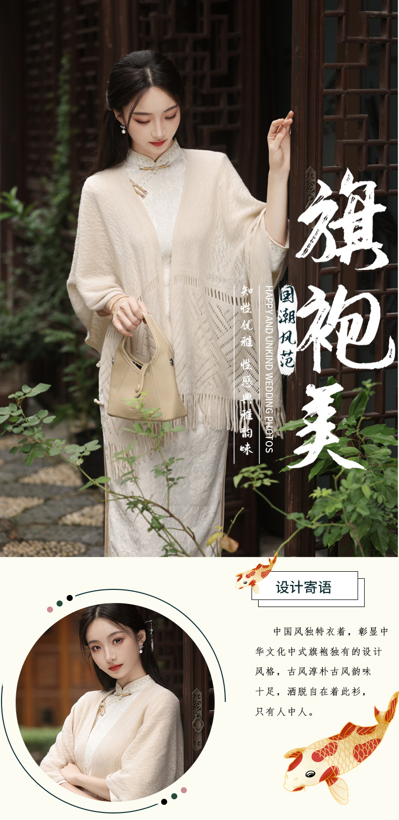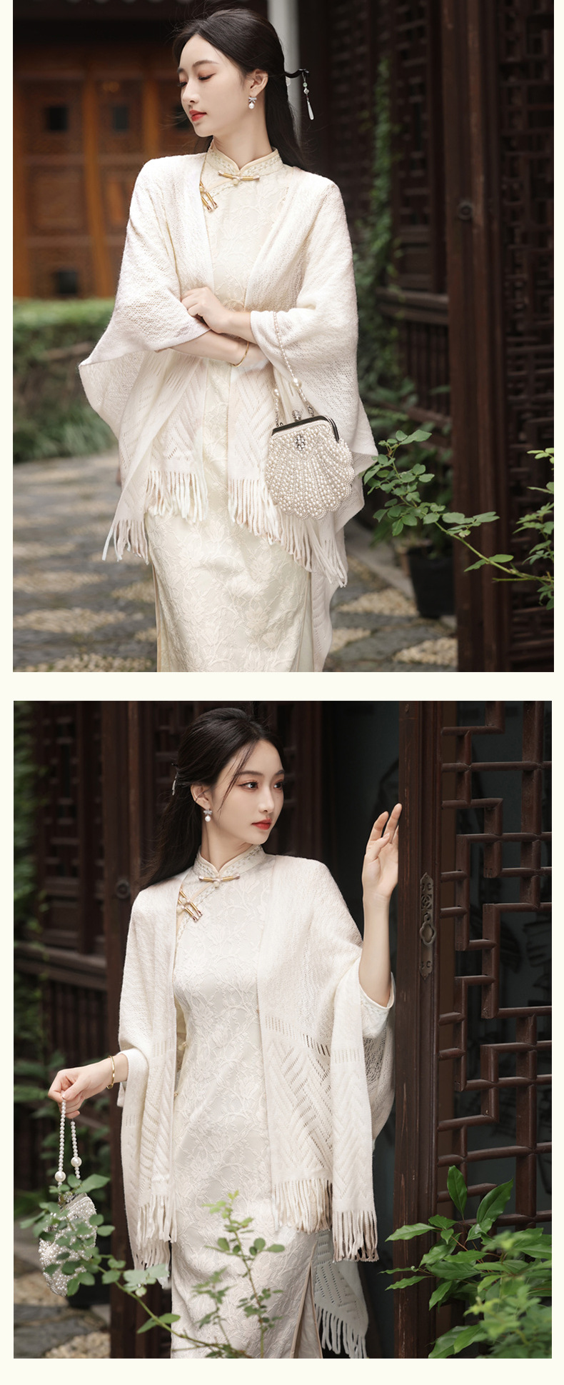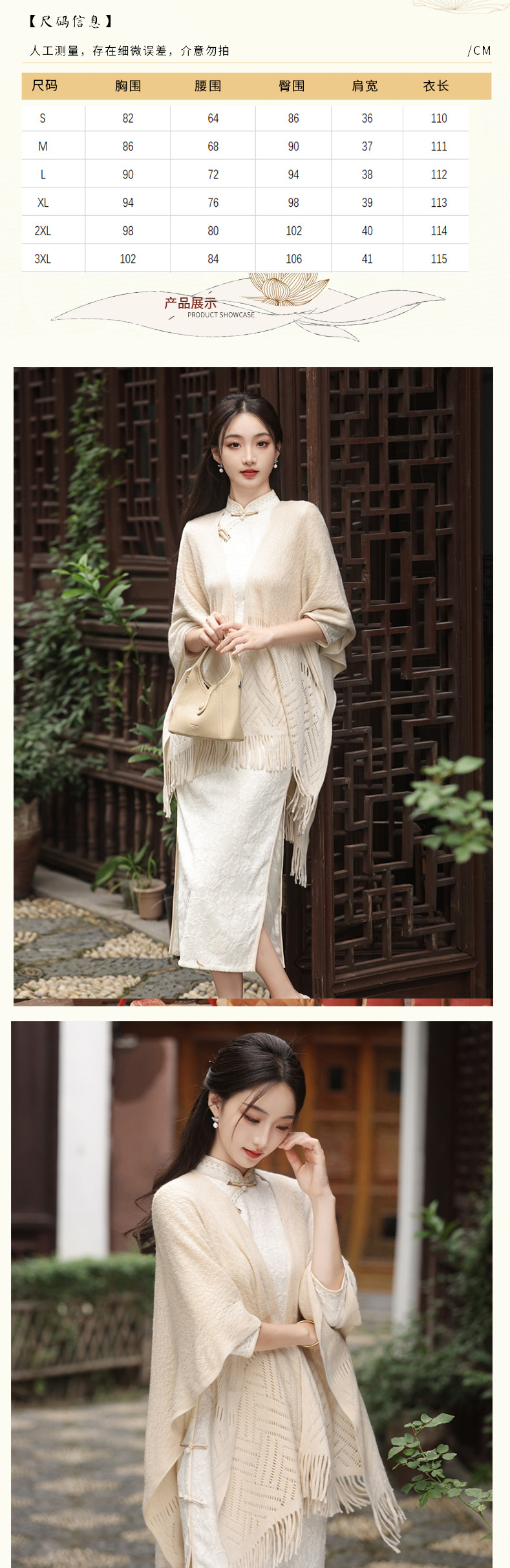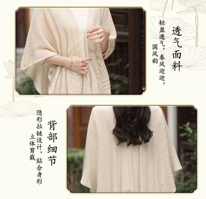 新款旗袍外搭,披肩文艺复古百搭纯色镂空披肩SJT393