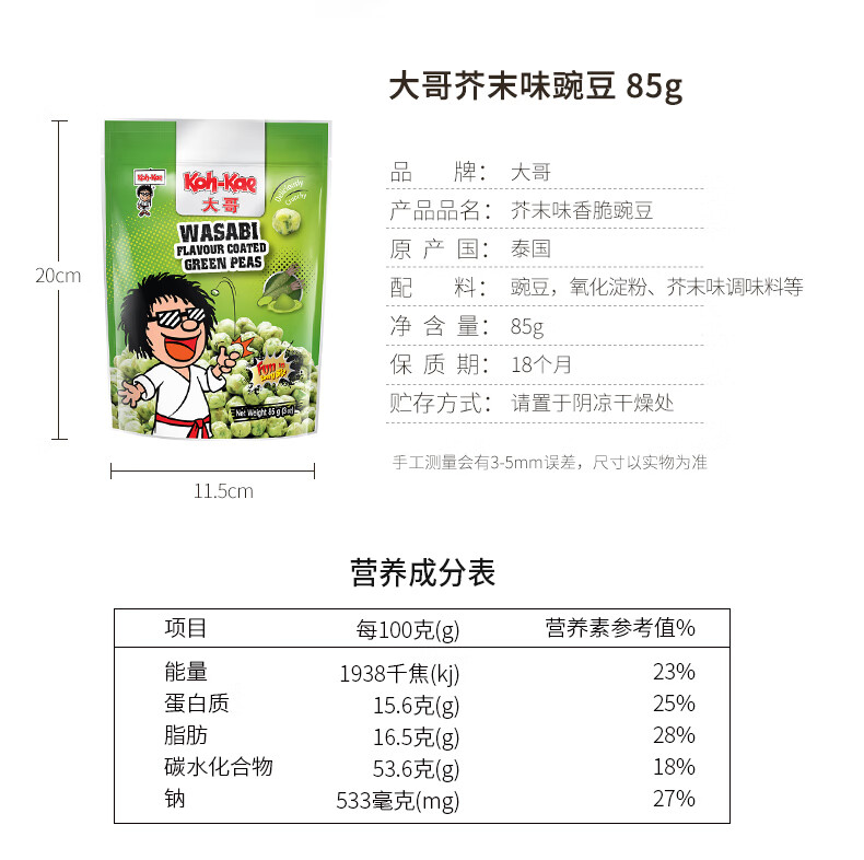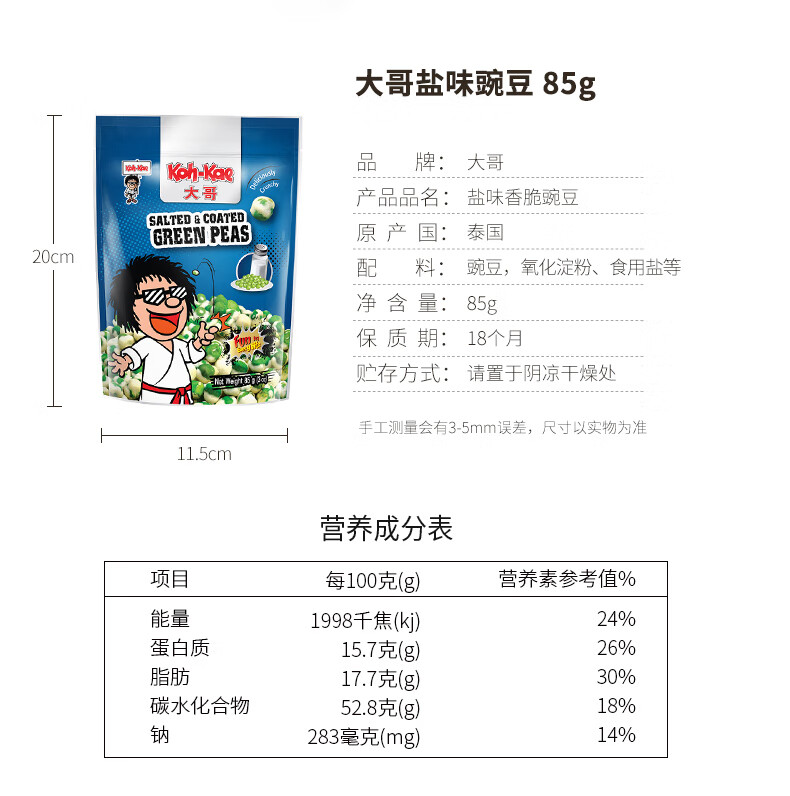 大哥盐味芥末味豌豆85g 圆润饱满诱人清香 059302/059303