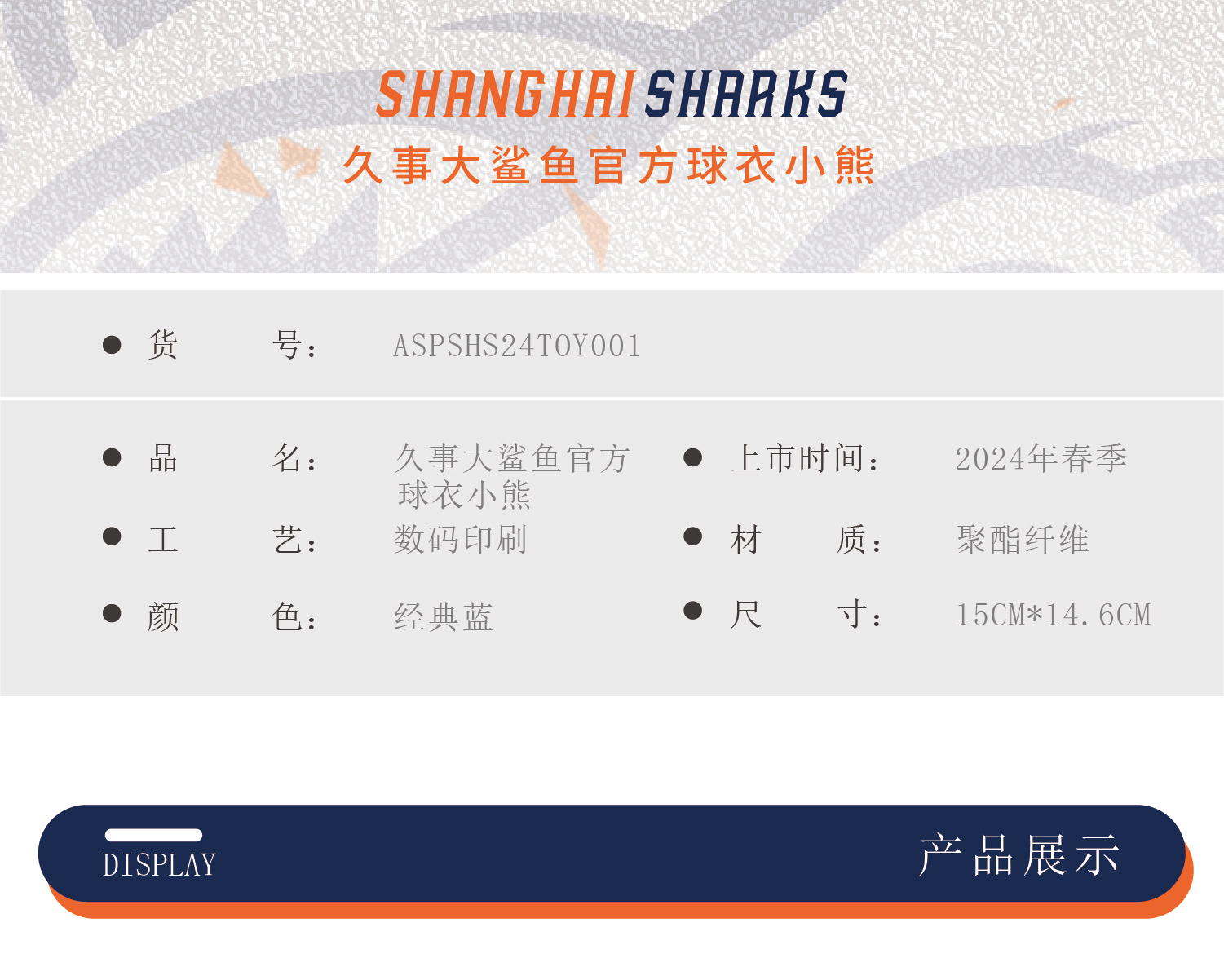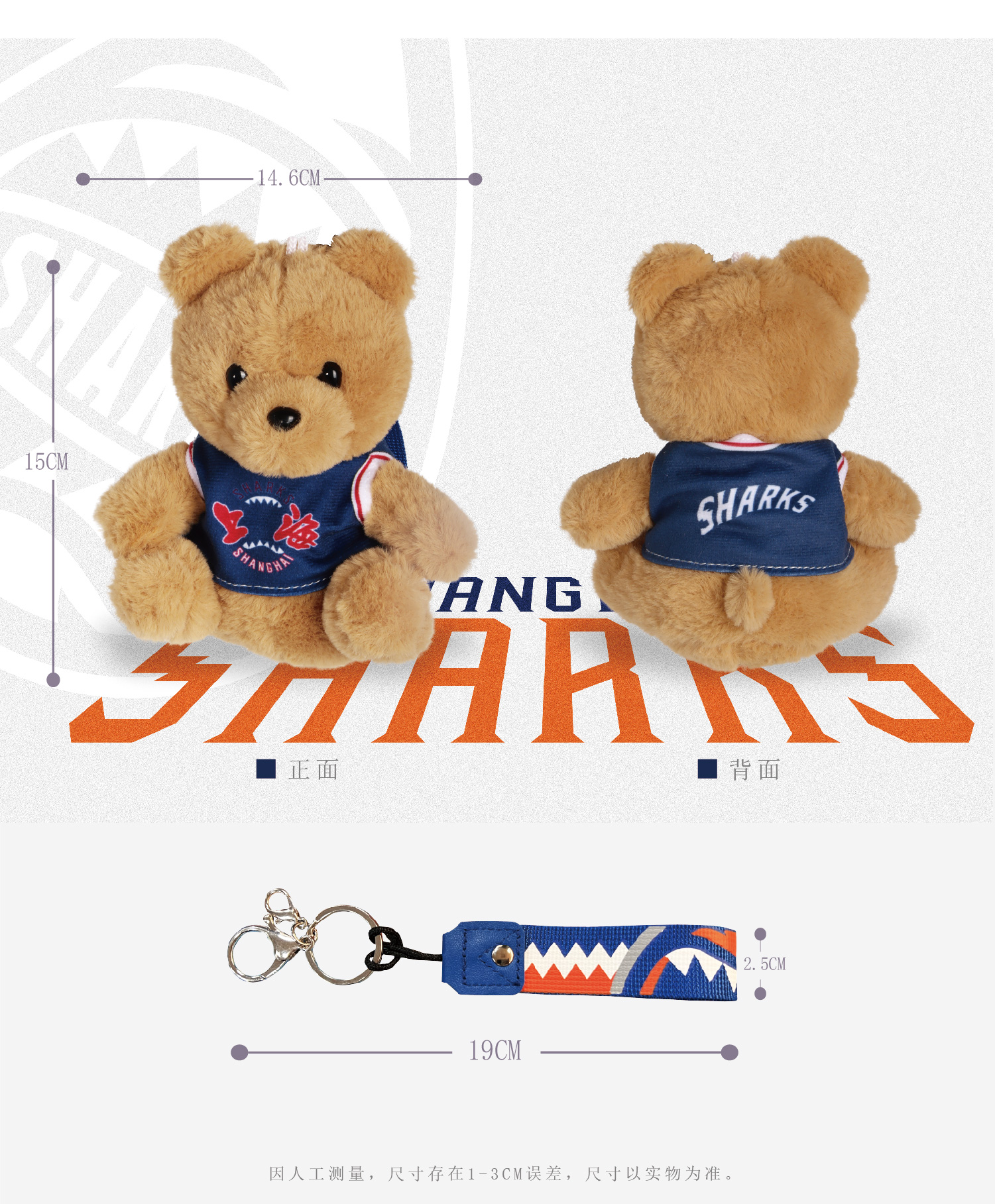 上海大鲨鱼俱乐部官方商品 | 大鲨鱼球衣小熊毛绒玩偶挂件周边