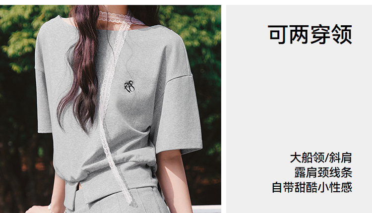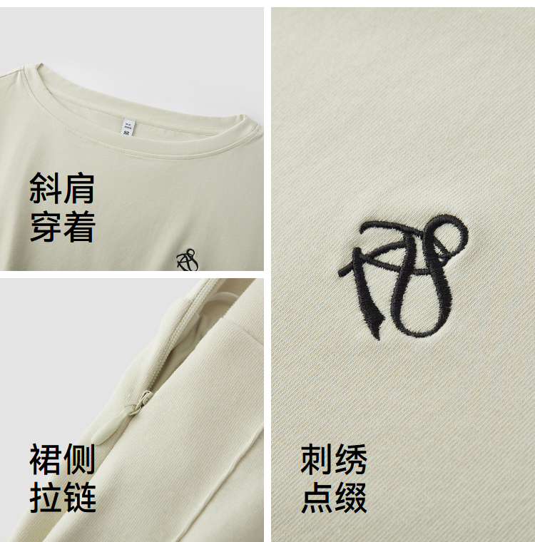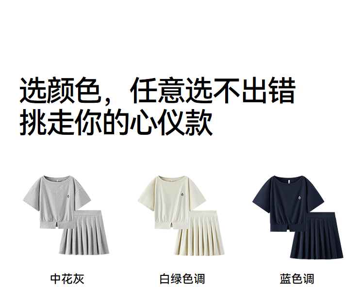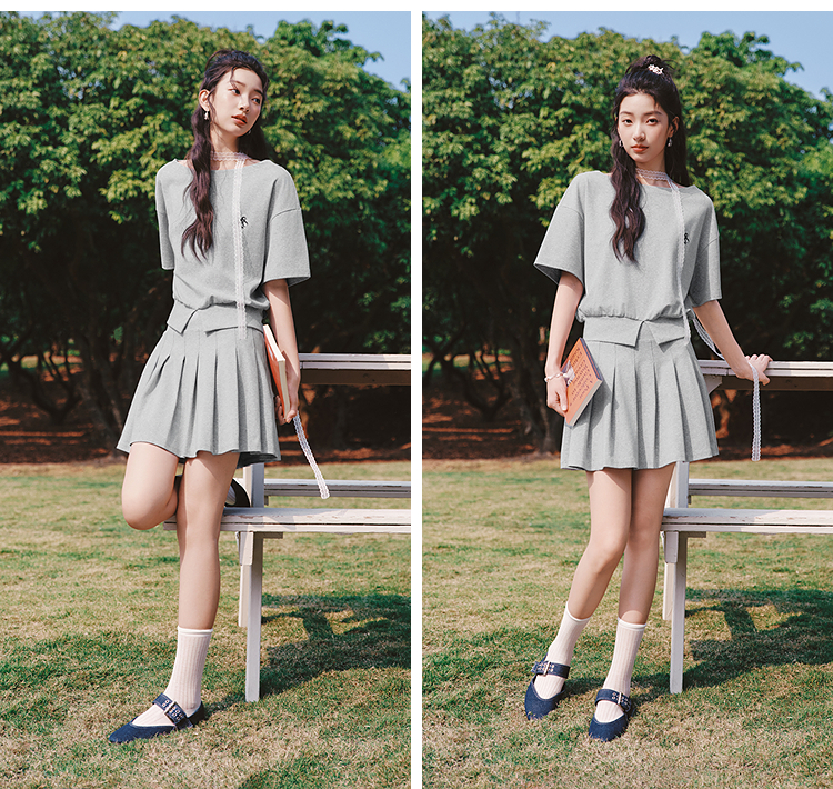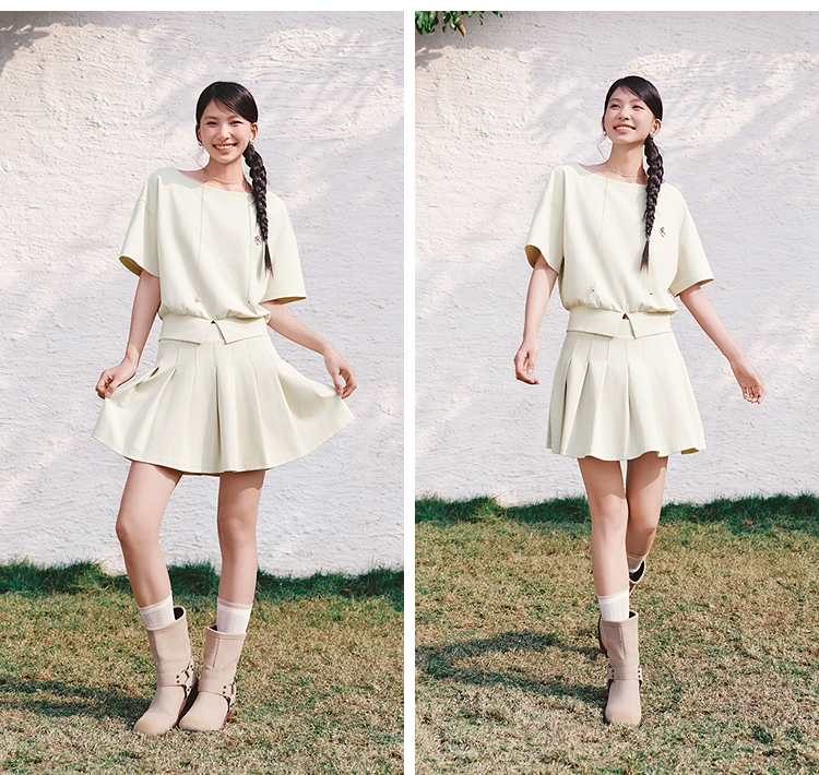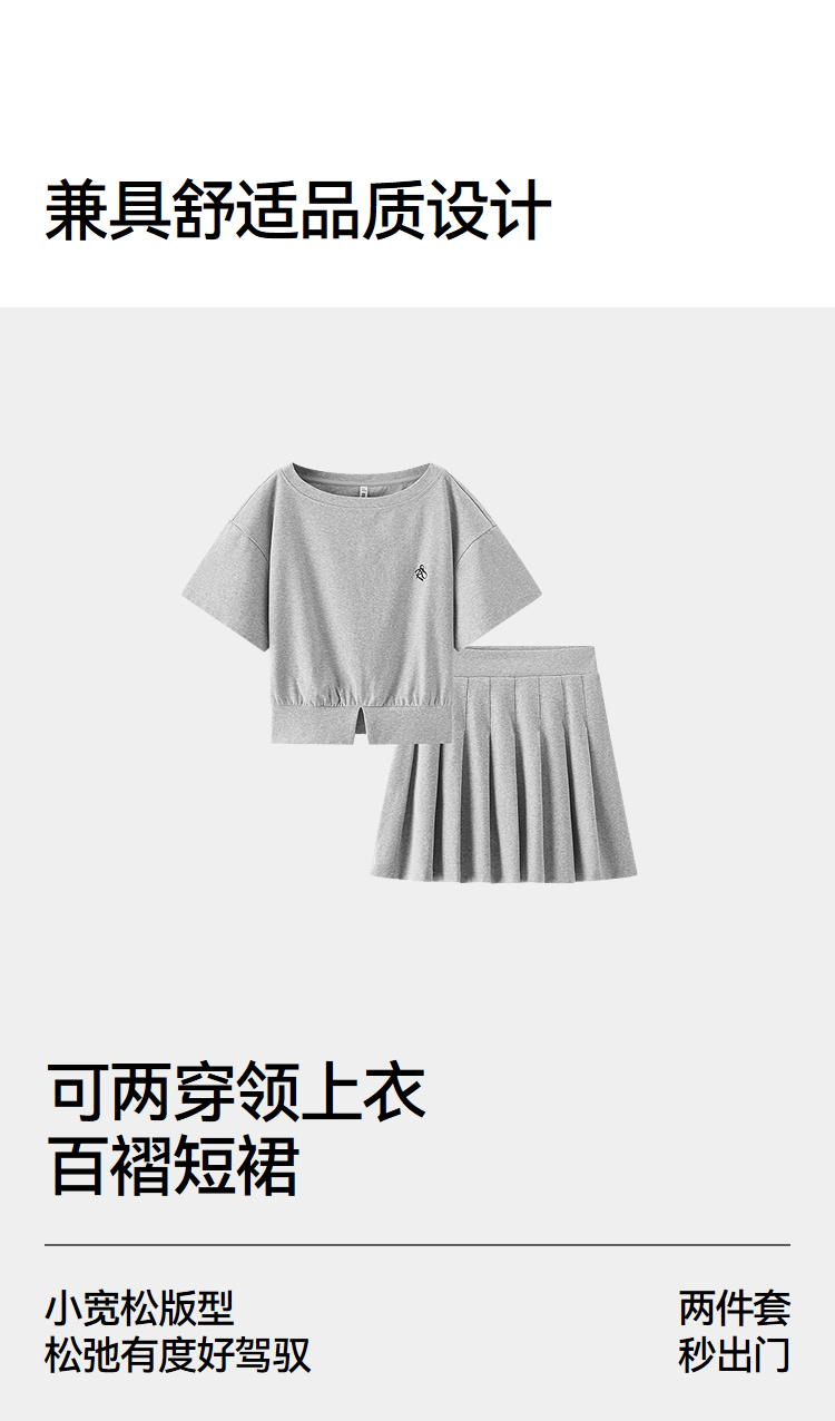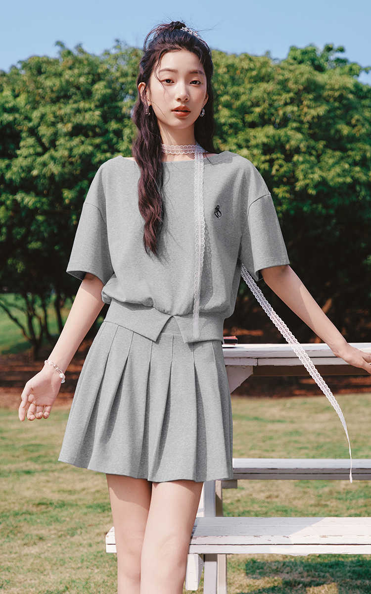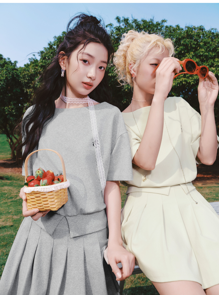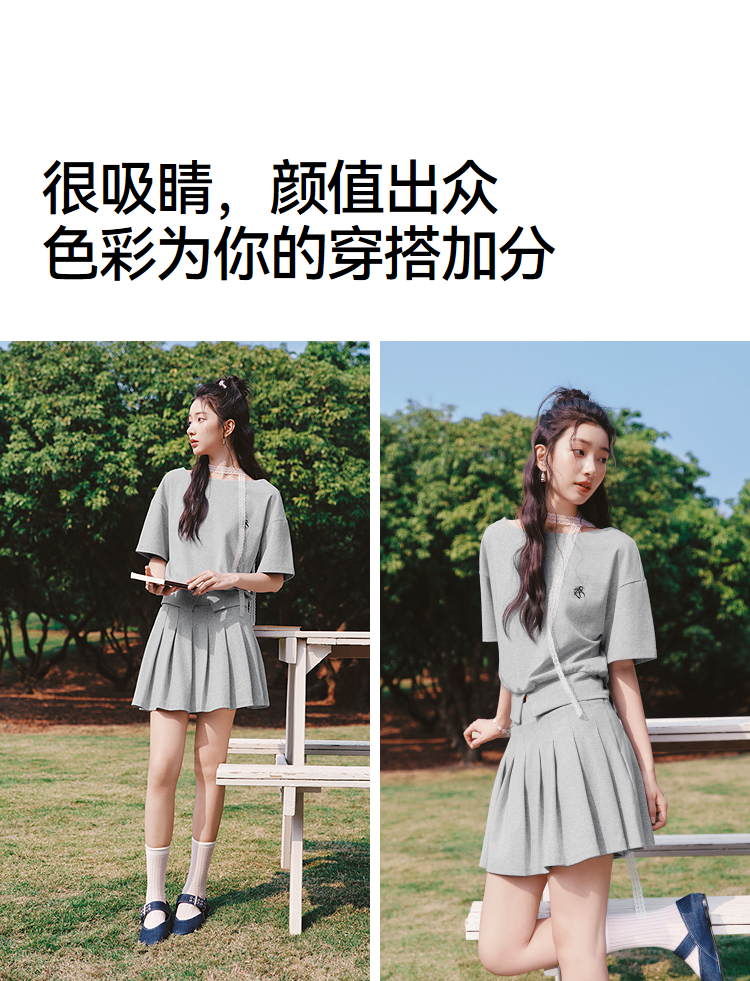 森马套装女夏季短款百褶裙斜肩开叉上衣刺绣2026新款小性感两件套