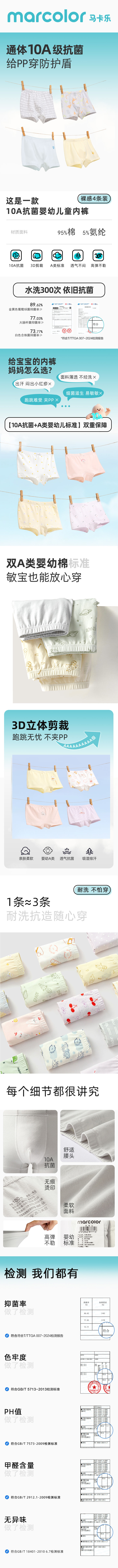 【马卡乐】10A抗菌95棉A类春夏男童女童平角内裤抗菌不易起球