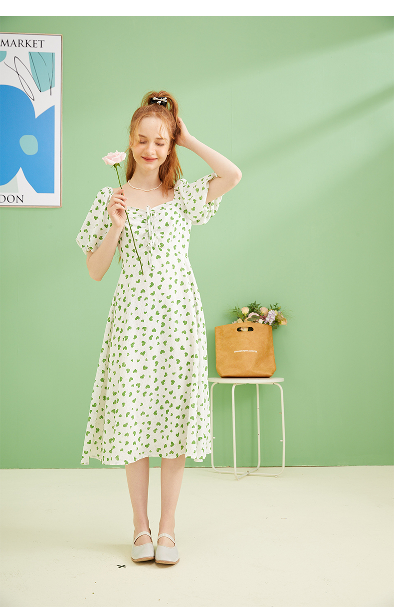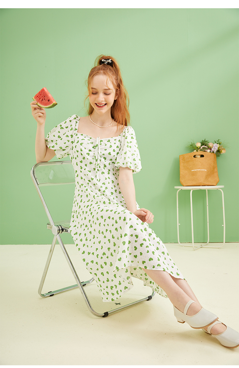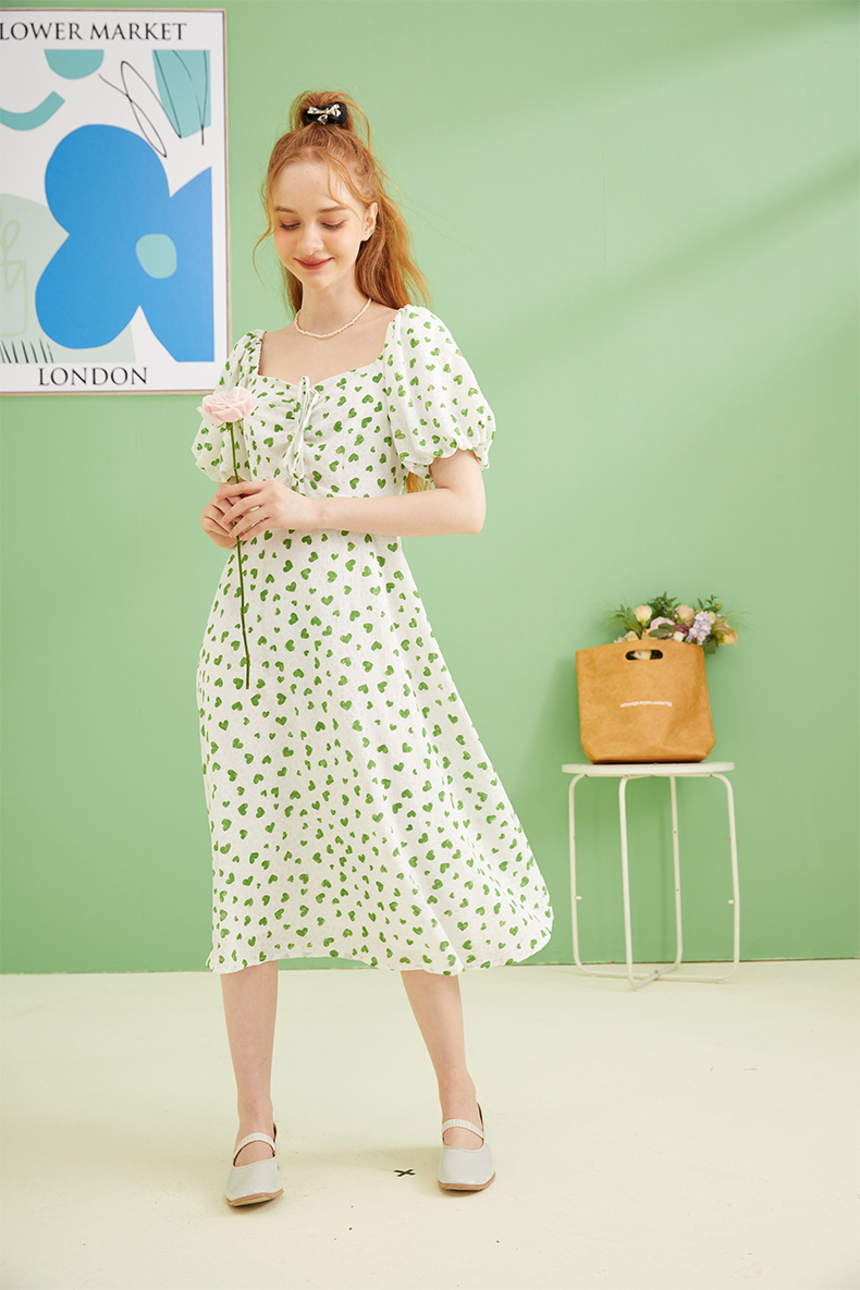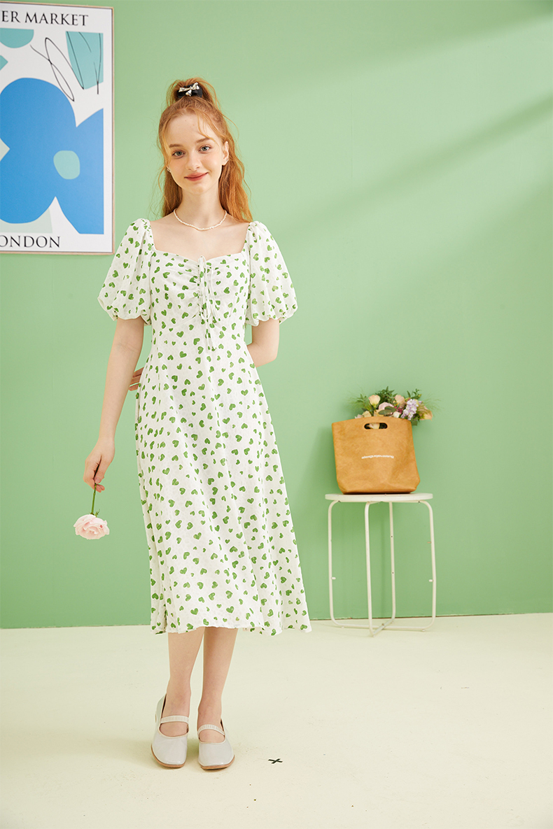 女装爱心碎花泡泡袖连衣裙Q3221522