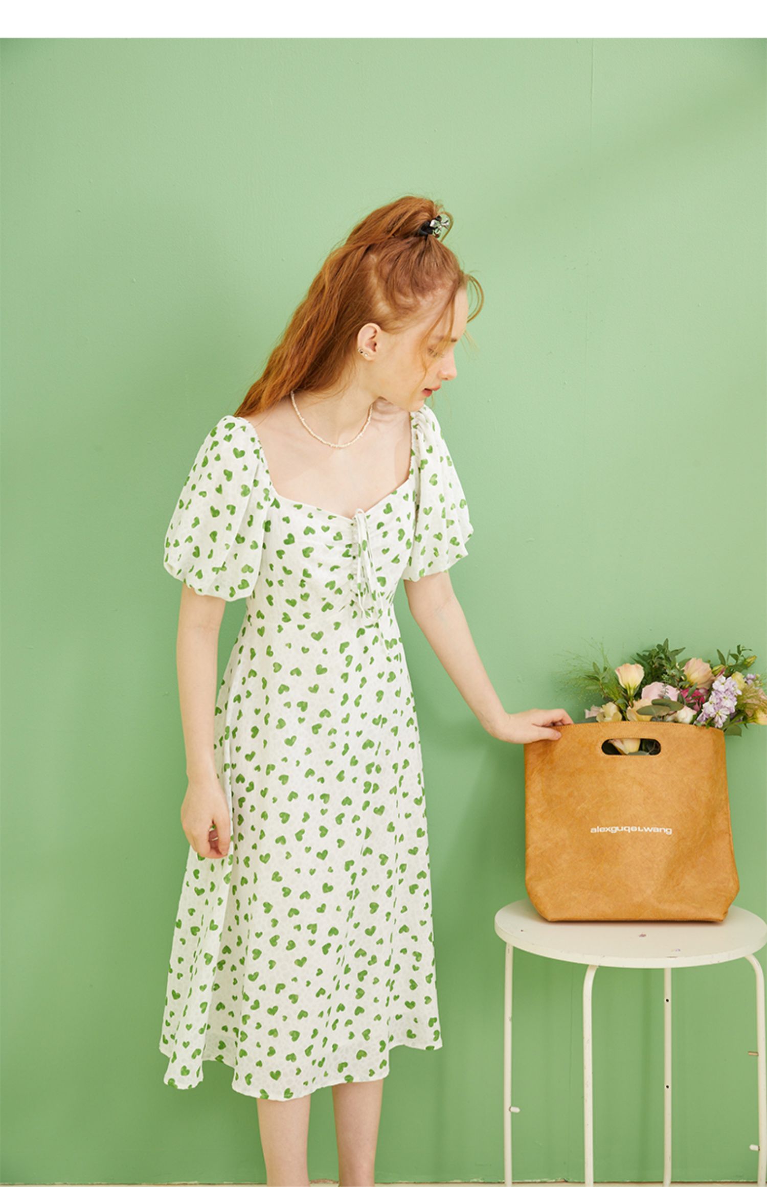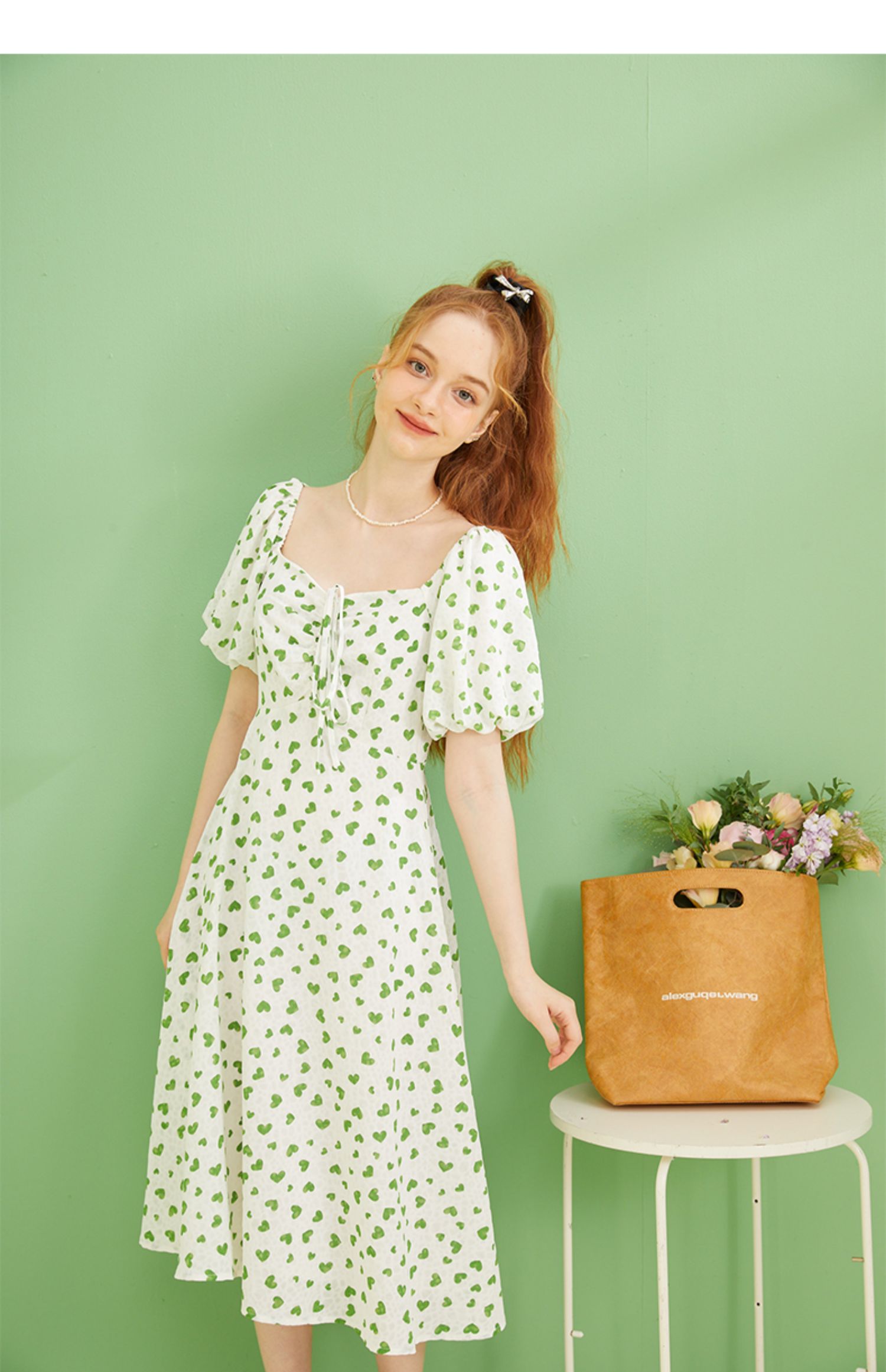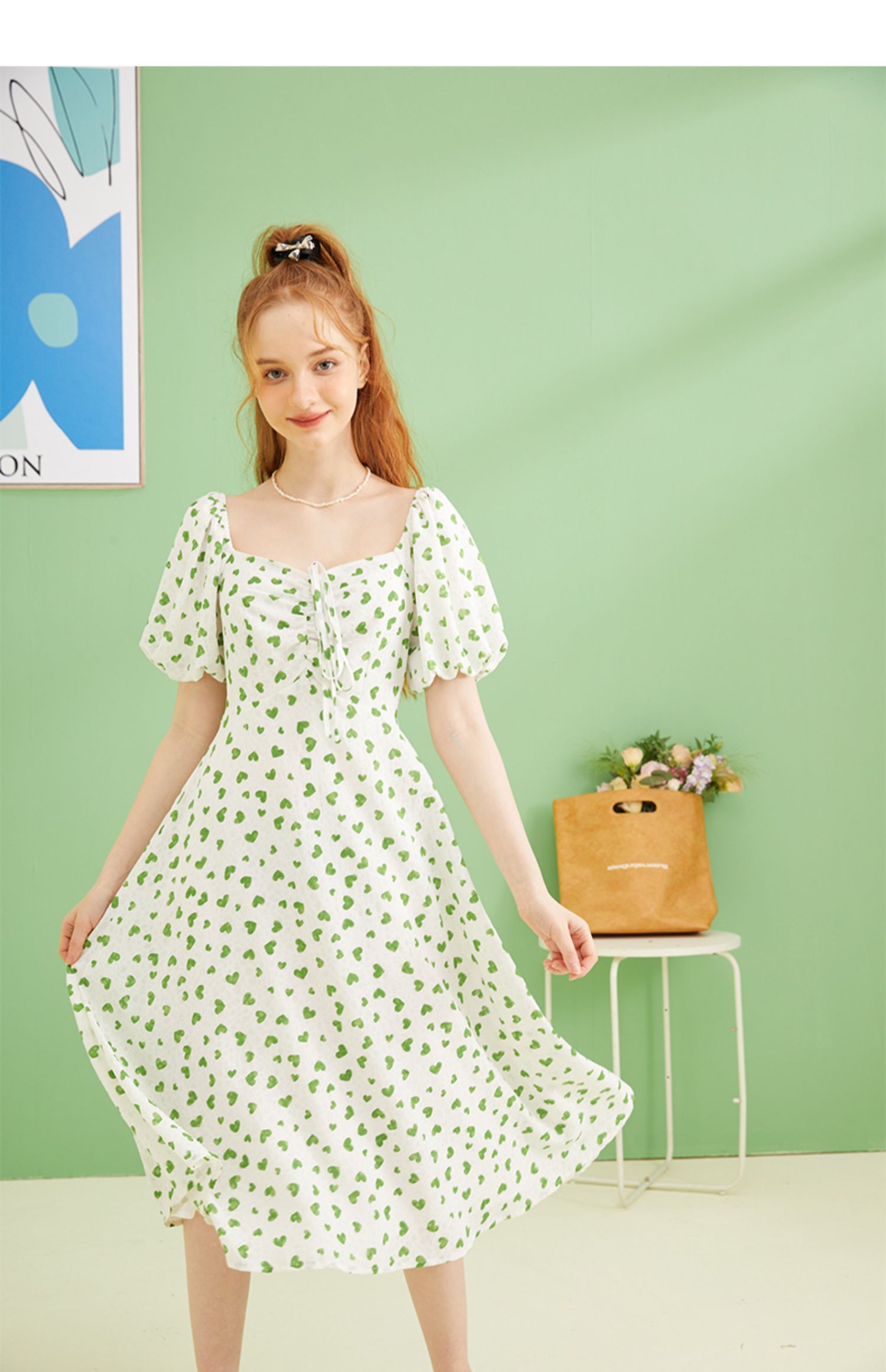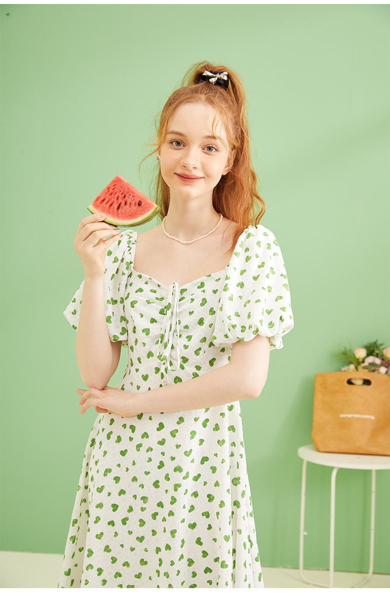 女装爱心碎花泡泡袖连衣裙Q3221522
