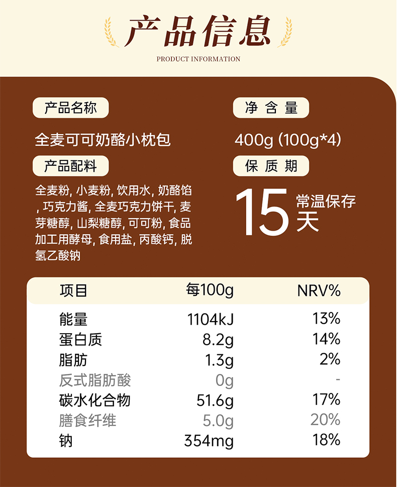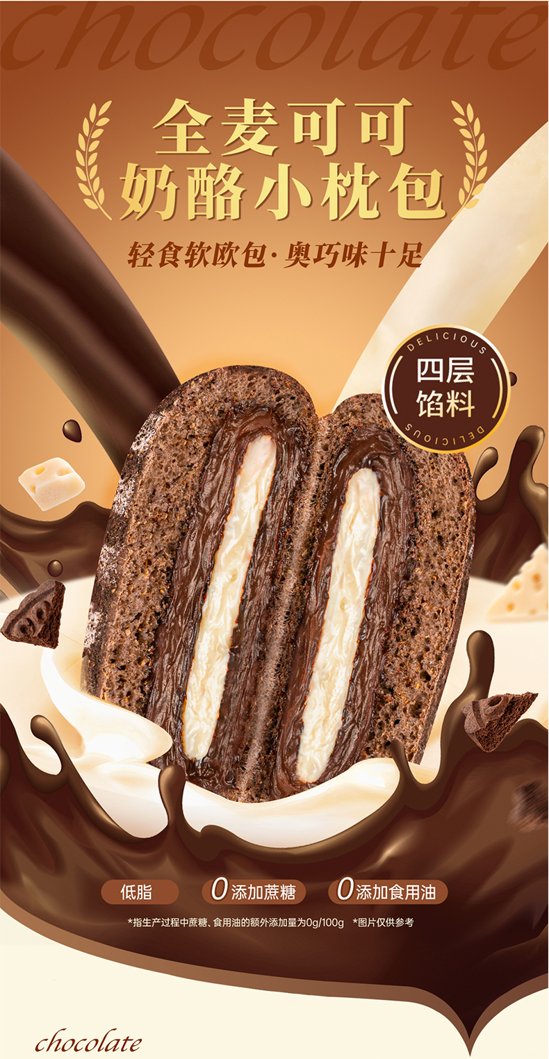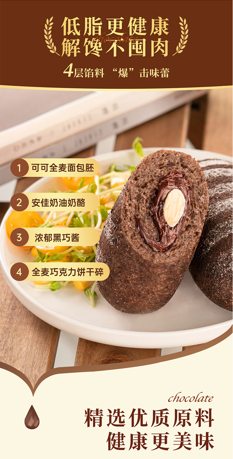 七年五季安佳淡奶油全麦低脂巧克力奶酪欧包小枕包早餐饱腹零食品