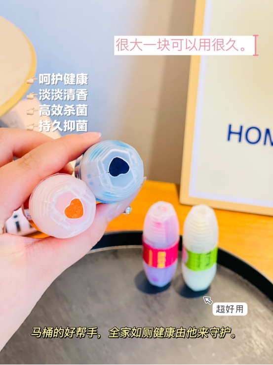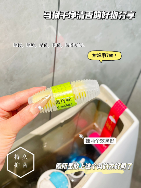 儿的我是很喜欢。 把它挂在马桶边上整个厕所都变得很芳香 而且马桶也变得很清香