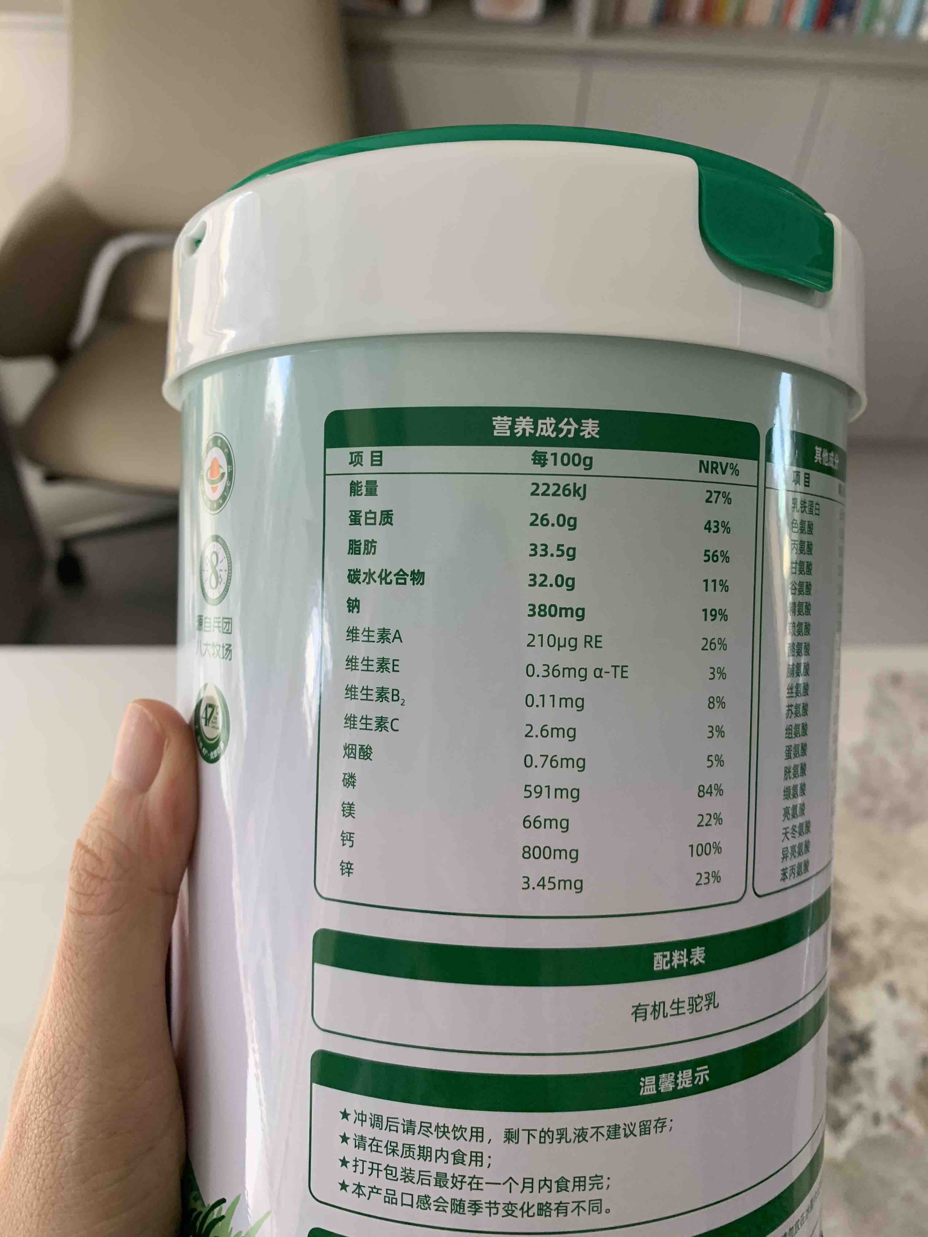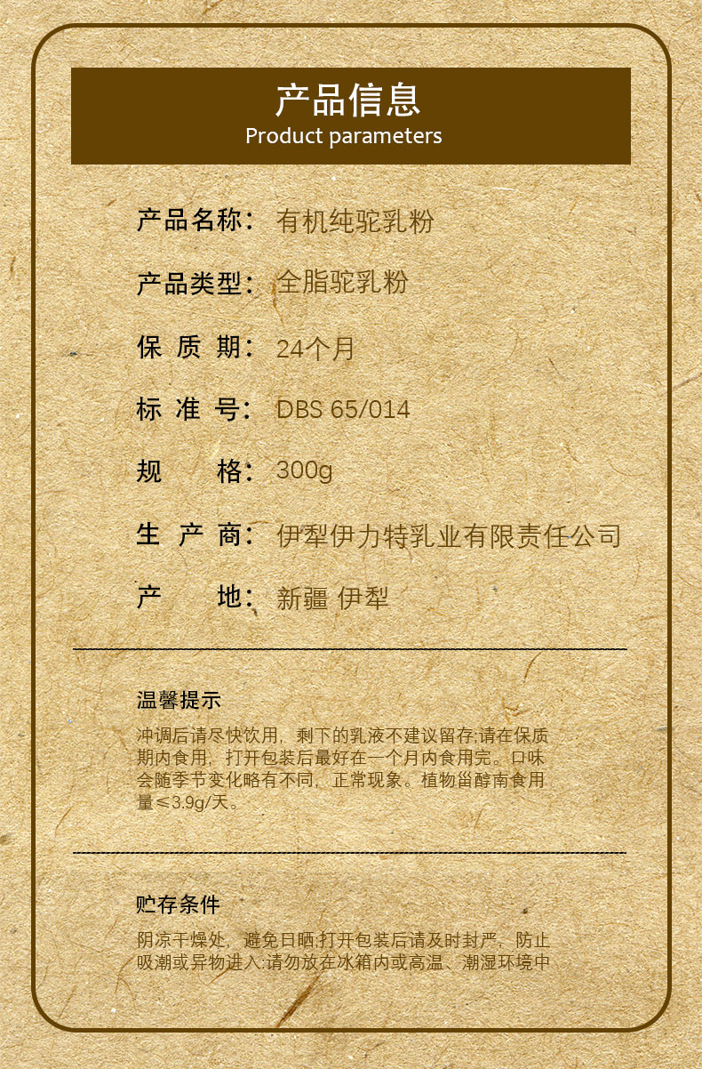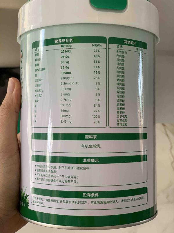 【品名】有机纯驼乳粉